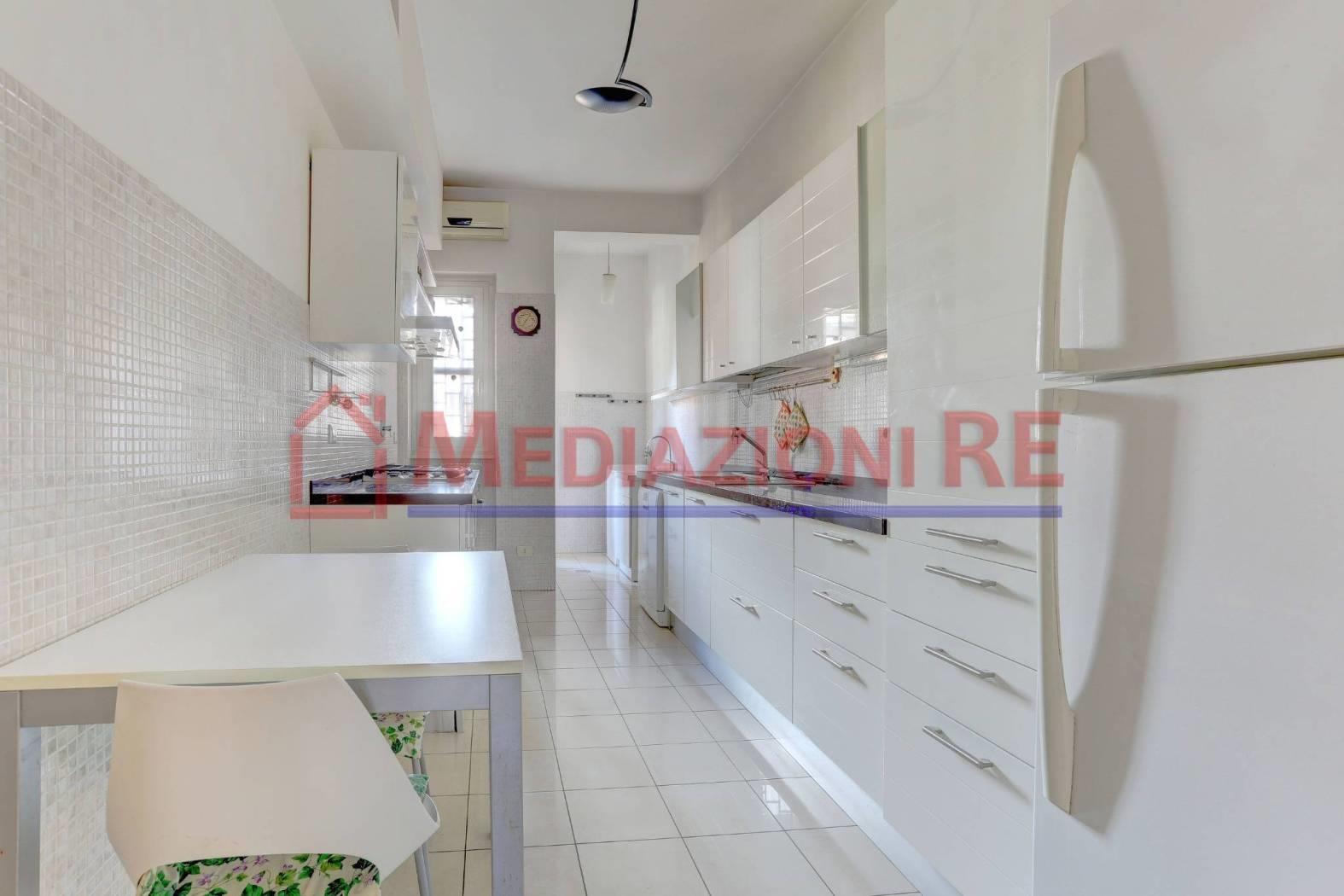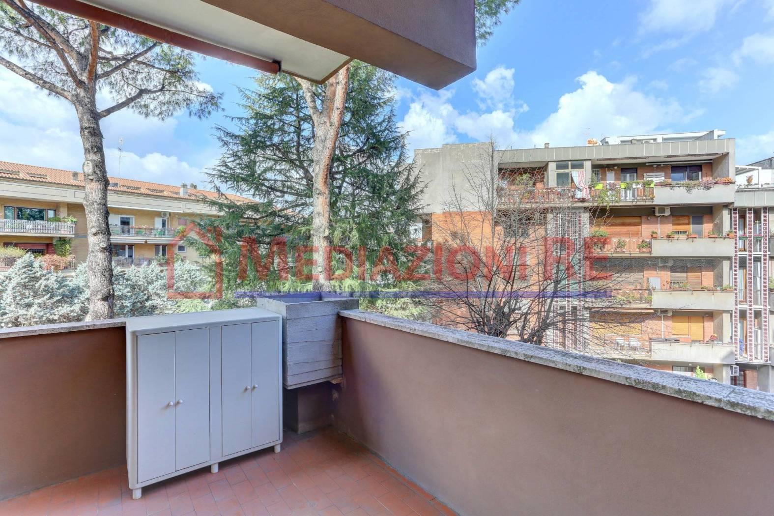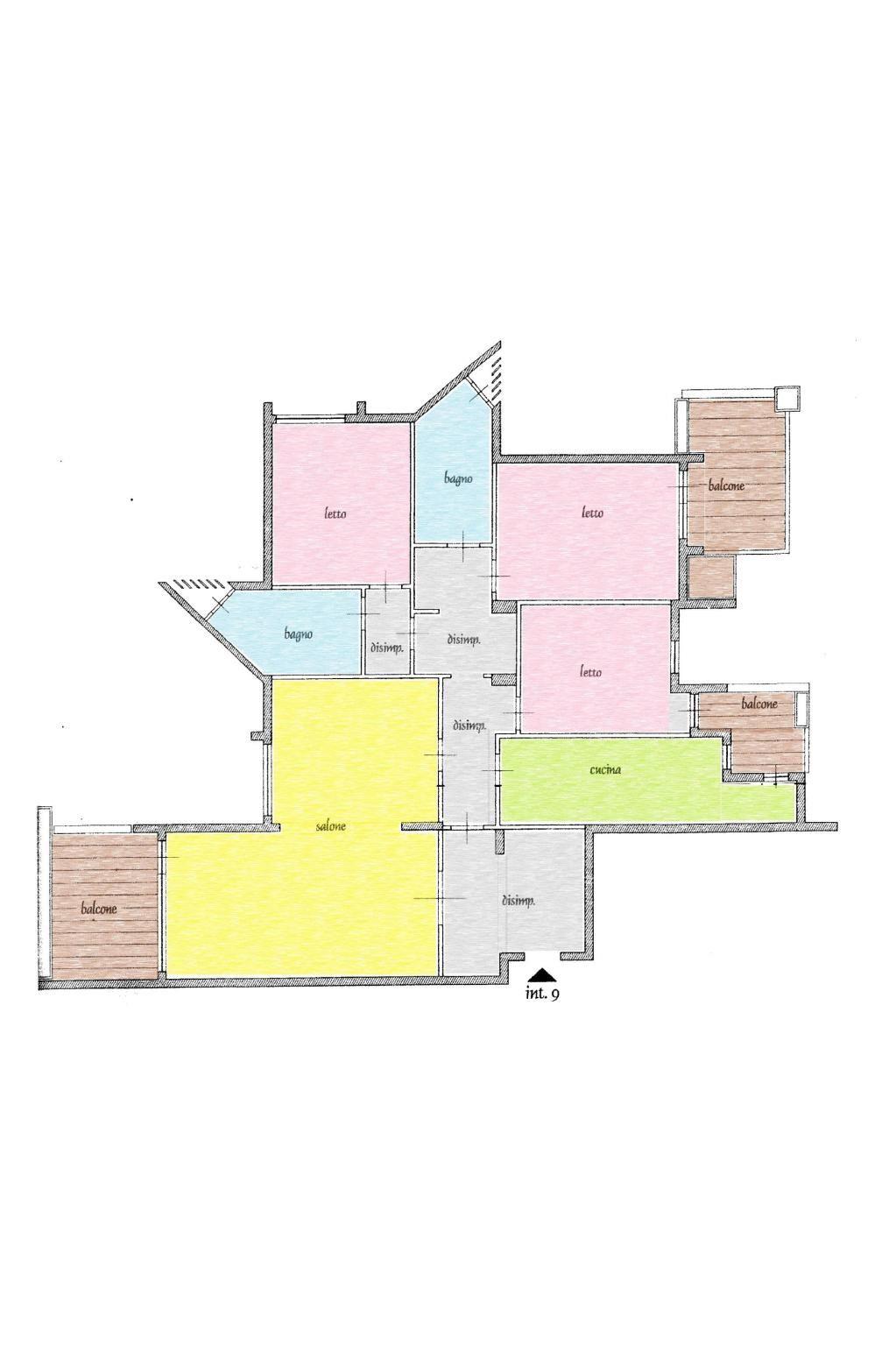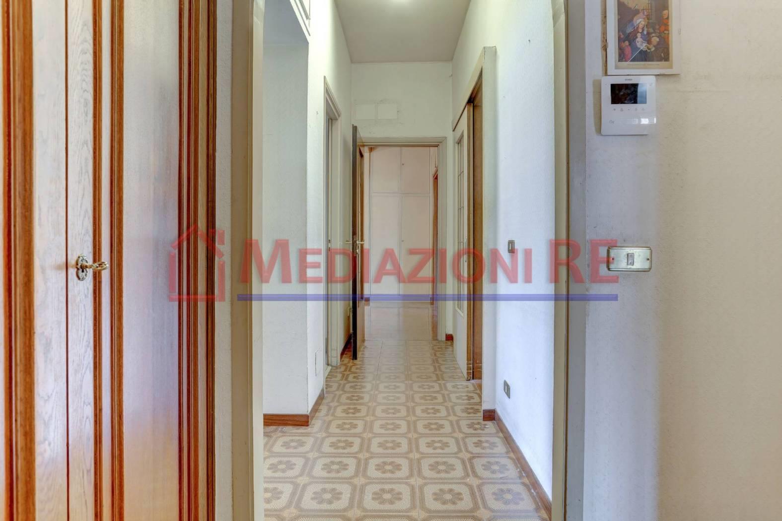 Il grande ingresso accogliente è arredato con un mobile libreria in legno, realizzato su misura e un armadio a muro a due ante, da una porta a doppia anta si accede al meraviglioso salone doppio, che gode di una particolare luminosità dovuta all'ottima esposizione, che presenta una porta/finestra scorrevole per uscire sul primo terrazzo, una seconda finestra a due ante ed un’altra porta scorrevole comunicante con il primo disimpegno, dove troviamo, di fronte, la cucina abitabile, dotata di finestra e porta finestra che affacciano entrambe sul balcone di servizio, mentre sulla sinistra abbiamo la zona notte, con ulteriori disimpegni e altri tre armadi a muro a tre ante, tre camere da letto (da una si accede al balcone della cucina, mentre un’altra è dotata di balcone vivibile), due ampi bagni finestrati.