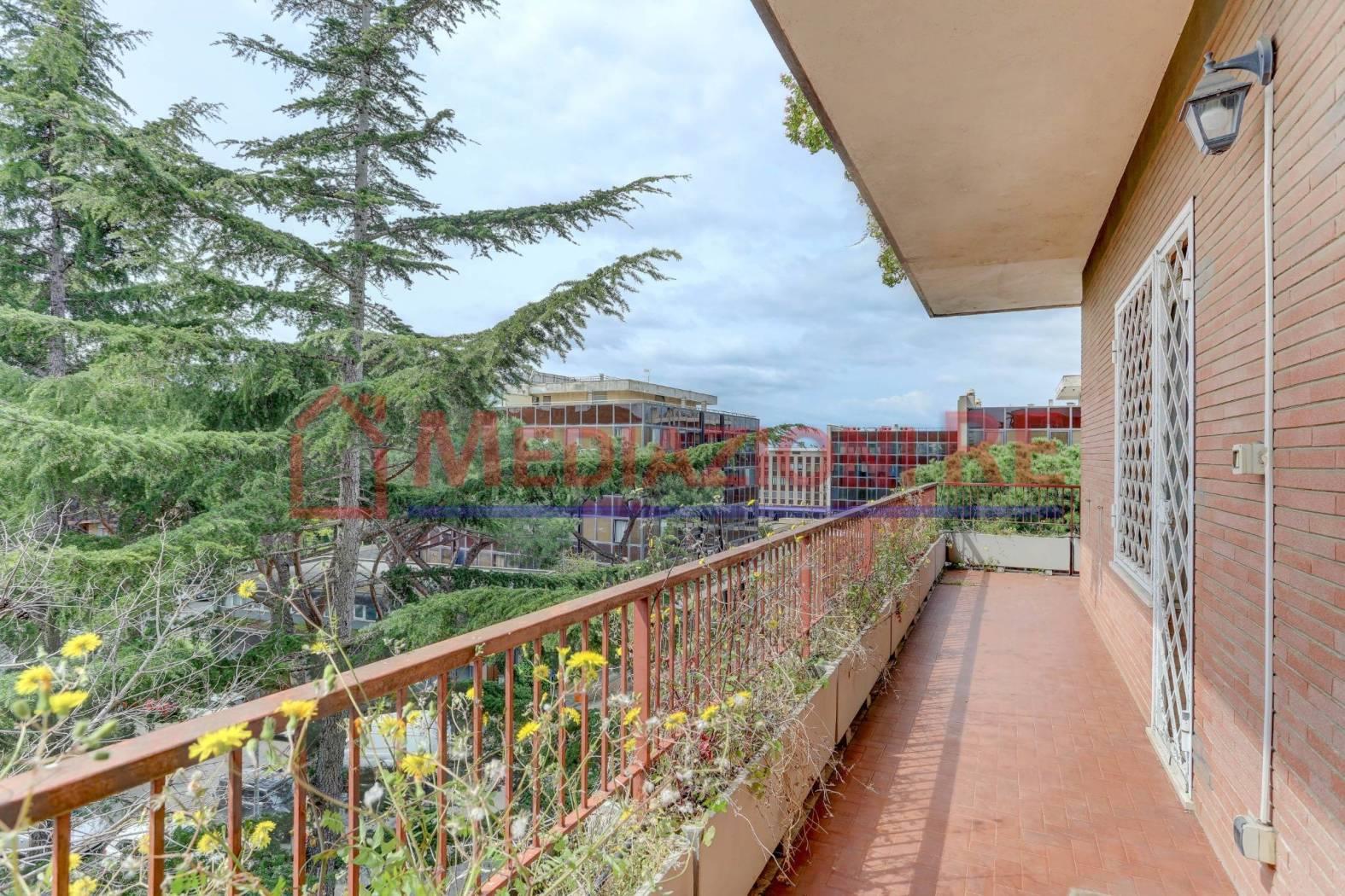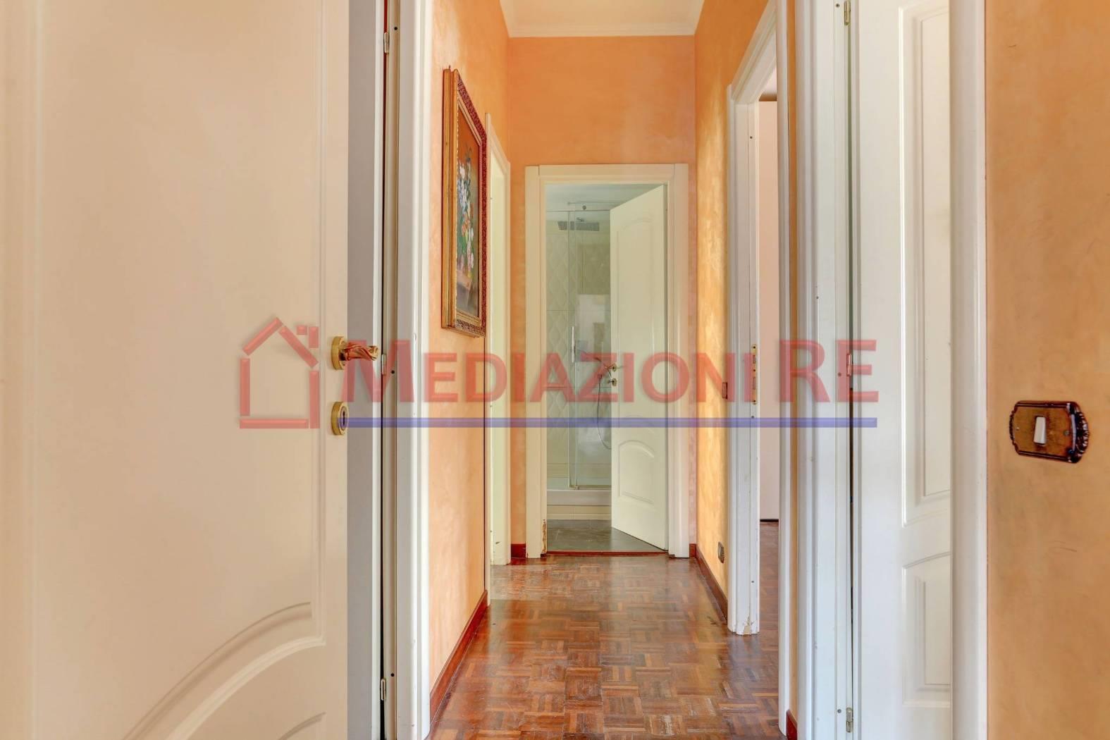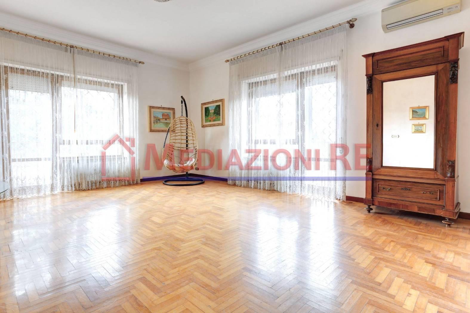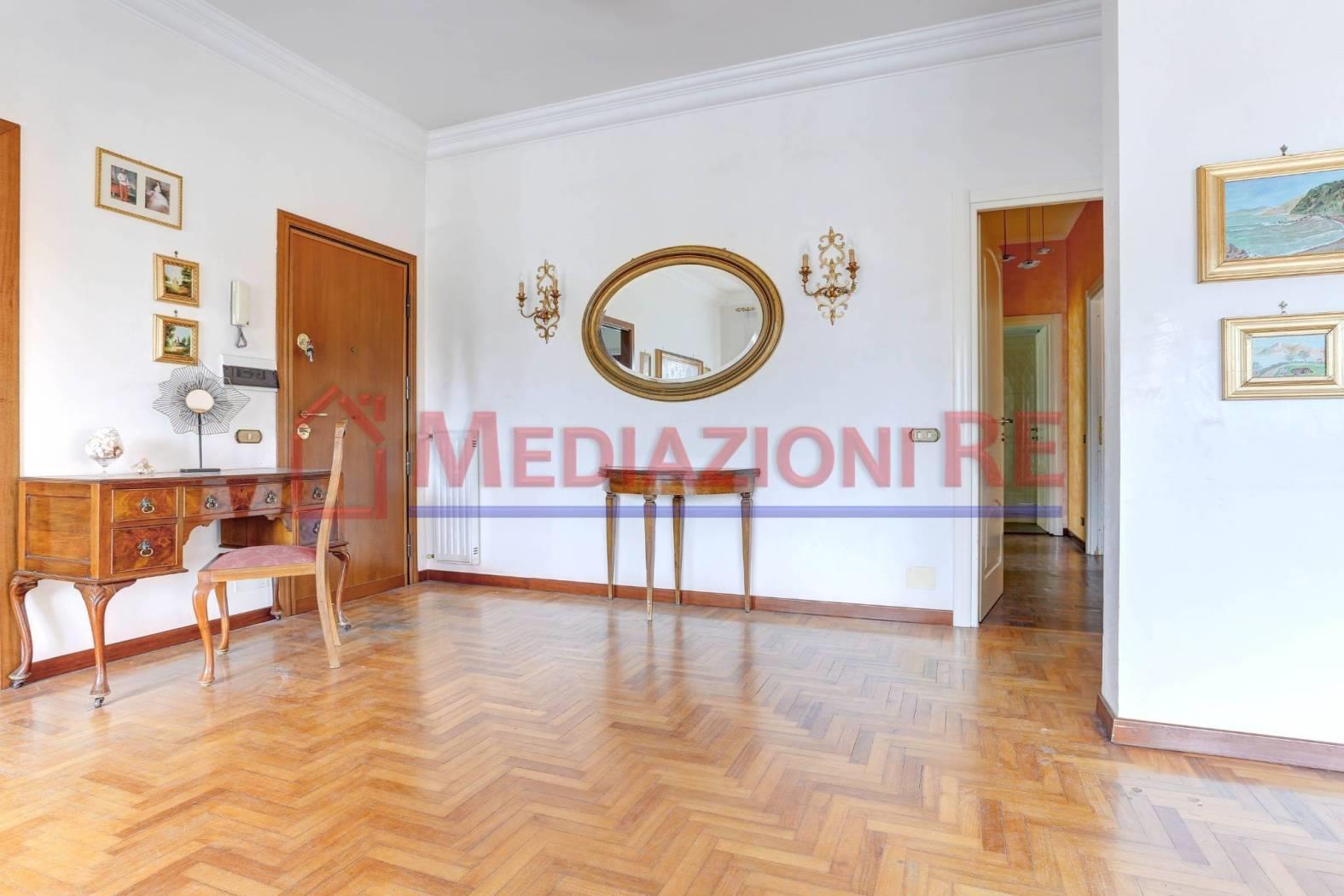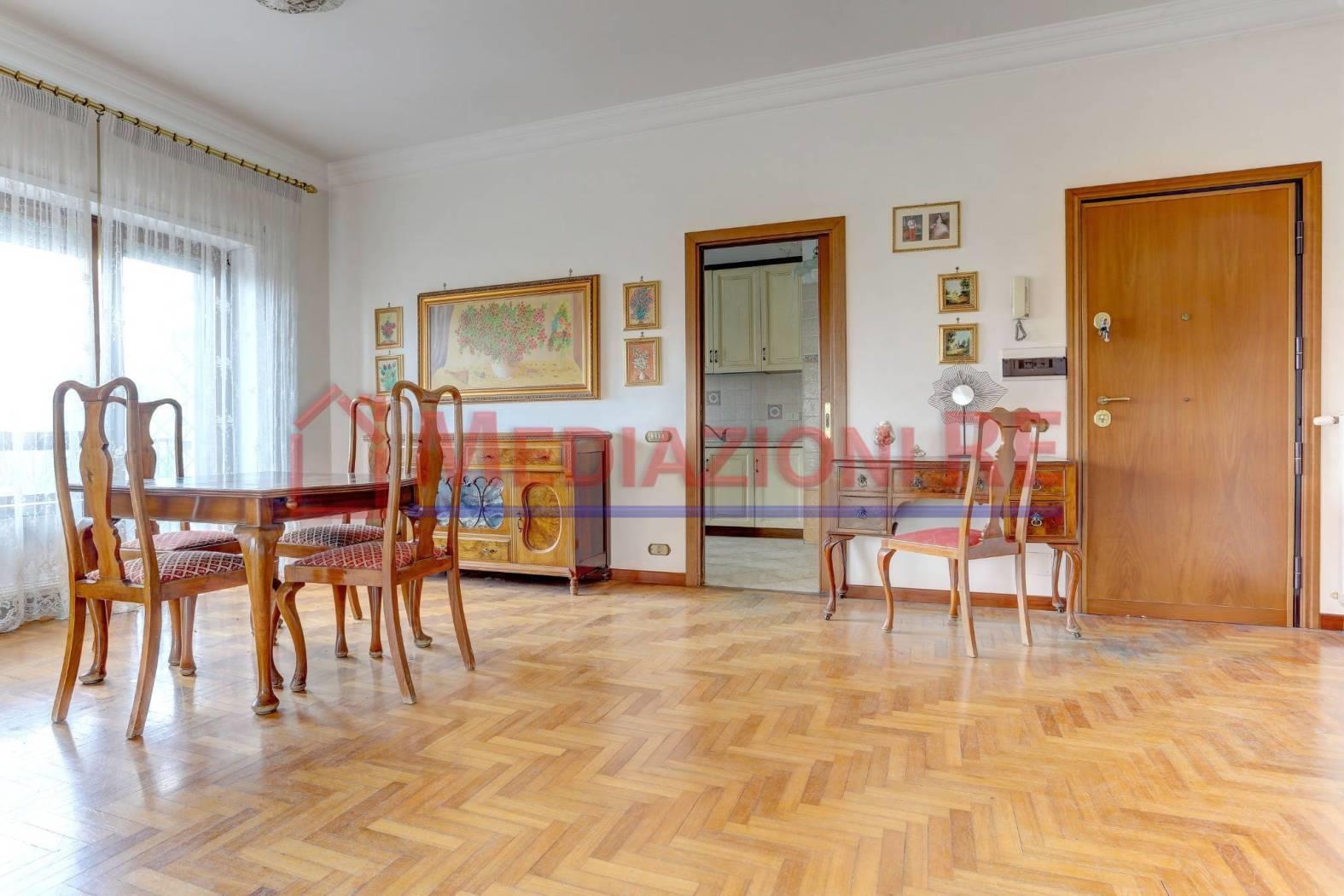 L'appartamento è in buone condizioni, con pavimentazione in parquet in tutti gli ambienti, eccetto cucina e bagni. L'impianto di riscaldamento centralizzato e i climatizzatori garantiscono un ambiente confortevole in ogni stagione.