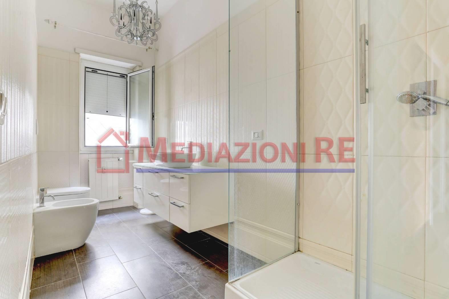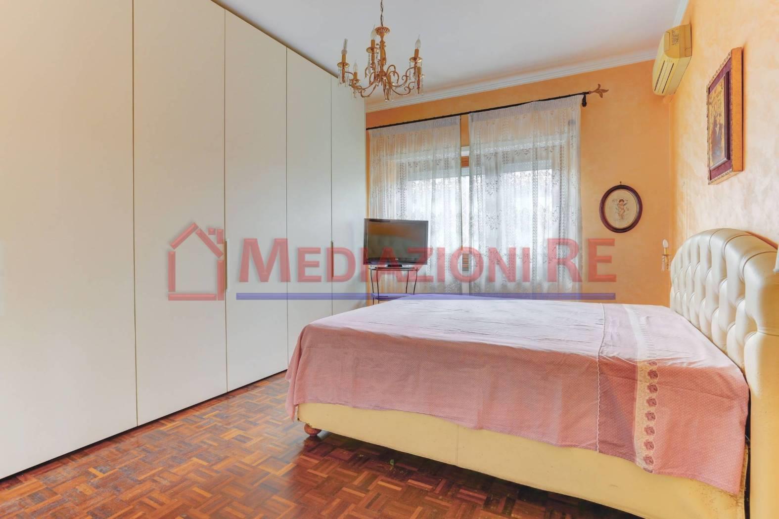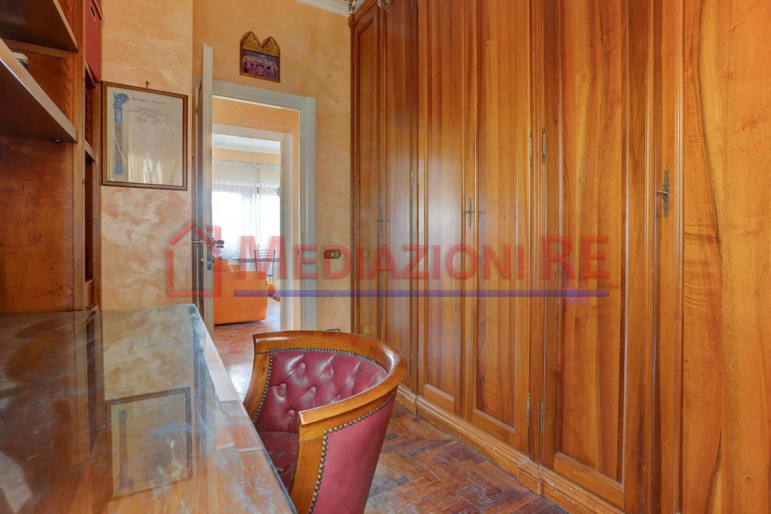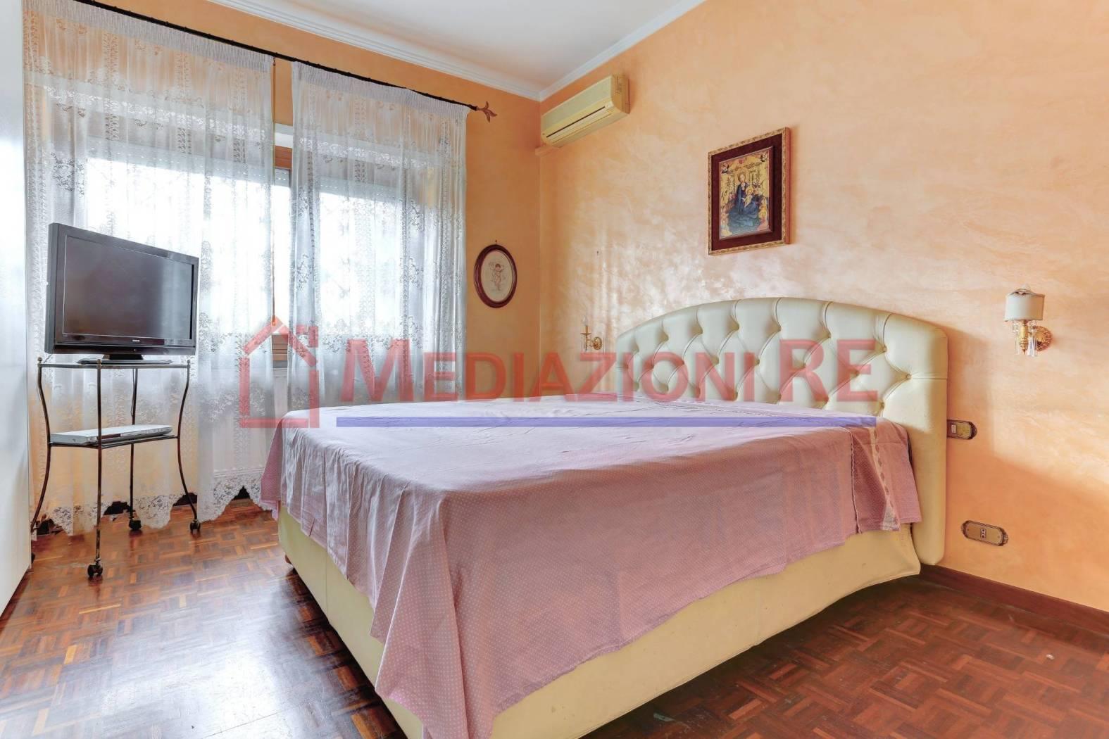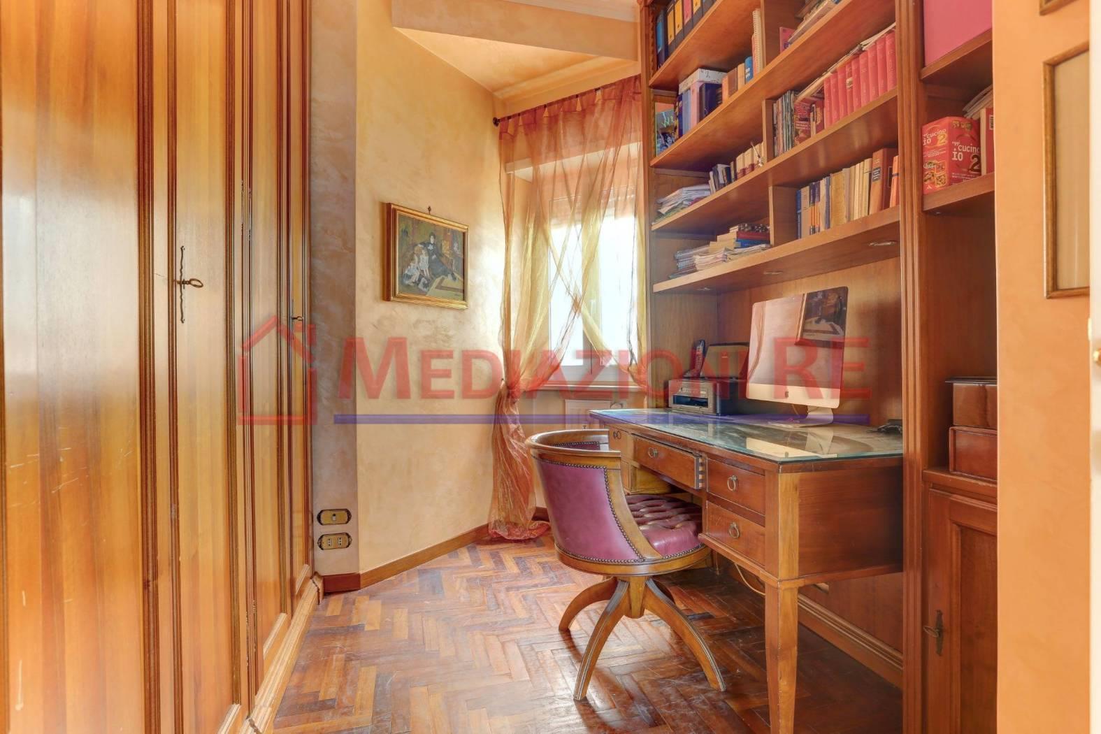 L'appartamento è in buone condizioni, con pavimentazione in parquet in tutti gli ambienti, eccetto cucina e bagni. L'impianto di riscaldamento centralizzato e i climatizzatori garantiscono un ambiente confortevole in ogni stagione.