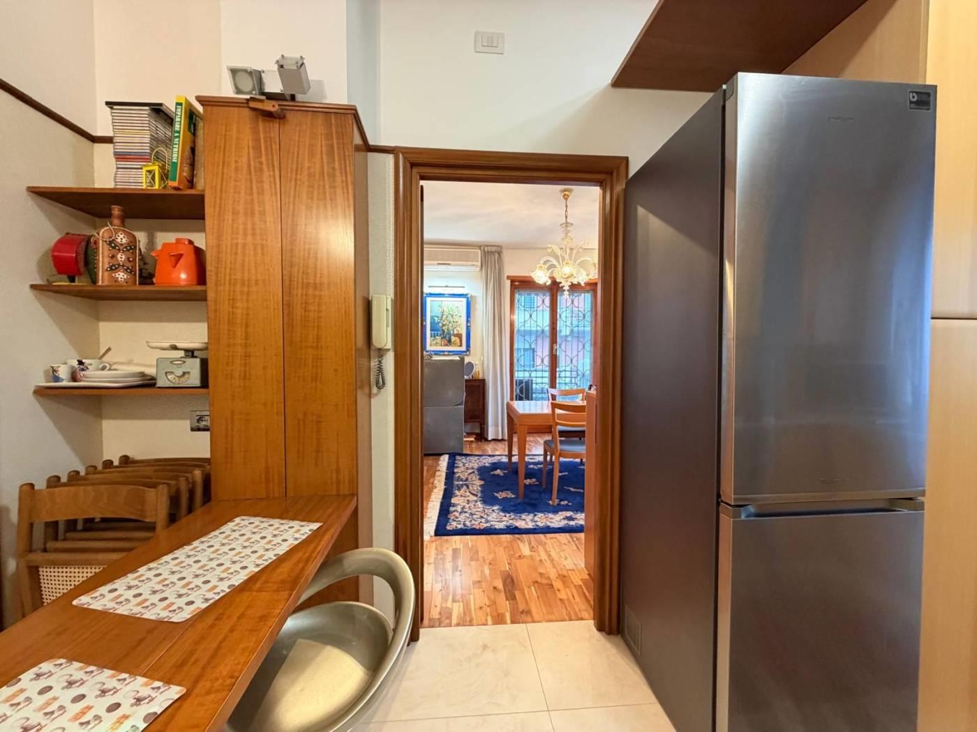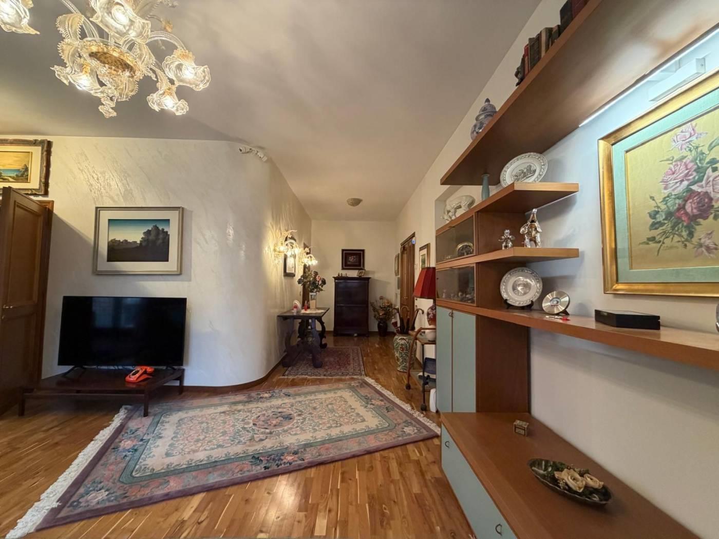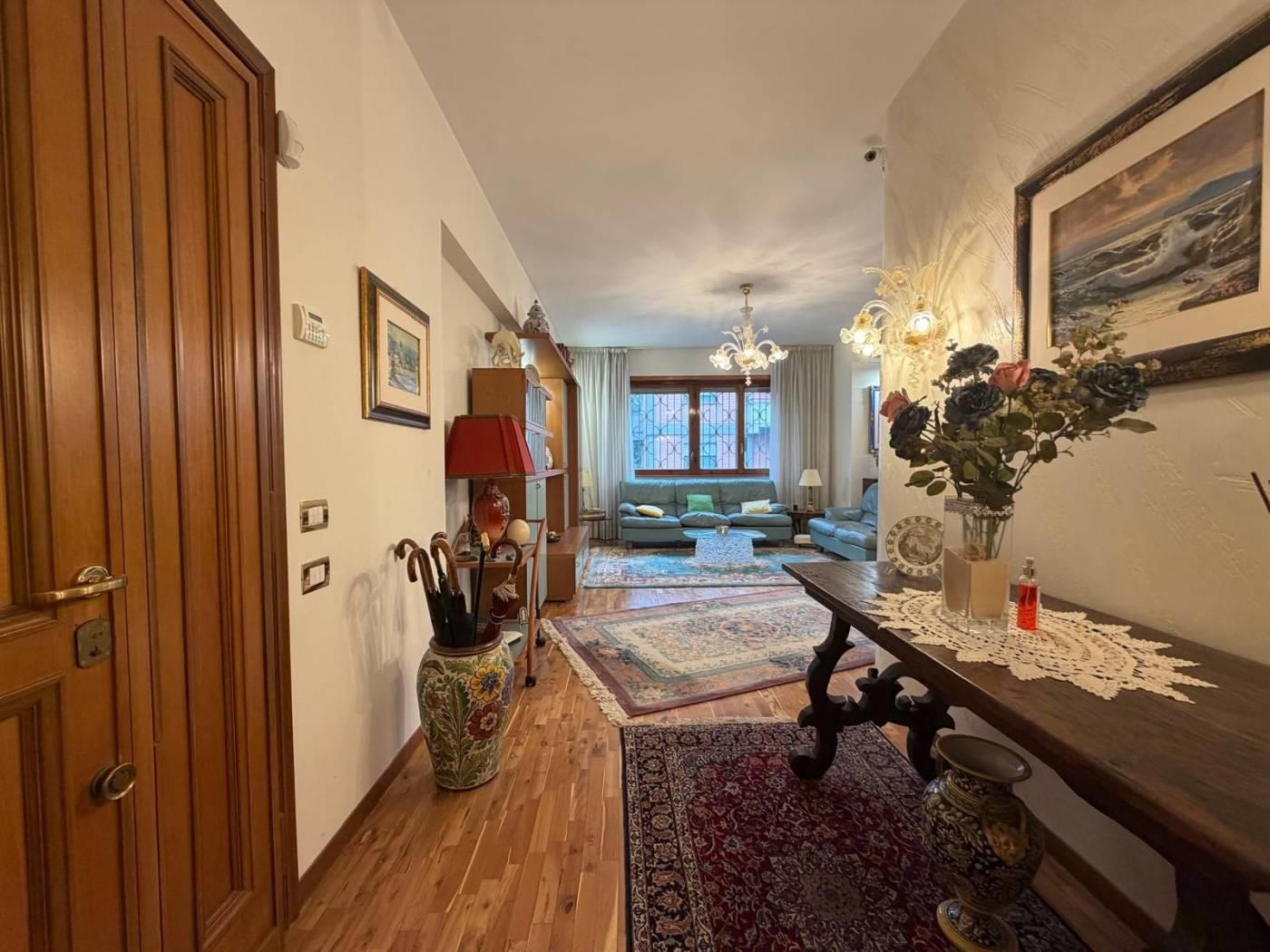 L’ingresso introduce ad un ampio e rappresentativo salone doppio, impreziosito dall’accesso diretto ad una piacevole terrazza vivibile, ideale per momenti di relax o convivialità.