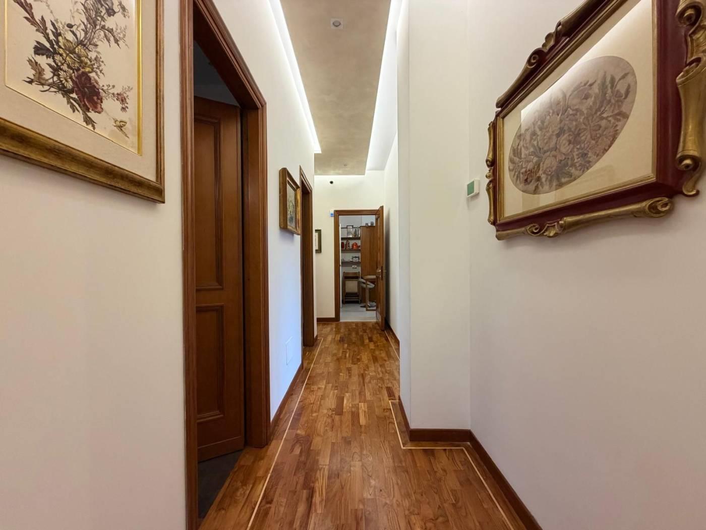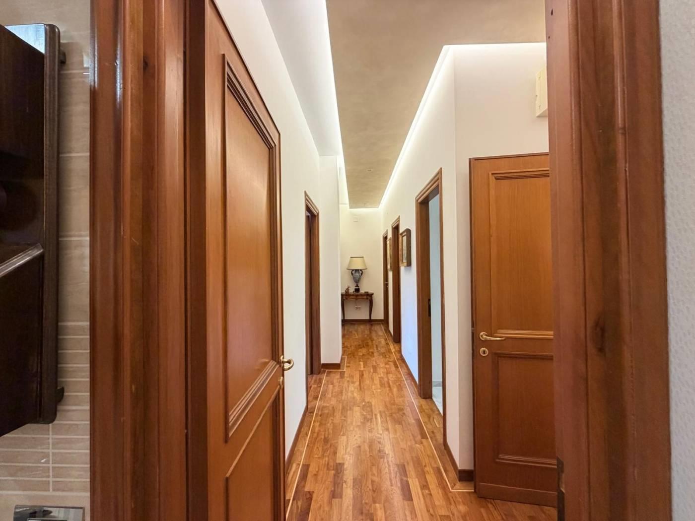 L’appartamento è valorizzato da pavimenti in pregiato parquet di ulivo in tutta la casa, infissi in legno Douglas, aria condizionata, impianto di allarme ed inferriate, elementi che garantiscono comfort, sicurezza ed eleganza.