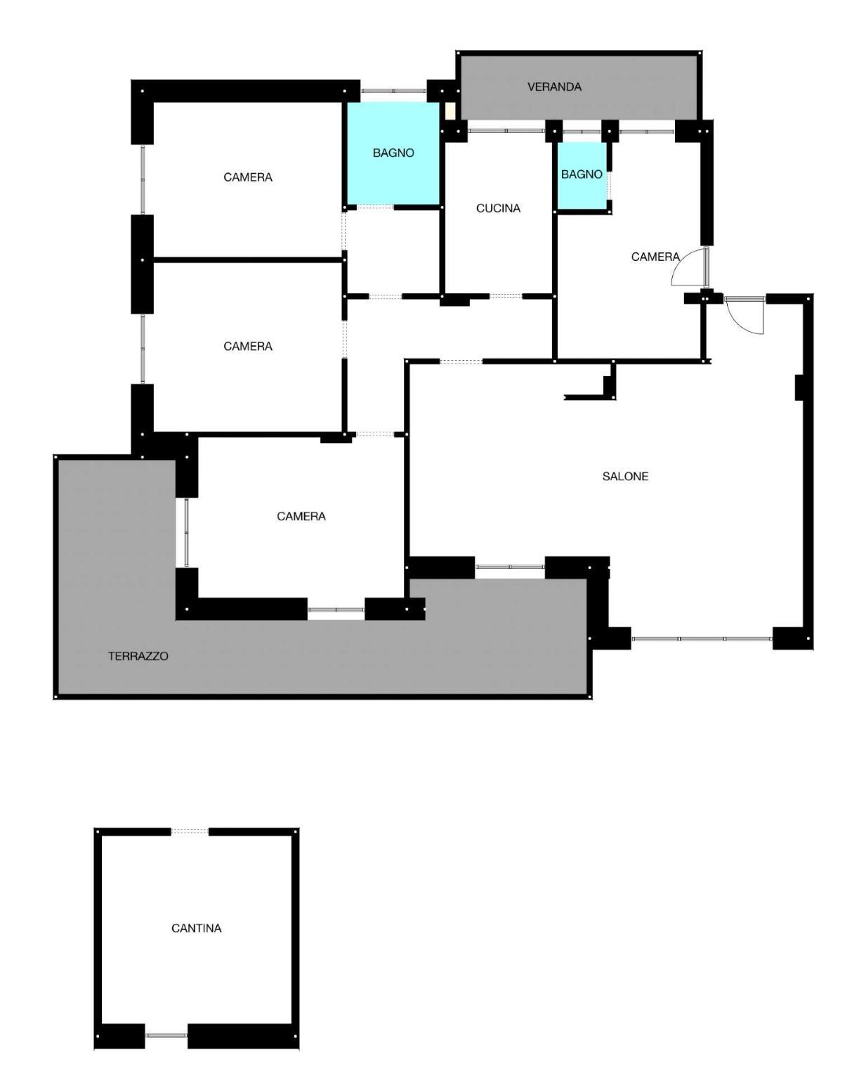 L’appartamento è dotato di doppio ingresso e si presta ad essere diviso in 2 unità immobiliari distinte.