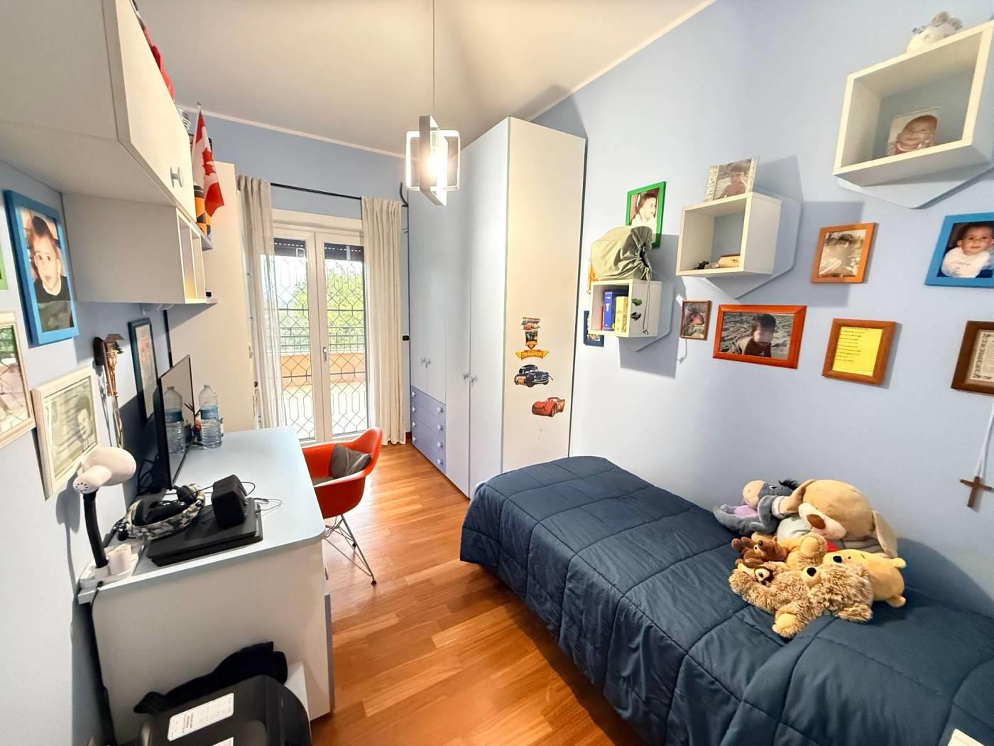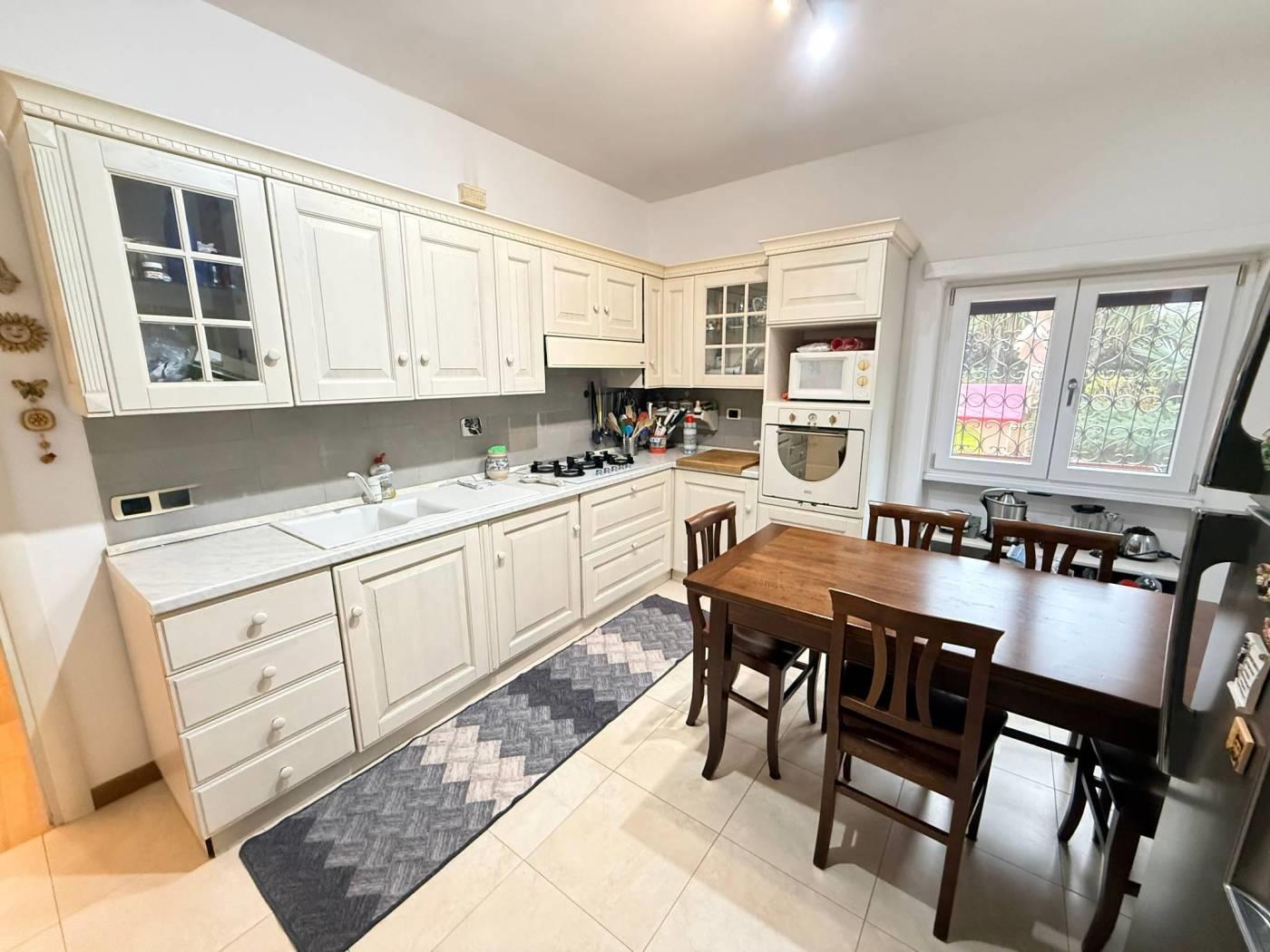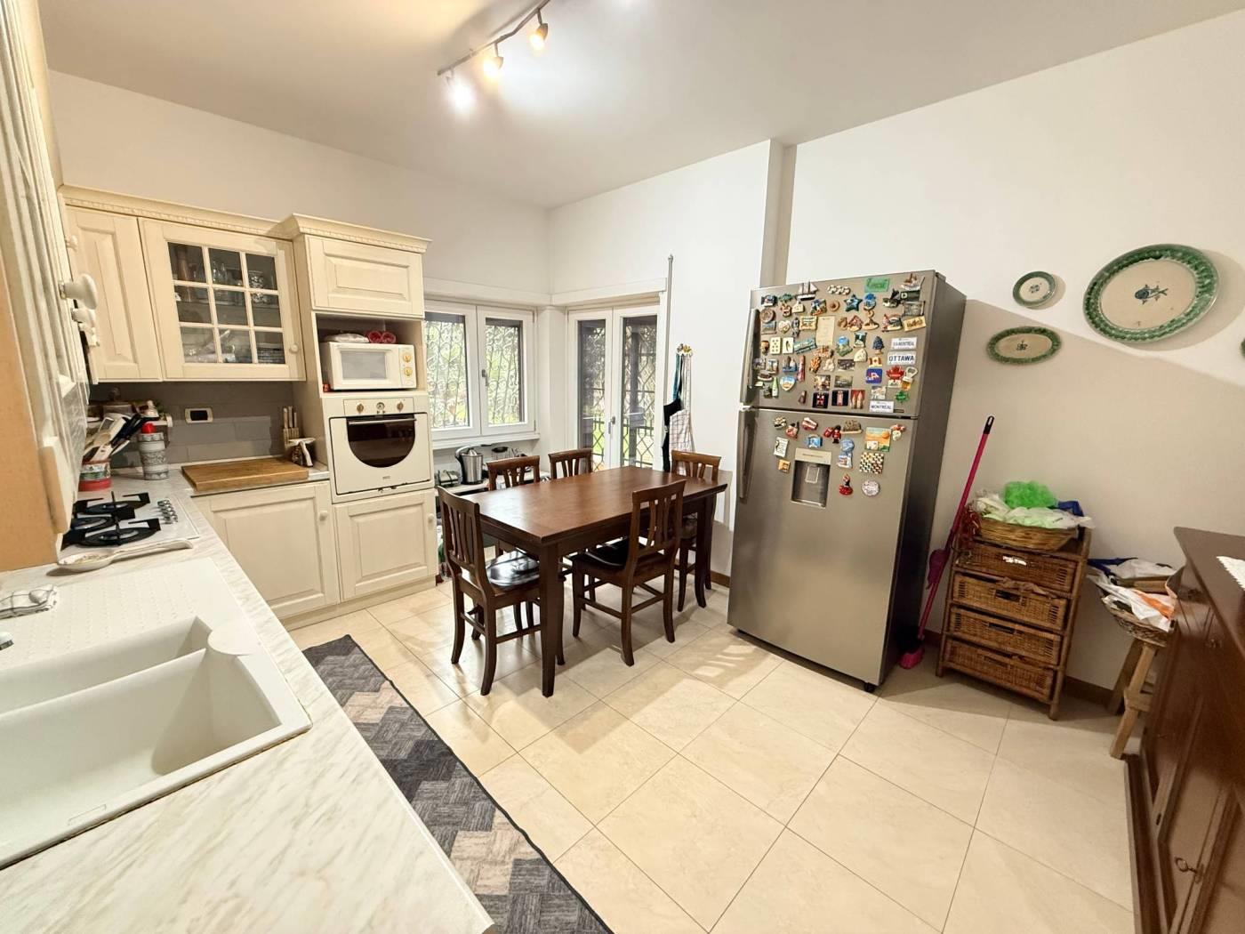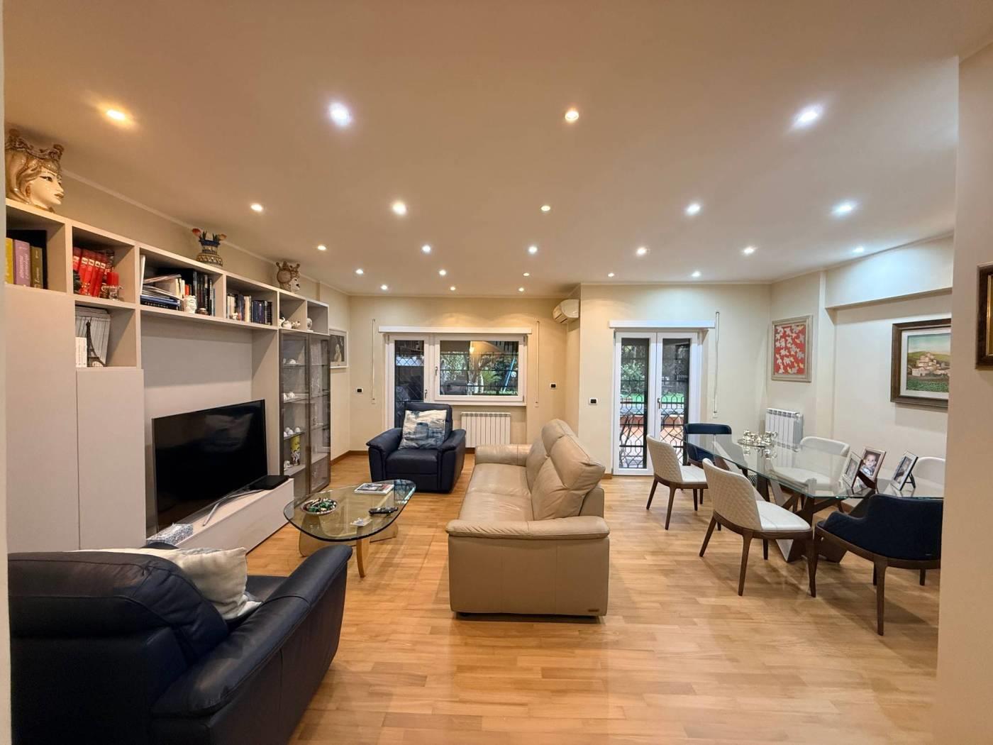 Scopri questo splendido appartamento situato in una palazzina completamente ristrutturata nel cuore di Mostacciano. Con una superficie commerciale di 180 m², l'immobile offre si sviluppa su 3 livelli. Al piano dell'ingresso troviamo un'ampia e luminosa zona giorno grazie alla sua tripla esposizione composta da un ampio salone, un servizio ed una cucina abitabile con accesso diretto al giardino. Gli spazi interni sono rifiniti con pavimentazione in parquet di alta qualità e infissi di marca Schuco, garantendo un'ottima isolamento termico e acustico.