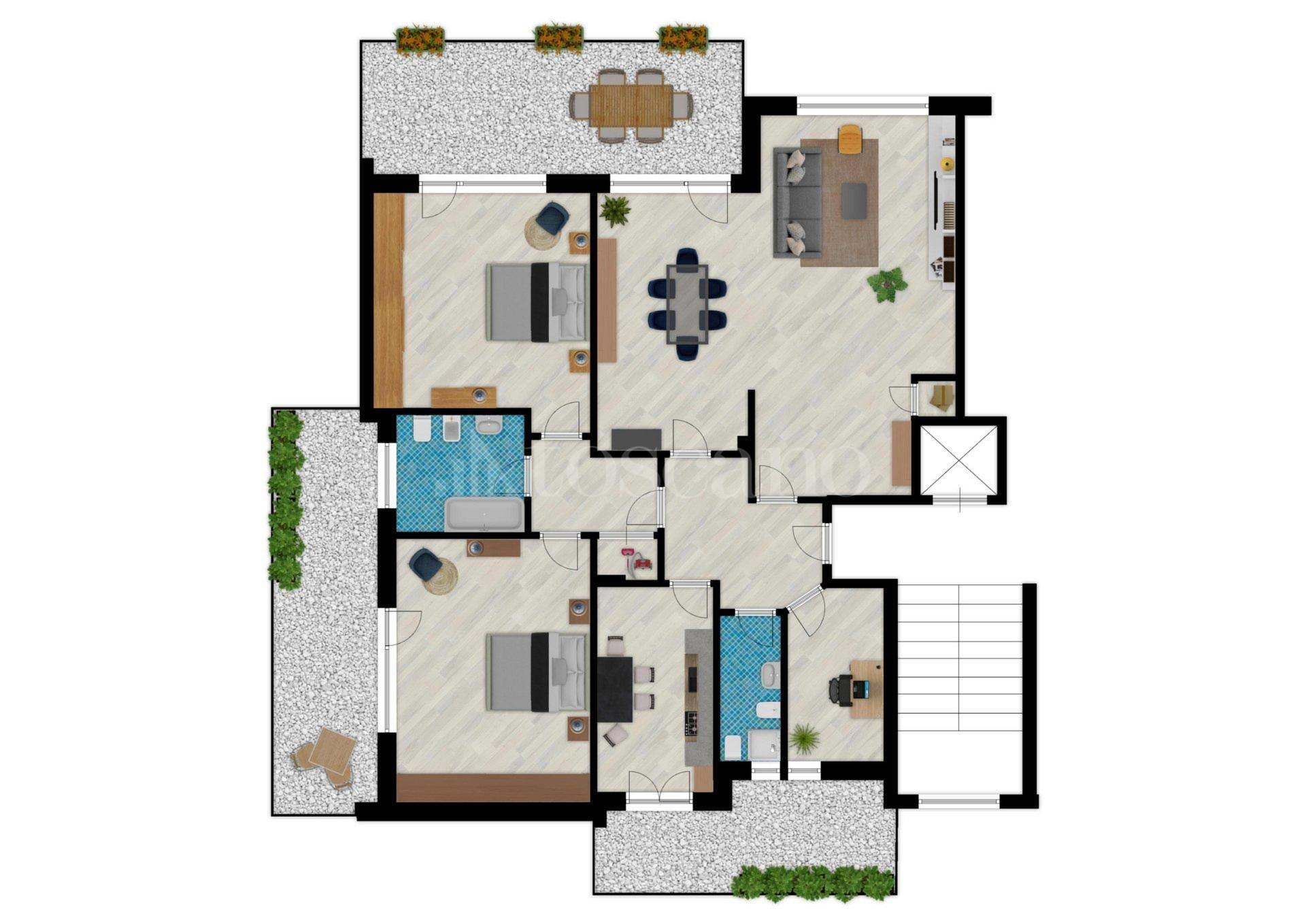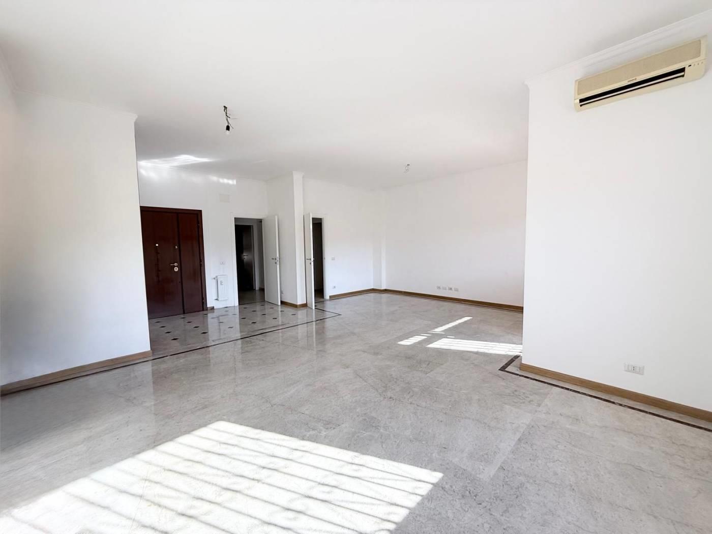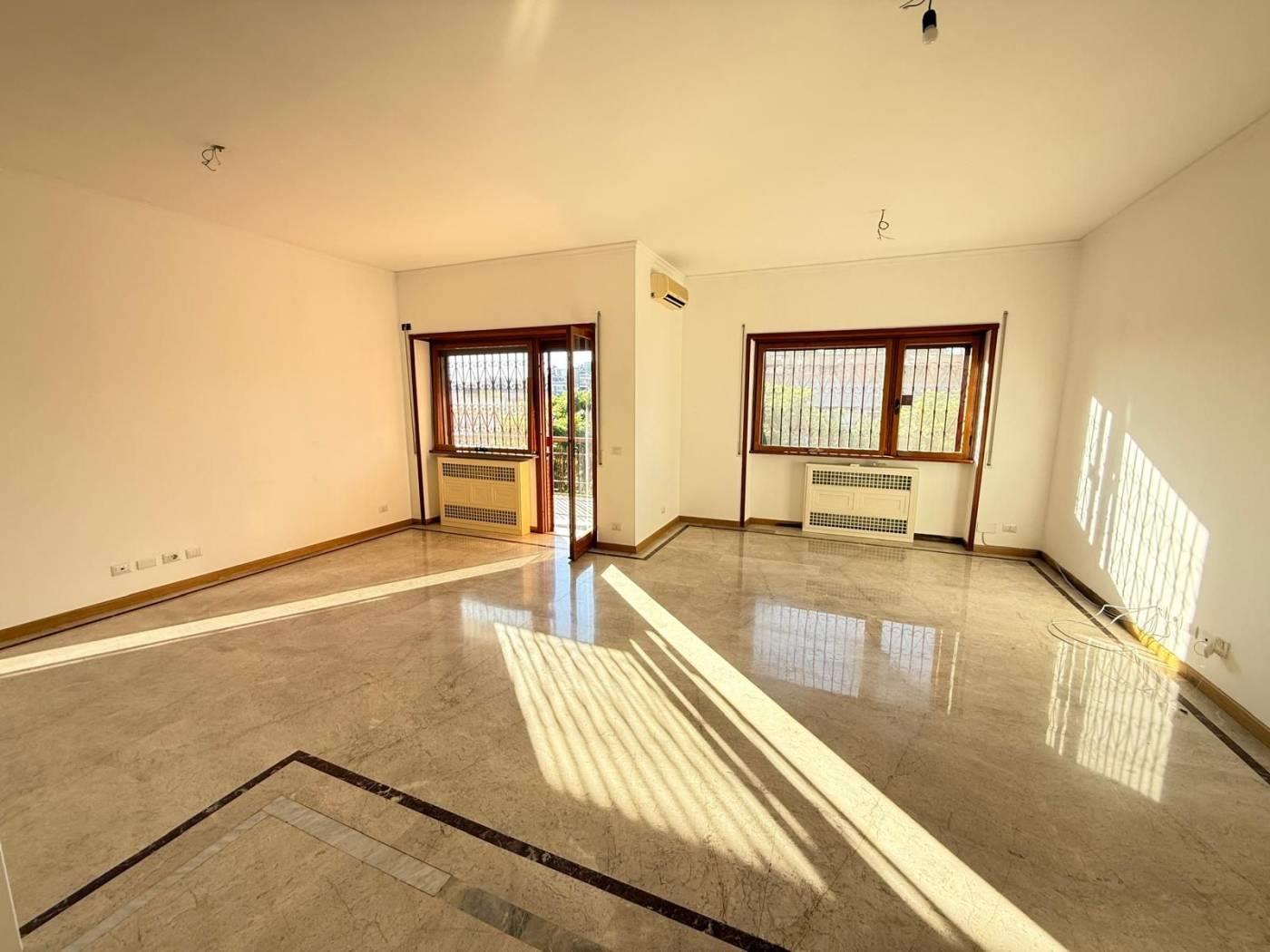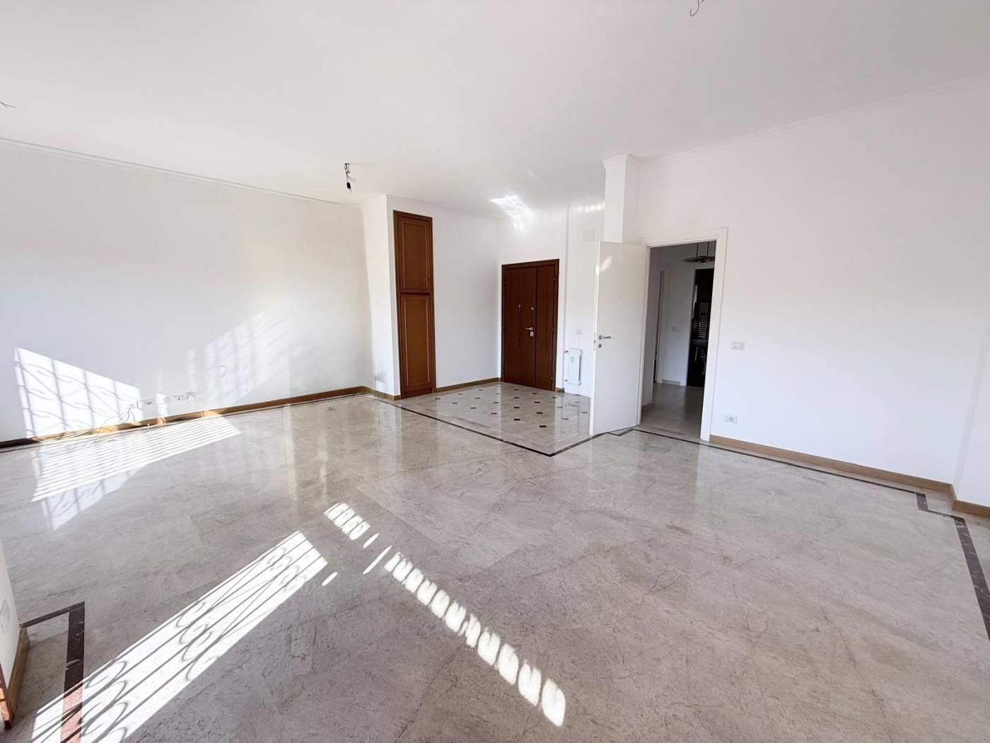 Con una superficie di 150 m², l'immobile offre un doppio ngresso, un ampio salone doppio con pavimenti in marmo, perfetto per accogliere amici e familiari e dal quale si accede ad un terrazzo con vista panoramica sulla città. La cucina abitabile si apre su un secondo terrazzo, ideale per godere di pranzi all'aperto.