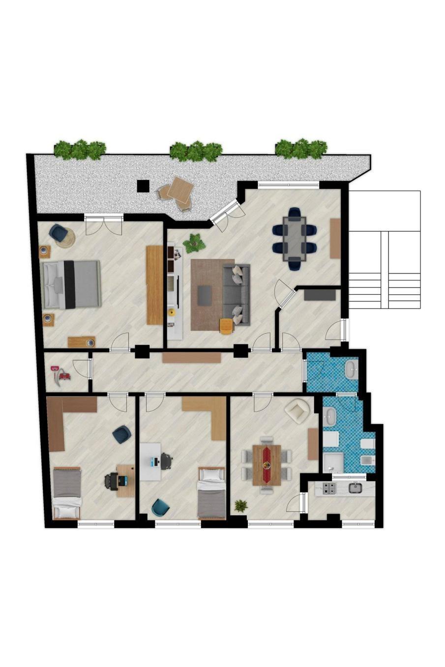 La cucina abitabile, completa di tinello e lavanderia separata, è ideale per chi ama cucinare e intrattenere. La zona notte è composta da tre spaziose camere da letto matrimoniali, perfette per garantire il massimo del comfort. Inoltre, c'è un ampio servizio finestrato con antibagno e la possibilità di creare un secondo servizio o una quarta camera da letto, offrendo così flessibilità per le tue esigenze.
