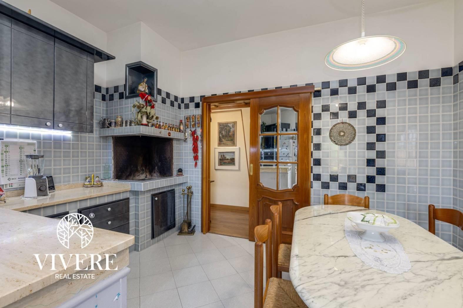 Cucina abitabile con camino
