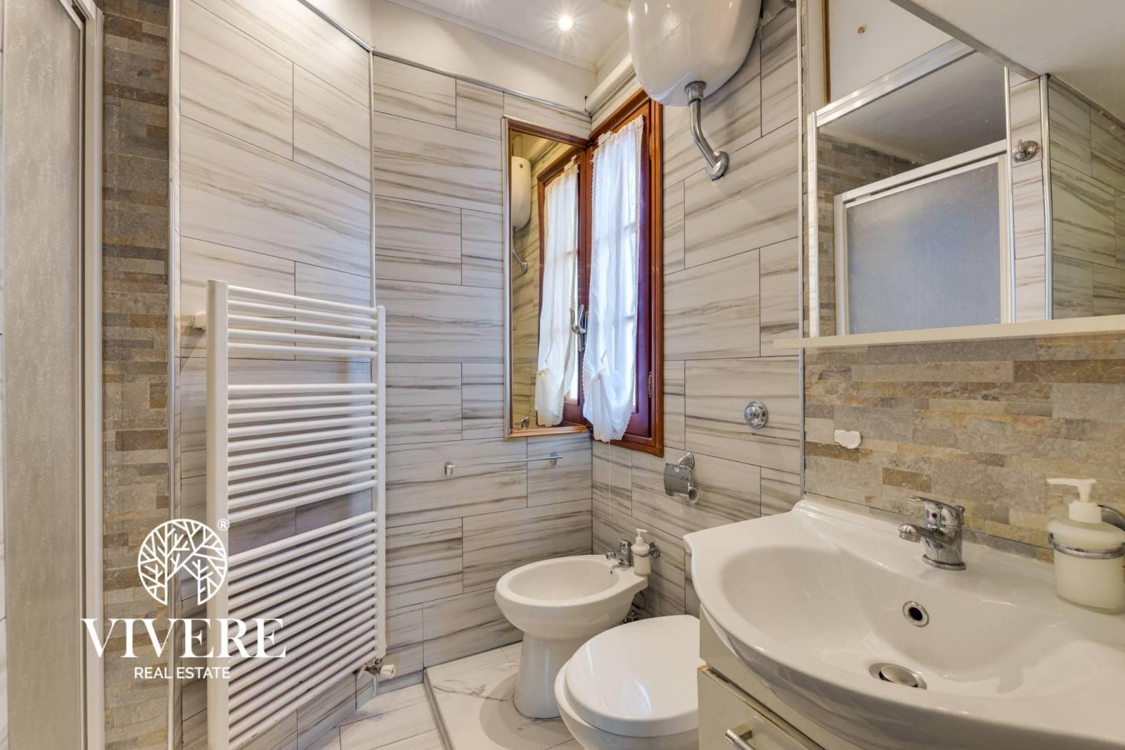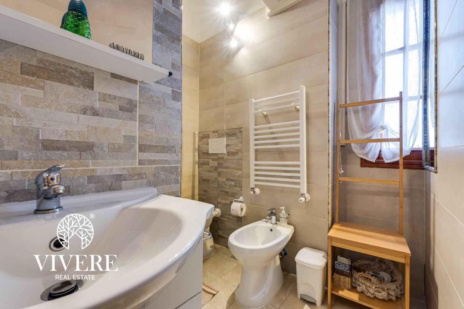 L'appartamento è in buone condizioni interne, dotato di infissi in legno douglas, riscaldamento autonomo e aria condizionata nella maggior parte degli ambienti.