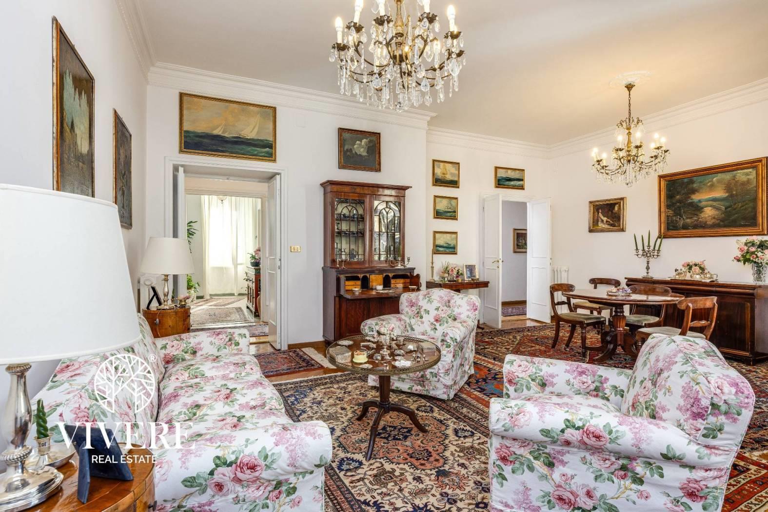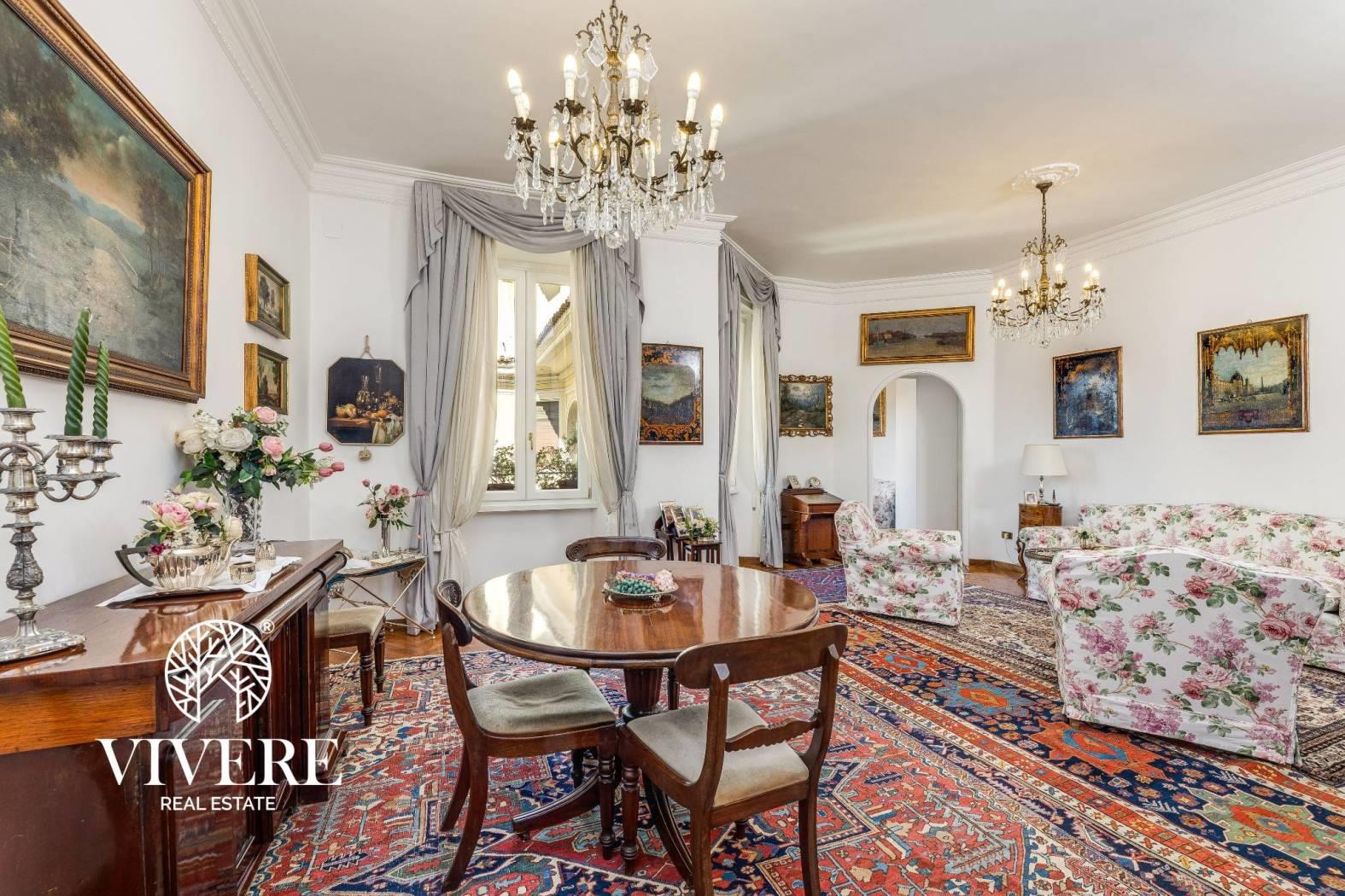 Nel cuore di uno dei quartieri più eleganti e ricercati di Roma, il Quartiere Salario, più precisamente in Via Savoia, Vivere Real Estate propone in esclusiva la vendita di un ampio e luminoso appartamento situato al 5° piano di un palazzo storico degli anni ’30 con servizio di portineria.L’edificio, di soli sei piani, è caratterizzato da un’eleganza d’altri tempi e da un contesto residenziale riservato e tranquillo. L’immobile gode di una tripla esposizione che garantisce ottima luminosità e suggestivi affacci sulla via, sui raffinati villini circostanti e con scorci panoramici sul parco.L’appartamento, di ampia metratura, si compone di:
