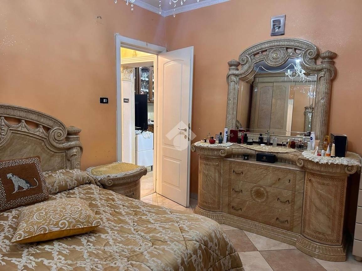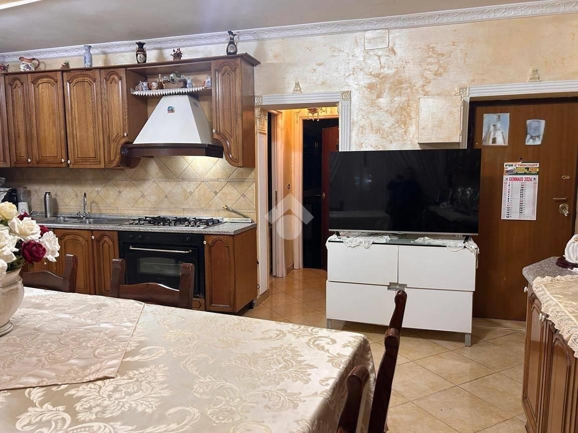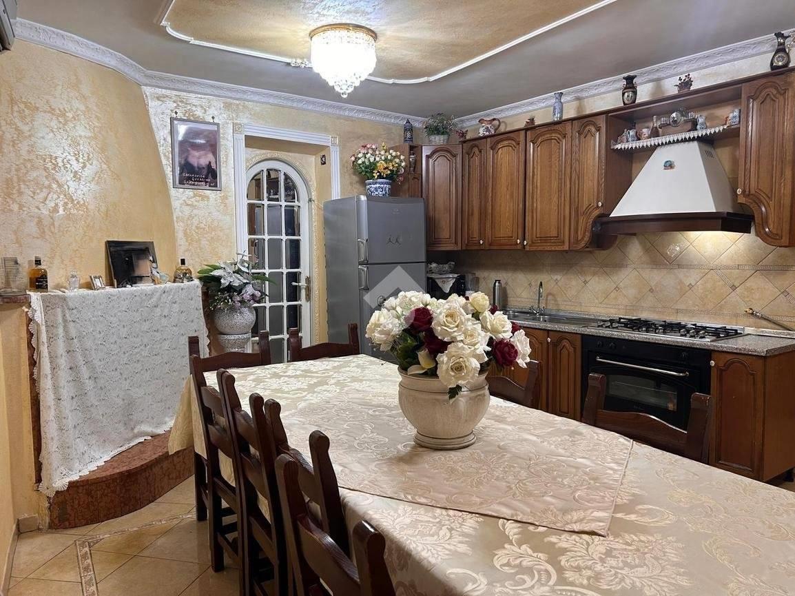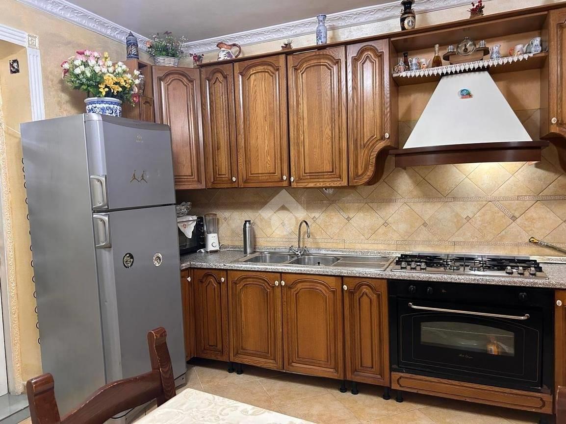 Internamente è così composto: doppio ingresso, salone, cucina a vista con camino, quattro camera da letto matrimoniali, doppio servizio (il primo finestrato con box doccia e il secondo cieco) veranda e balcone. L'mpia metratura di 120 mq ca ed il doppio ingresso permettono di realizzare due unità immobiliari distinte e separate.