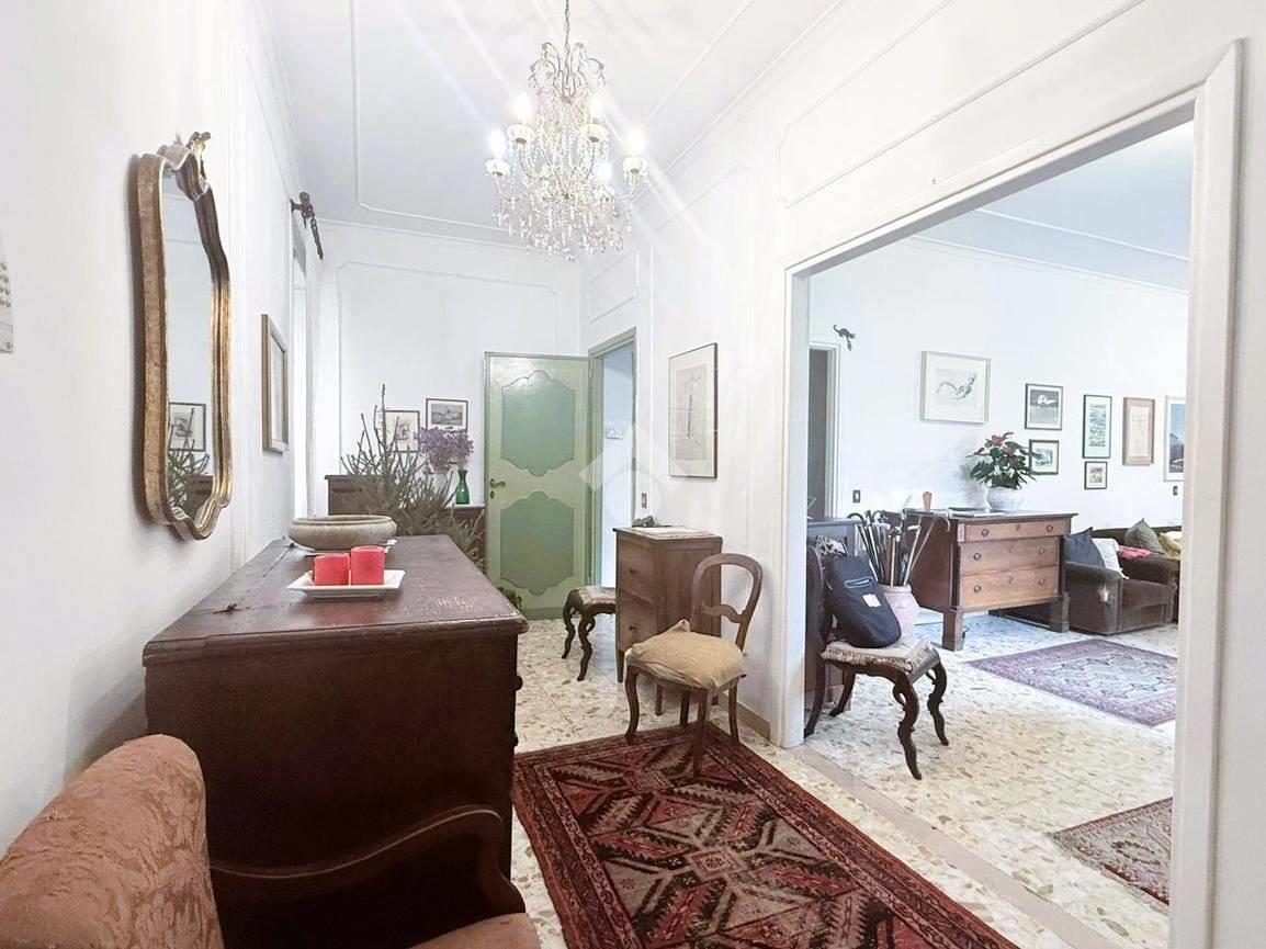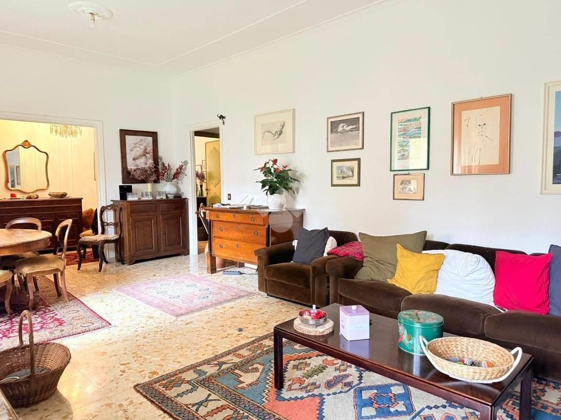 Gli spazi interni sono generosi e ben distribuiti. L’ingresso introduce a una zona giorno ampia e luminosa, con soggiorno doppio che gode di un affaccio diretto sull’esterno. La cucina è abitabile e separata, mentre la zona notte è composta da tre camere matrimoniali, una camera di servizio e due bagni. La triplice esposizione, unita alla metratura importante, offre la possibilità di ottimizzare la distribuzione degli ambienti e valorizzare ulteriormente gli spazi, adattandoli alle esigenze di una famiglia moderna o a soluzioni abitative evolute.
