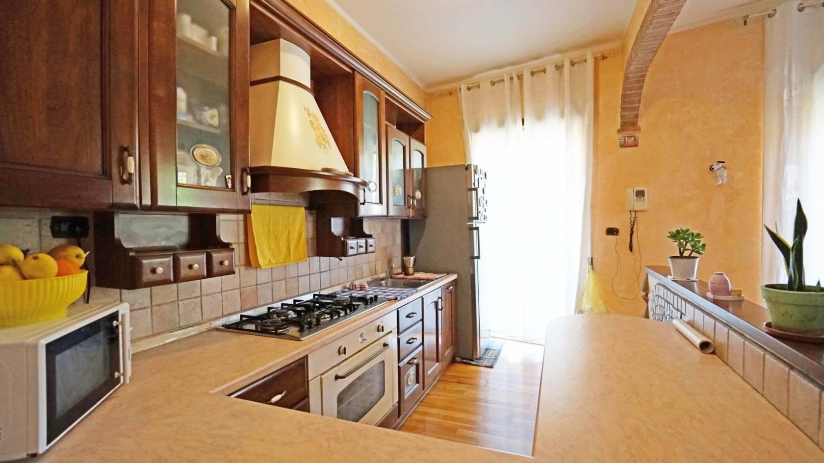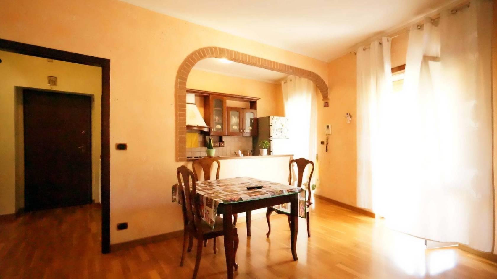 Proponiamo la vendita di questo appartamento posto al primo piano di una palazzina di sole sei unità abitative per un totale di circa 97 mq, perfetta per chi cerca spazio e comfort. Entrando troviamo un luminoso ingresso. La zona giorno è composta da un angolo cottura e un salone entrambi si affacciano sul balcone.
