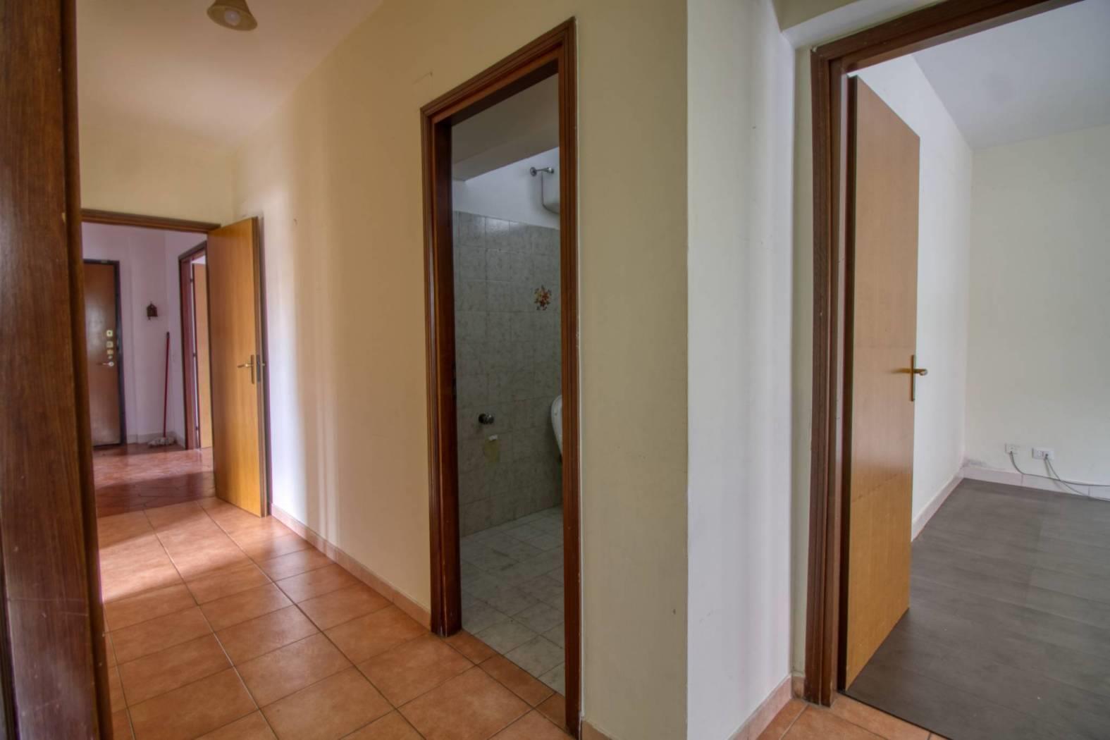 L’immobile si trova al primo piano ed è caratterizzato da ambienti ampi e ben distribuiti. L’ingresso è dotato di un comodo armadio a muro e conduce a un ampio salone con accesso a un balcone coperto. La cucina è abitabile e dispone di un secondo balcone coperto. La zona notte, ben separata tramite disimpegno, è composta da due spaziose camere da letto e da due bagni.