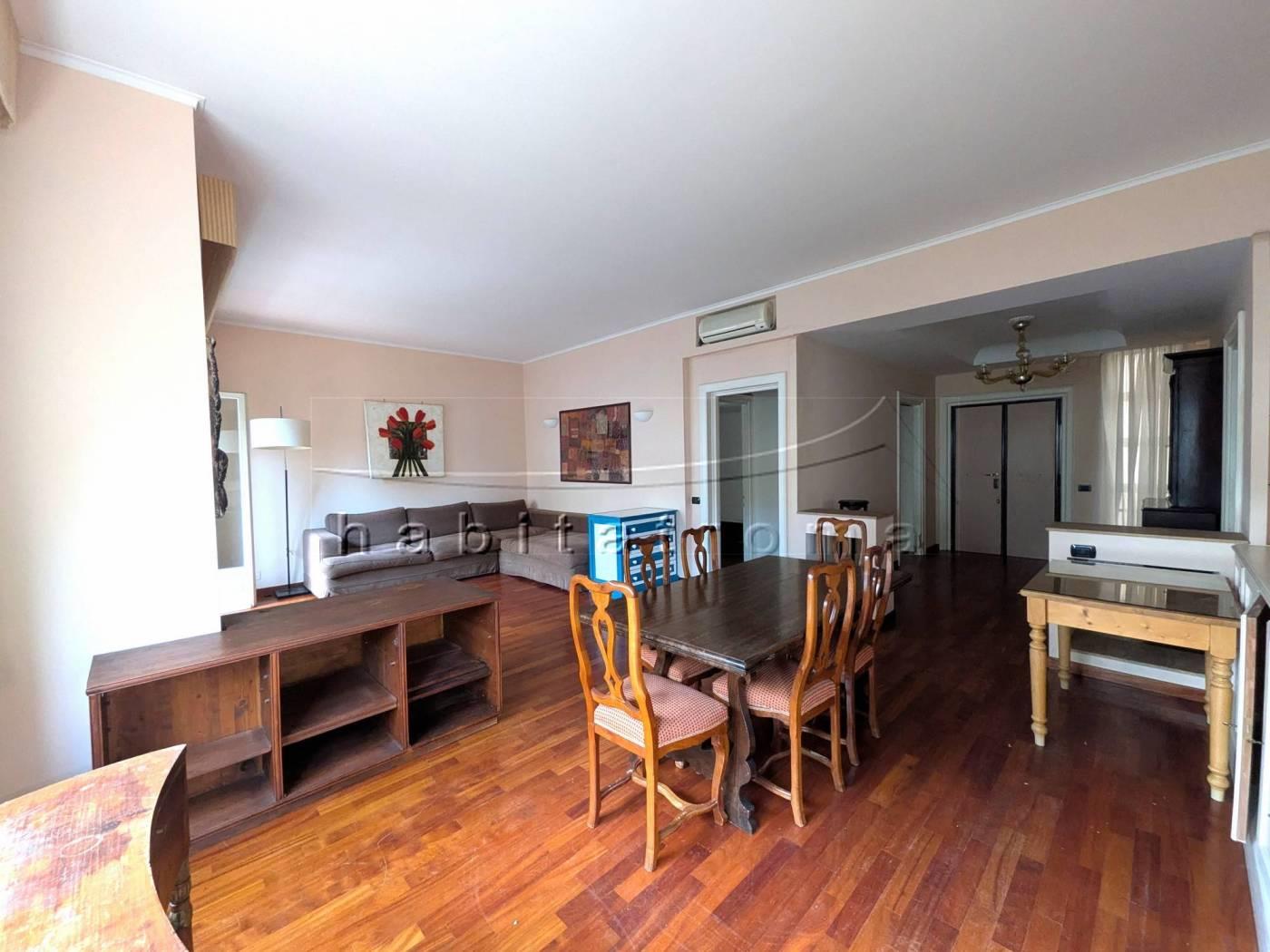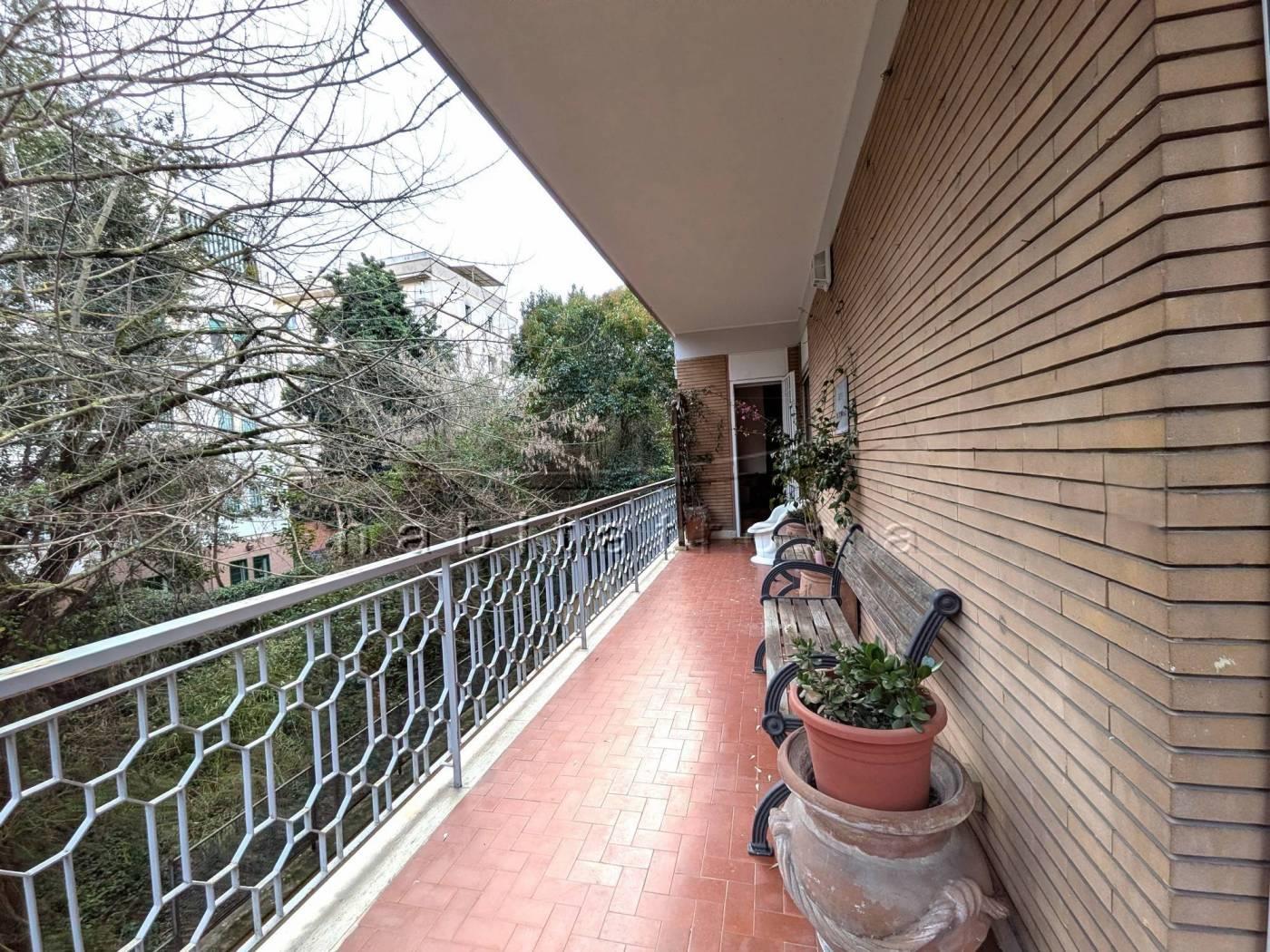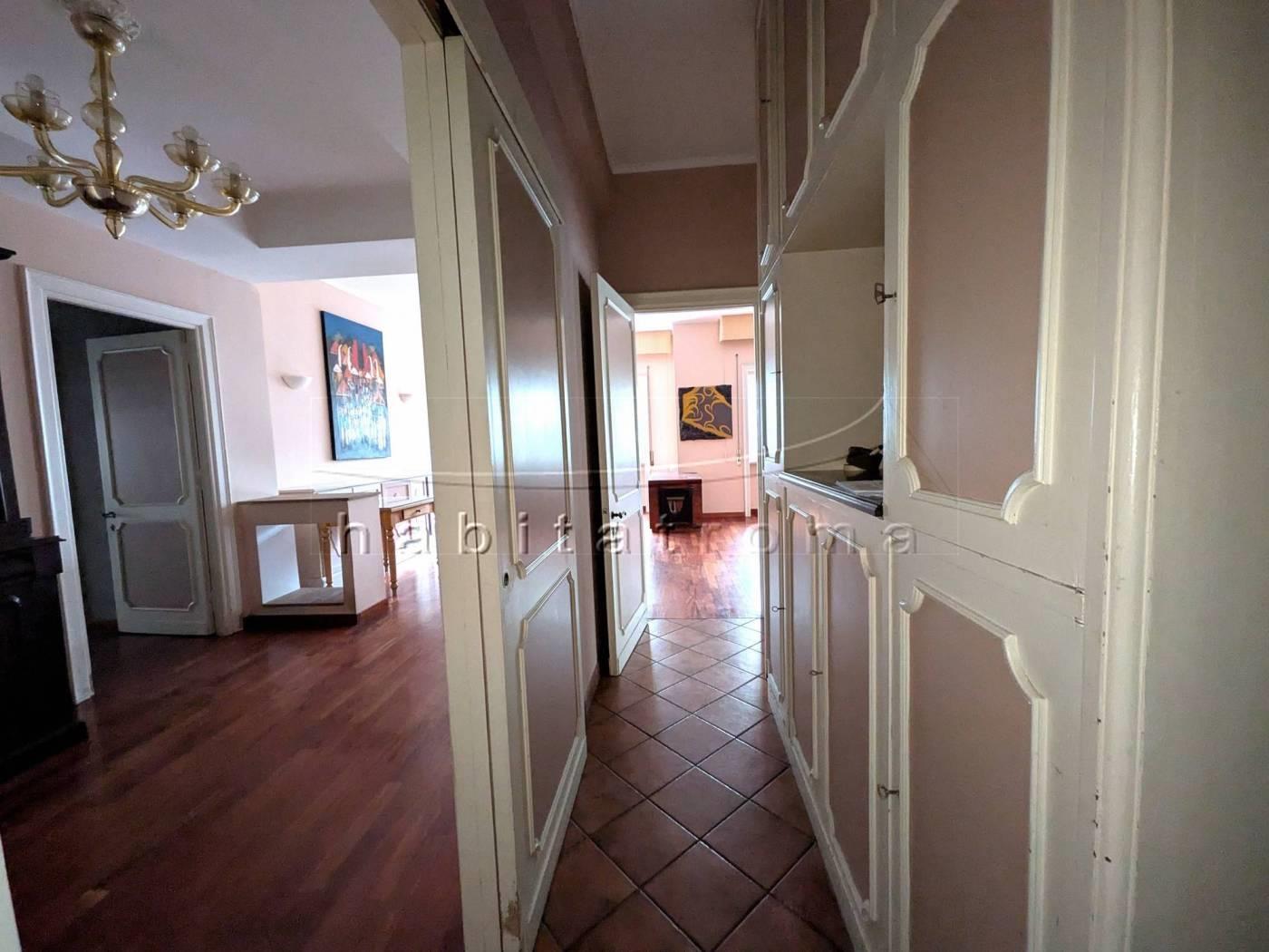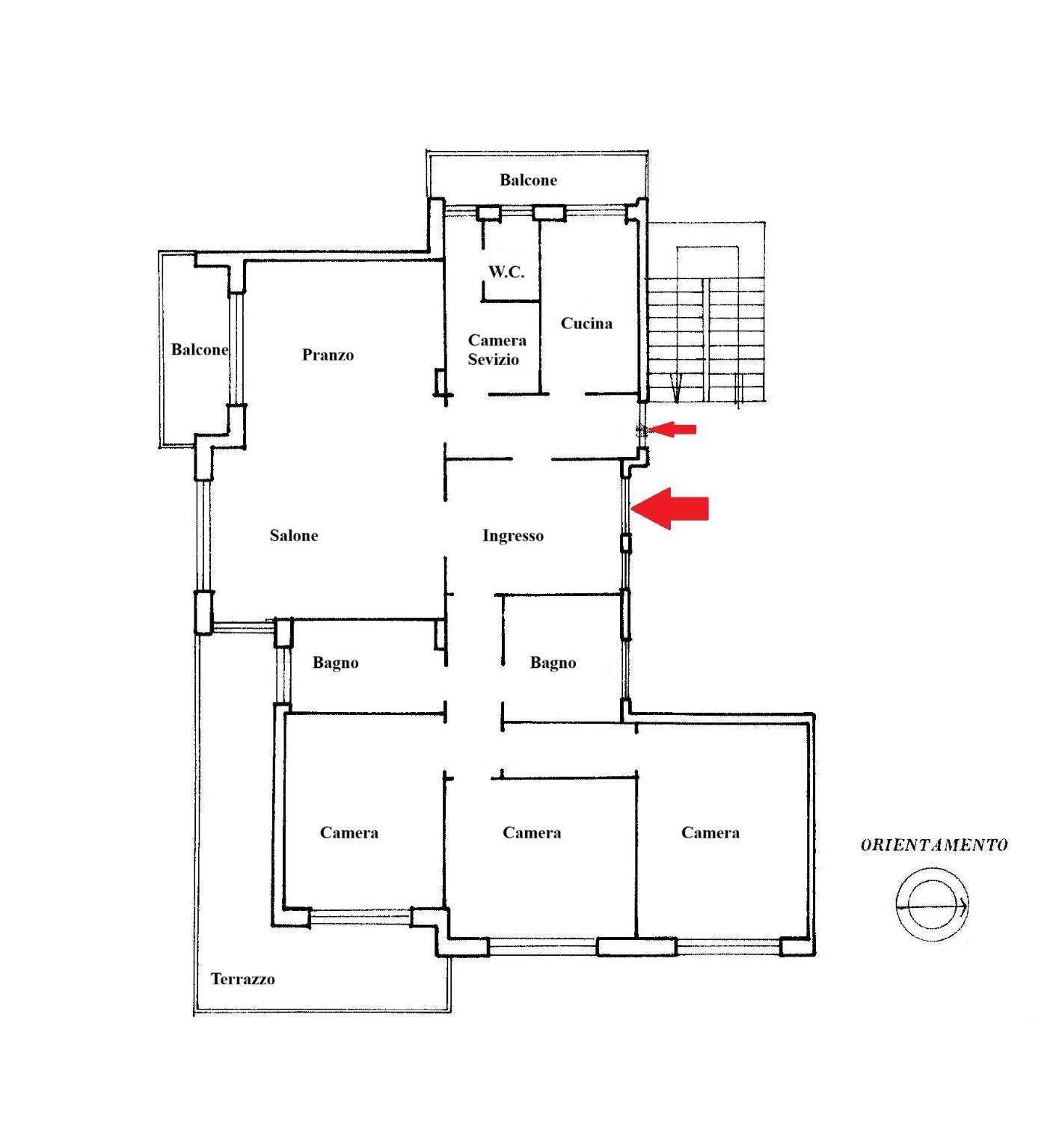 L’appartamento è così composto: doppi ingressi, che lo rendono eventualmente frazionabile in due unità abitative, ampio ingresso che si apre sul salone doppio dal quale si accede a due dei tre balconi, zona servizio composta da cucina con balcone, camera e bagno di servizio; la zona notte è composta da tre ampie camere da letto matrimoniali e doppi servizi entrambi con finestra; armadi a muro e riscaldamento centralizzato.