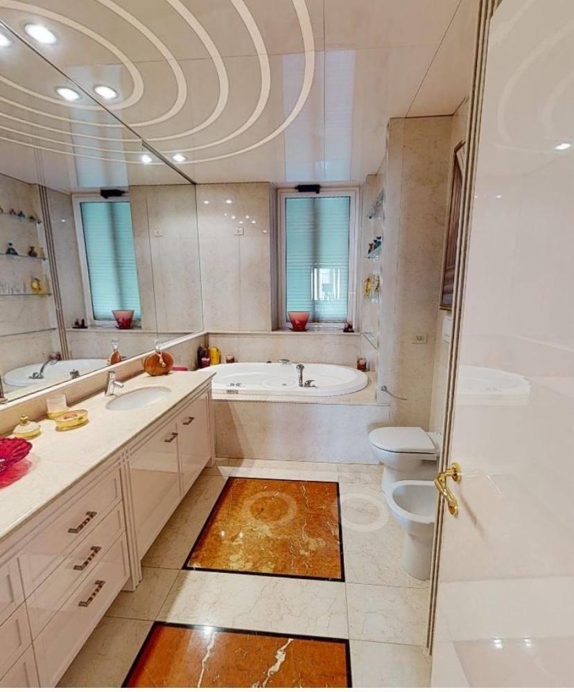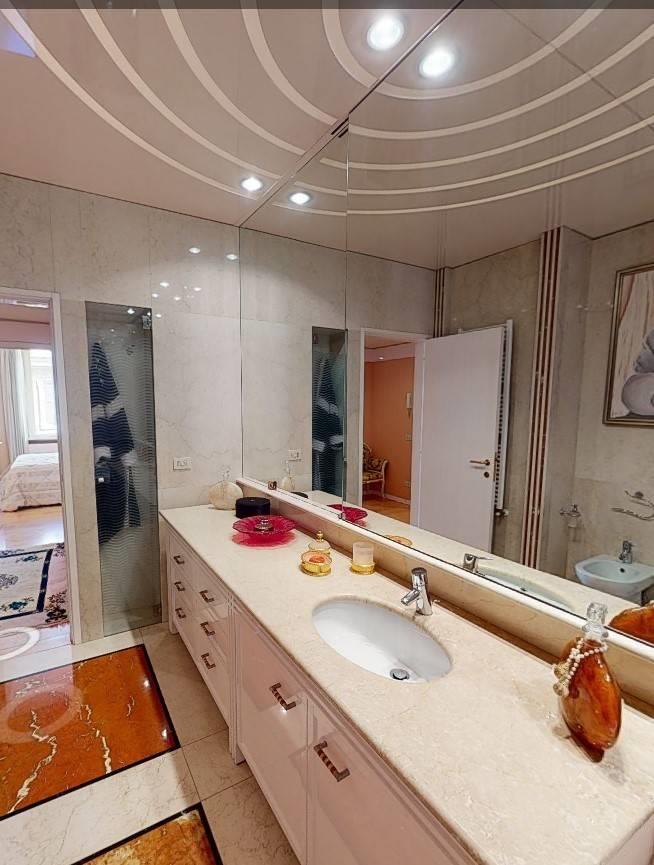 Vendita appartamento in Via Basento di circa 200 mq , in via molto tranquilla tra il rione Trieste e Ludovisi a due passi da villa Borghese e dal centro Con una piacevole passeggiata. Piano attico senza terrazzo. Un balcone con affaccio interno perimetrale dalla cucina ad una camera da letto. L appartamento è totalmente ristrutturato e con alcuni arredi fissi su misura in pregiato legno laccato. I pavimenti sono in parquet di primaria qualità come la carta da parati sulle pareti . Tutte le rifiniture sono state eseguite con i materiali di pregio piu' elevato. Palazzina elegante con ascensore e servizio di portineria. Quinto piano composto da un ampio ingresso con vestiere, corridoio che porta in uno splendido salone triplo con ampie finestre dove abbiamo una zona pranzo e una zona divani. Una cucina moderna completa di tutto e abitabile, due comode suite con rispettivi bagni e un disimpegno con armadi a muro. Richiesta € 2150.000.