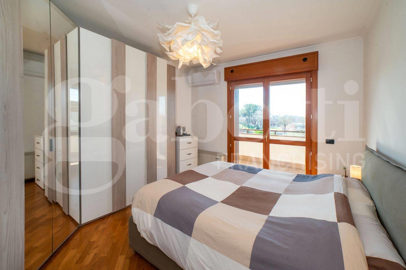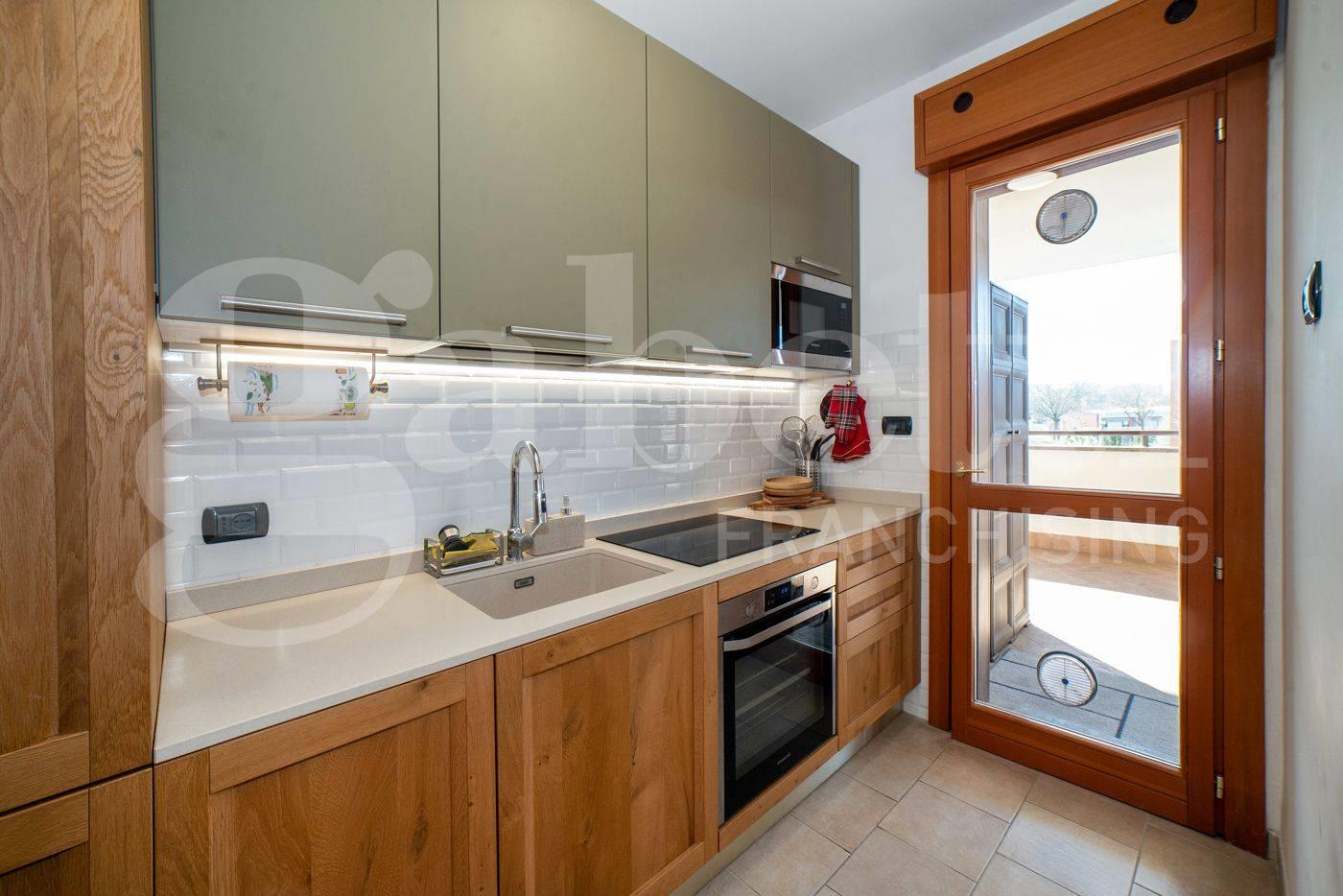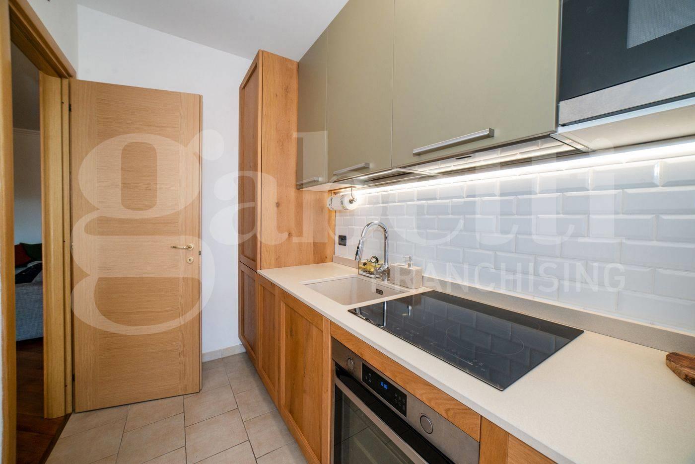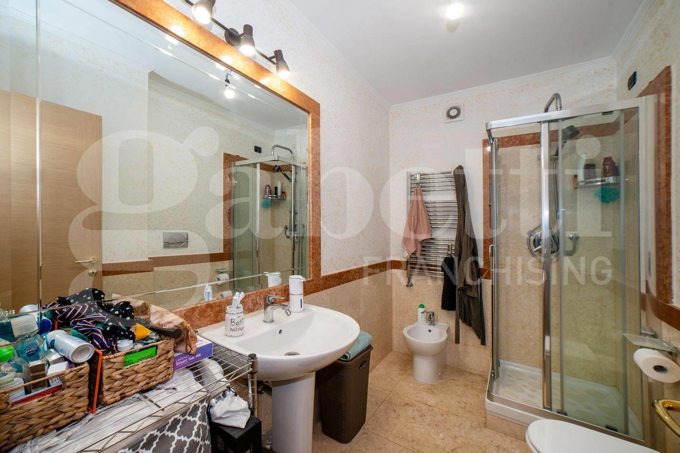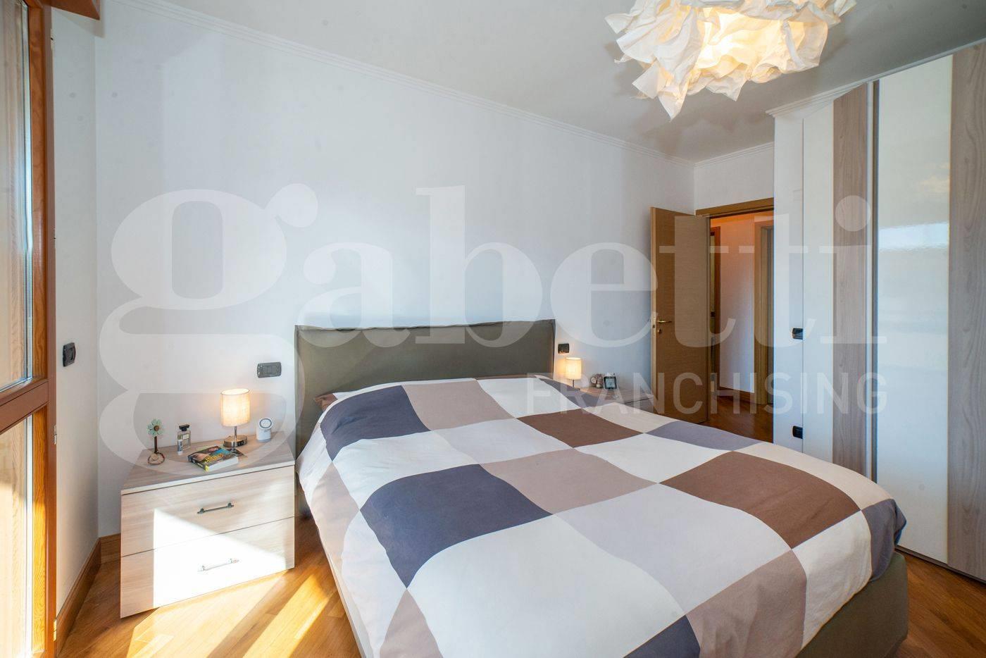 All’interno, ambienti luminosi e finiture di pregio creano un’atmosfera moderna e accogliente. L'immobile si compone di un ampio soggiorno con cucina separata, mentre la zona notte comprende una camera matrimoniale con accesso diretto al terrazzo, una seconda camera ideale come studio o cameretta e due bagni raffinati, uno con vasca idromassaggio e uno con doccia.