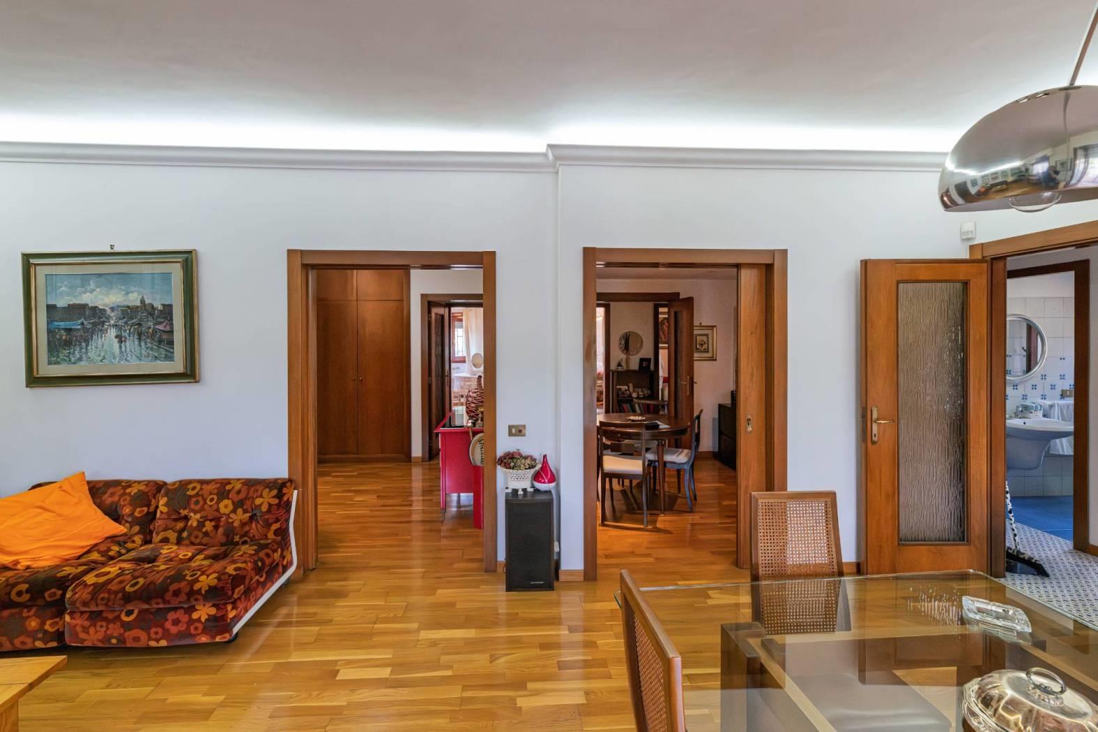 Giustiniana appartamento di circa 140 mq in un piccolo condominio fronte Cassia in ottime condizioni si compone di ampio ingresso, salone doppio, sala da pranzo, cucina abitabile, tre camere e doppi servizi. Completa la proprietà un balcone di circa 25mq. Tra le dotazioni, porta blindata, infissi in legno con doppi vetri, grate alle finestre, parquet, aria condizionata e impianto di allarme. La zona vanta la presenza delle scuole francese e inglese, oltre alle pubbliche, e offre facile accesso a supermercati, negozi, fermata dell'autobus e alla stazione FM3 di Giustiniana.