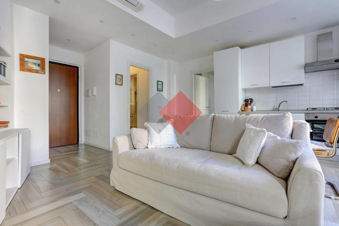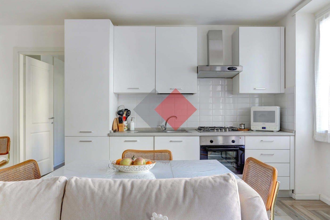 La soluzione offre un design moderno e si presenta con pavimentazione in gres effetto legno, infissi in alluminio/doppio-vetro, porte in legno, riscaldamento centralizzato e aria condizionata.