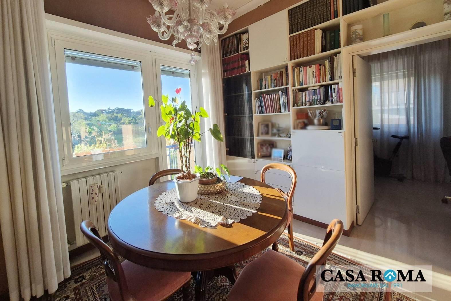 In una delle zone residenziali più ambite, verdi e silenziose di Roma, proponiamo in vendita un elegante appartamento di ampia metratura, situato all’interno di un curato comprensorio con palazzine in cortina, arricchito da giardini e aiuole.