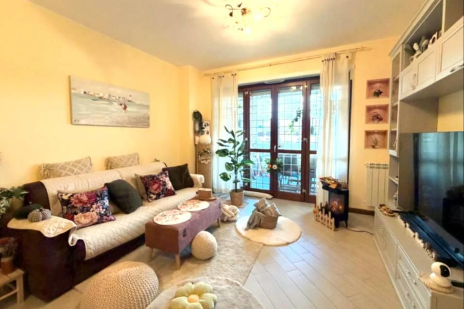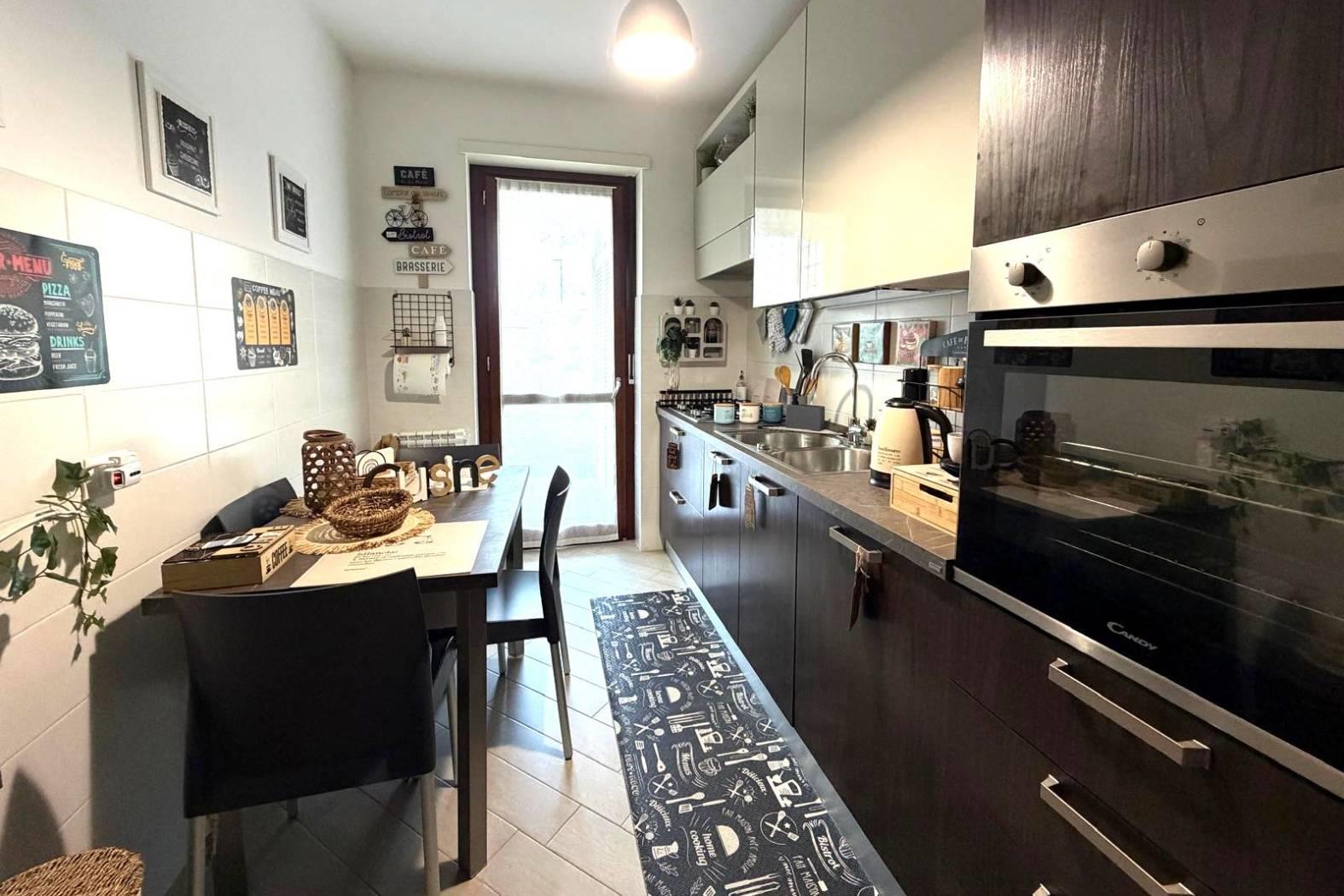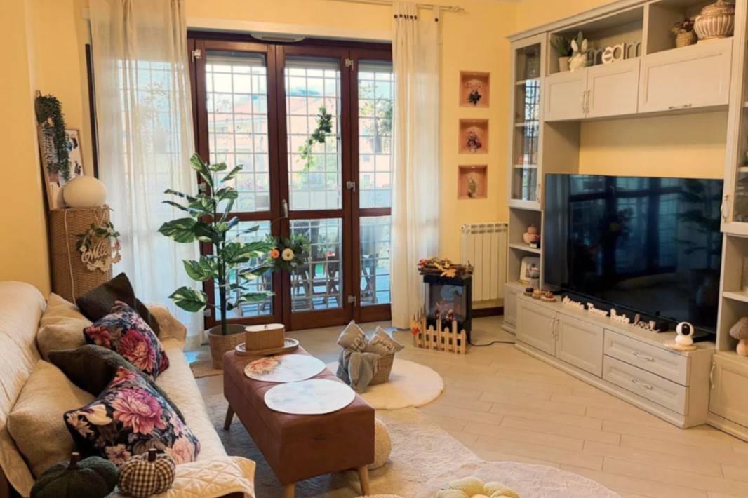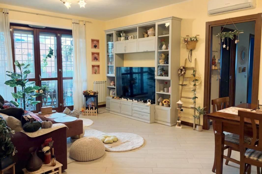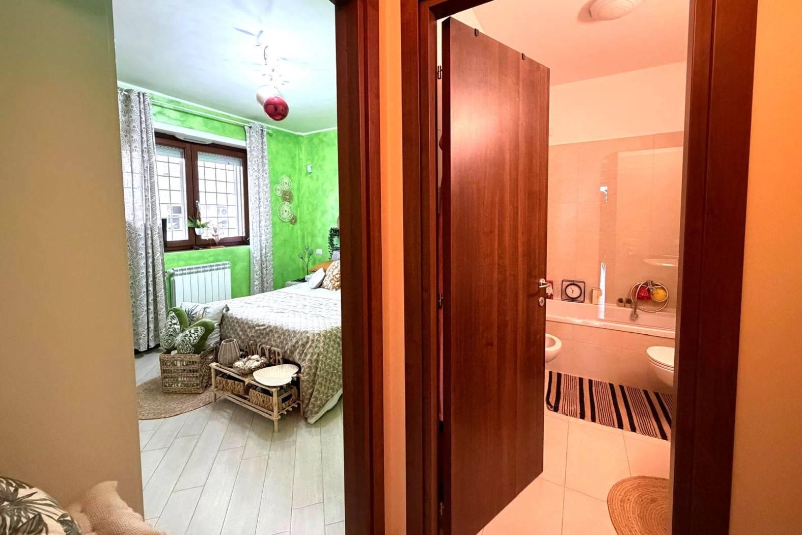 L’immobile è composto da un soggiorno di generose dimensioni, una cucina abitabile, due camere matrimoniali e due bagni, di cui uno finestrato e l'altro con accesso diretto dalla camera. Completano la proprietà un comodo terrazzo con affaccio libero sul verde che circonda l’abitazione, ideale per momenti di relax all’aria aperta e un posto auto scoperto.
