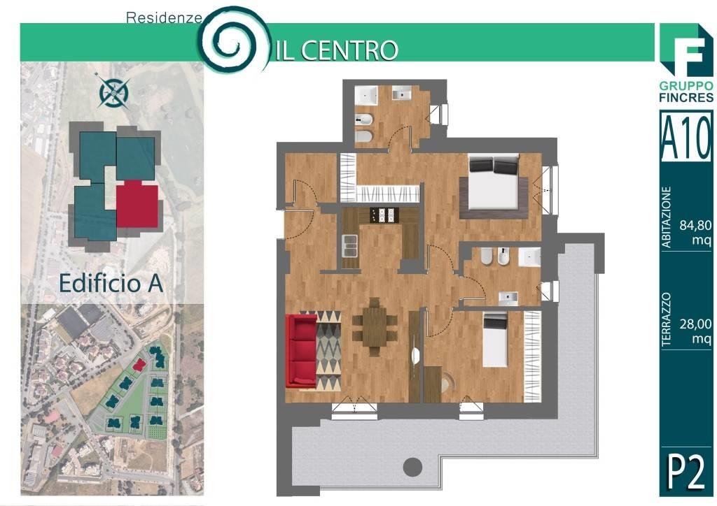 Tra le varie tipologie disponibili, al piano secondo proponiamo appartamento composto da salone con angolo cottura, 2 camere da letto, doppi servizi e ripostiglio. Completa la proprietà un ampio terrazzo di circa 28 mq.
