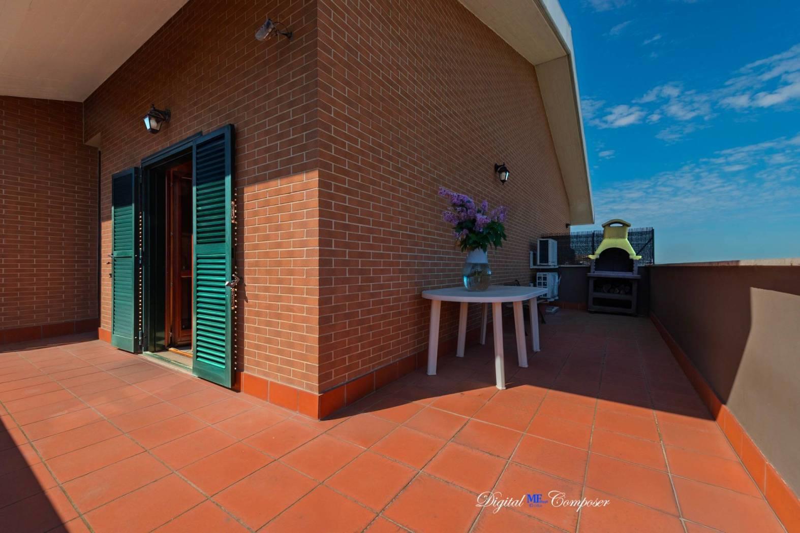IMMOBILSERVICE di Ciampino propone in vendita appartamento in Via Marsala, adiacente al centro sportivo di Vigna Fiorita, posto due due livelli ed internamente composto di: salone (con possibilità di angolo cottura, dati gli attacchi idraulici ed elettrici già presenti), cucina abitabile o eventuale camera matrimoniale, bagno con doccia doppia walk-in, balcone all'ingresso e ampio terrazzo su due lati al piano primo; due camere al piano secondo o sottotetto. Completa la proprietà un comodo box auto al piano interrato. Condominio di recente costruzione, con moderne rifiniture e posti auto condominiali esterni.
