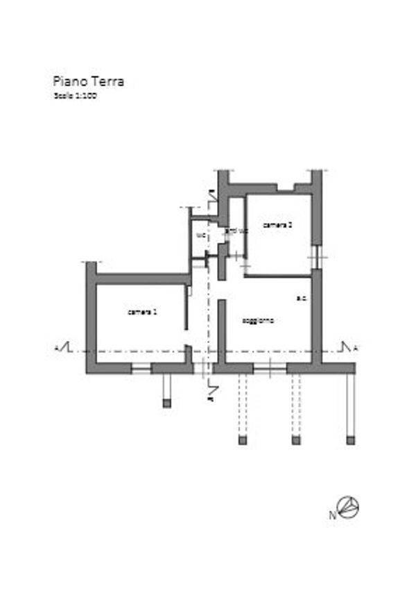 Appartamento semindipendente, con soggiorno ed angolo cottura, una camera da letto, una camera con camino ed un bagno. Completa la proprietà un bel porticato all'esterno.