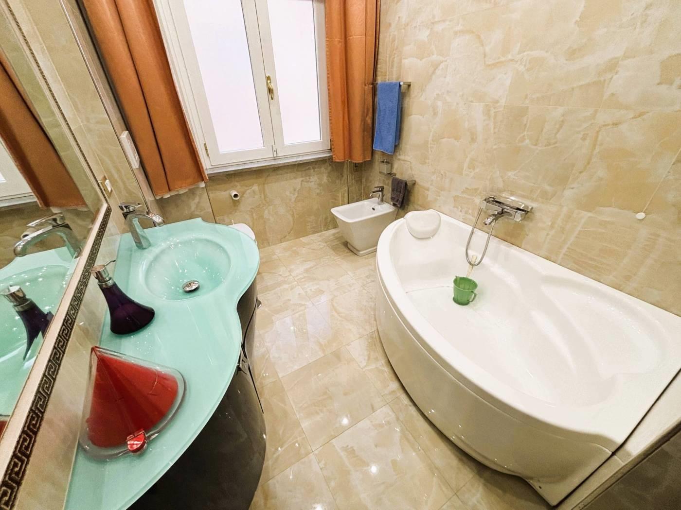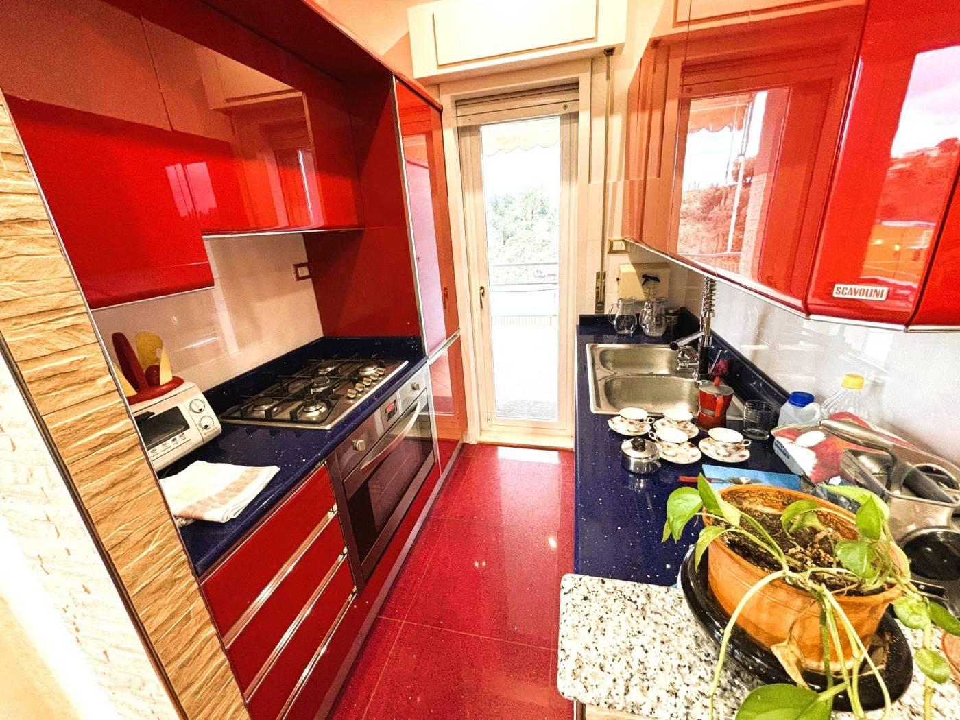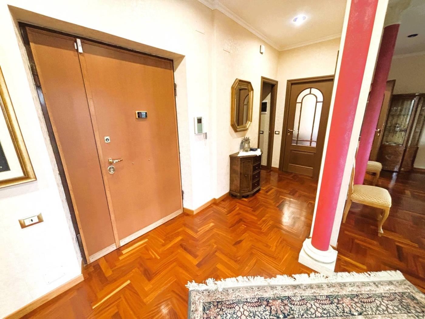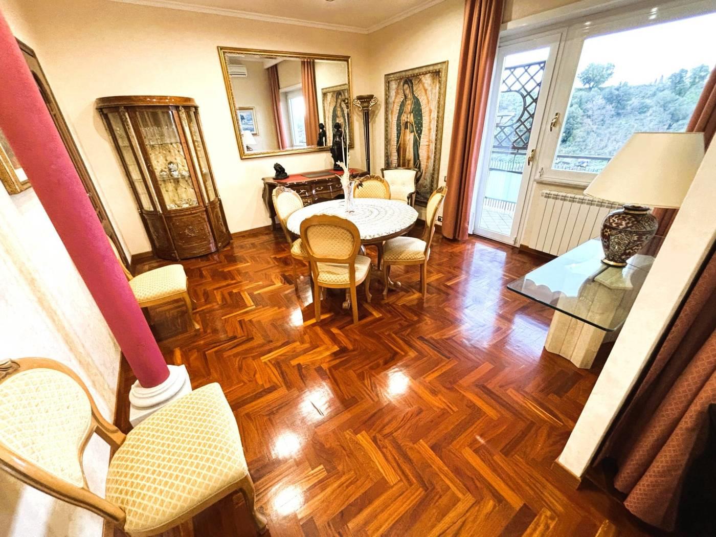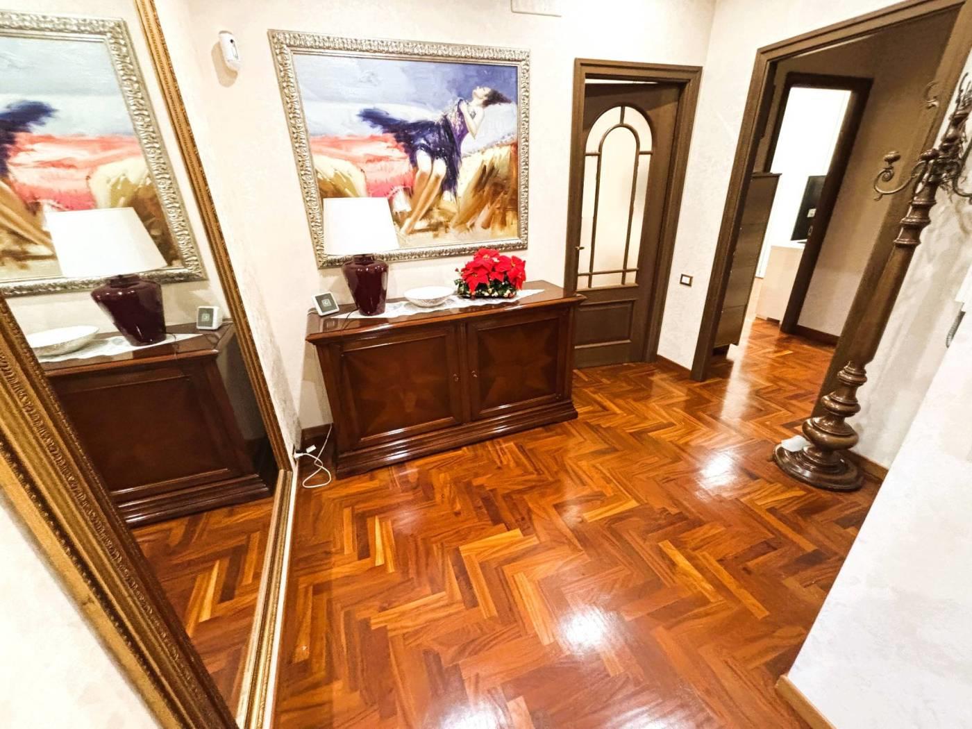 un doppio salone panoramico, tre camere da letto, due bagni con vasca idromassaggio, cucina Scavolini nuova e materiali di pregio in ogni ambiente. Parquet di qualità, infissi di ultima generazione, riscaldamento autonomo e aria condizionata caldo/freddo completano un quadro abitativo di alto livello.