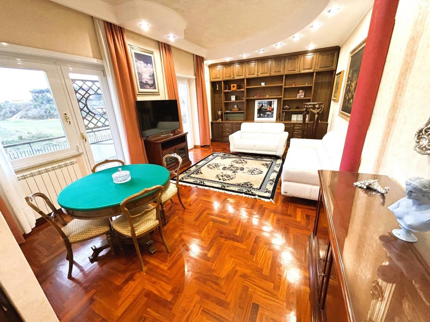 In via Stefano Vaj 54, di fronte al campo di calcio e in una delle posizioni più richieste di Montespaccato, proponiamo un appartamento di rappresentanza, ideale per famiglie numerose o per chi desidera un’abitazione importante e versatile. Dotato di una ampia balconata di 30 mq circa, in parte a terrazza, esposto a sud, doppio ingresso e possibilità di divisione in due unità. Un terzo piano con ascensore pensato per chi cerca spazio vero, comfort e qualità senza compromessi.