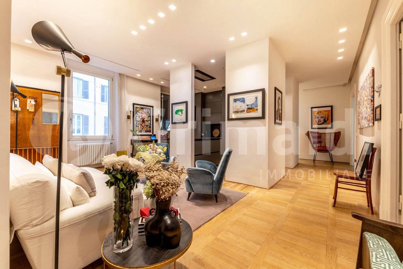 L'immobile, ristrutturato, è composto da: ingresso, soggiorno triplo, sala pranzo con cucina a vista, una camera da letto con cabina armadio e bagno privato, cameretta/studio, altro bagno.