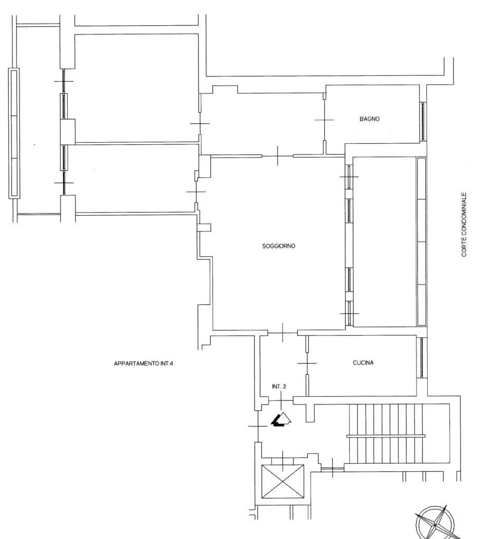 Ingresso al piano primo con ascensore e scale condominiali, salone doppio che comprende una parte dedicata alla zona pranzo, 2 camere da letto (matrimoniale e singola), una sala da bagno con vasca (possibilità di realizzare secondo bagno ), un ampio disimpegno che consente di essere integrato alla zona notte o attrezzato come spazio armadiato.