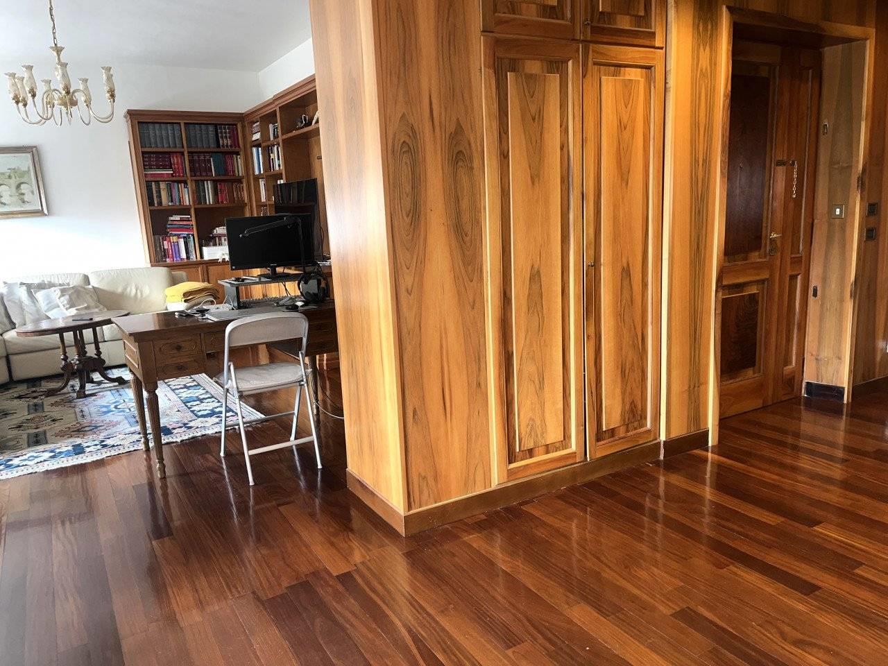 La Fleming Real Estate propone un appartamento molto signorile in locazione. L'appartamento è composto di salone, studio, sala da pranzo, 3 camere, cucina abitabile, doppi servizi, due balconi e un terrazzino. Questa proposta immobiliare è particolarmente gradevole avendo degli arredi molto signorili. L'appartamento ha armadiature, boiserie in grand parte degli ambienti parquet. Completano la proprietà un box auto e una cantina.