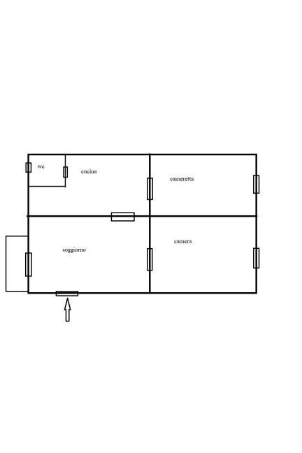 L'appartamento è composto da un soggiorno con balcone, una cucina funzionale, una camera da letto principale, una cameretta ideale per ospiti o come studio, e un servizio completo. La canna fumaria permette l'installazione di un camino o di una stufa a pellet, creando un'atmosfera calda e accogliente durante i mesi invernali. Inoltre, la soffitta offre spazio utile per riporre oggetti e mantenere l'ordine.