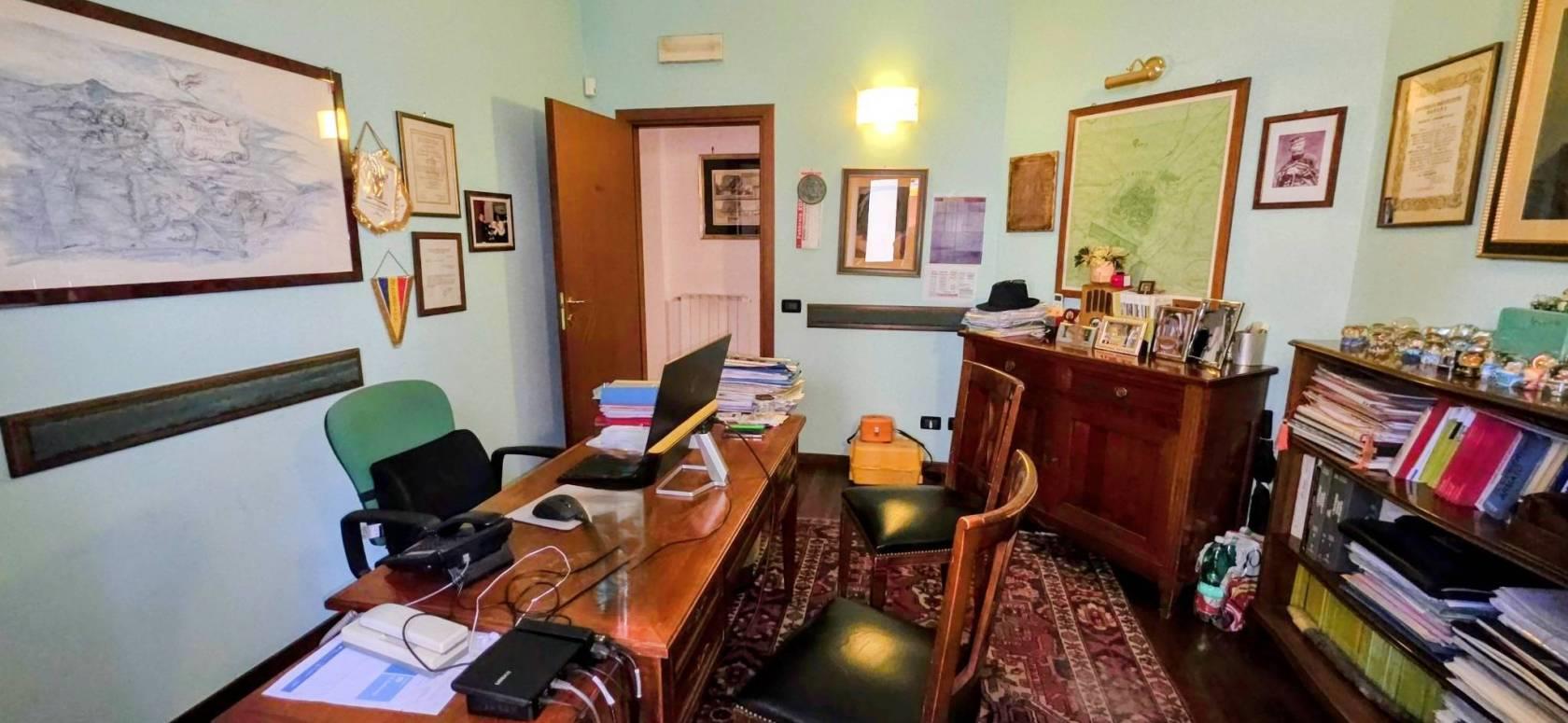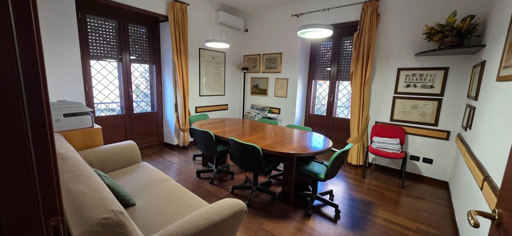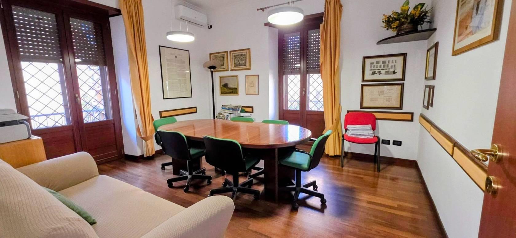 ingresso, sala d’attesa, due uffici di ampia metratura, uno studiolo, magazzino, stanza conferenze, studio doppio e bagno.