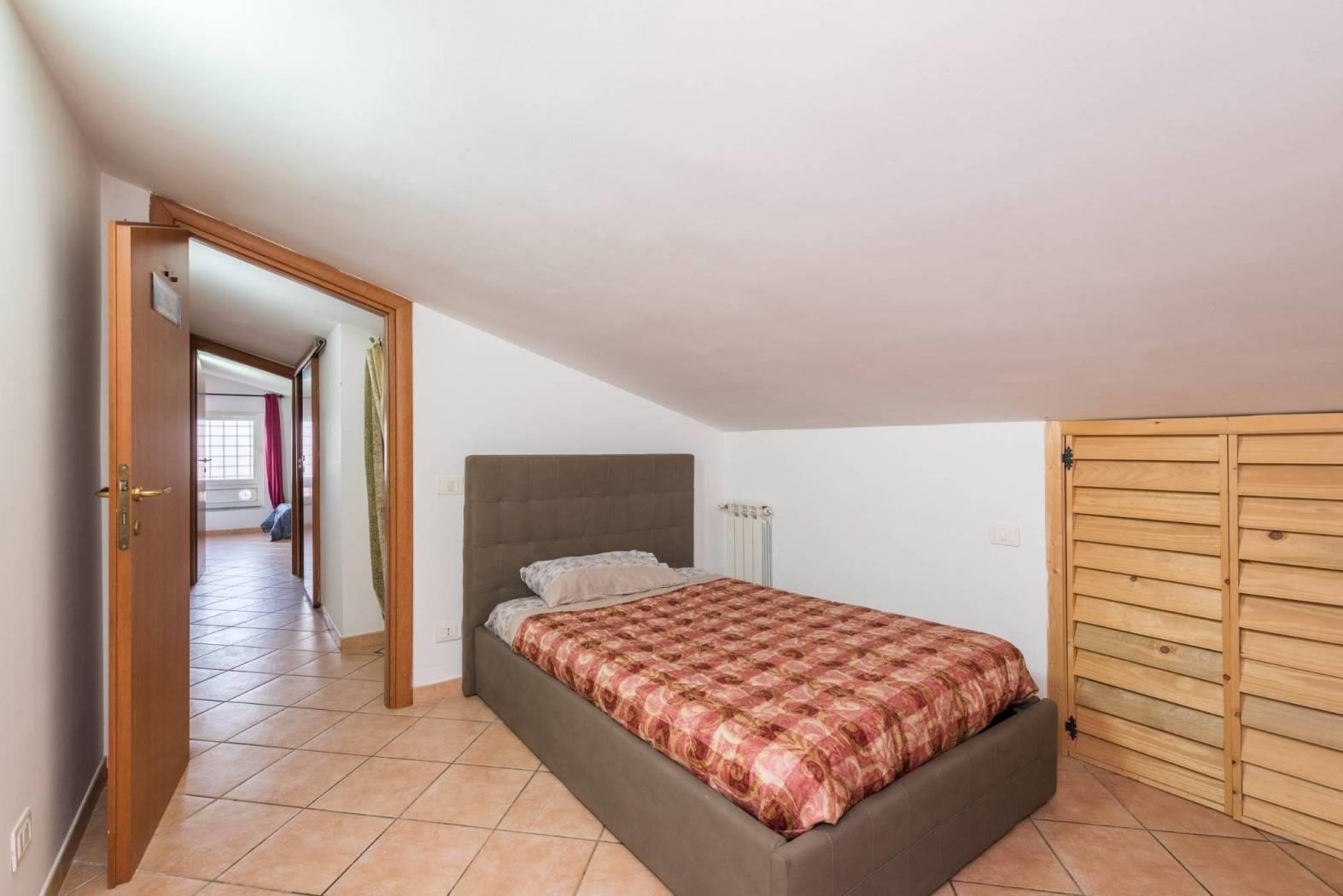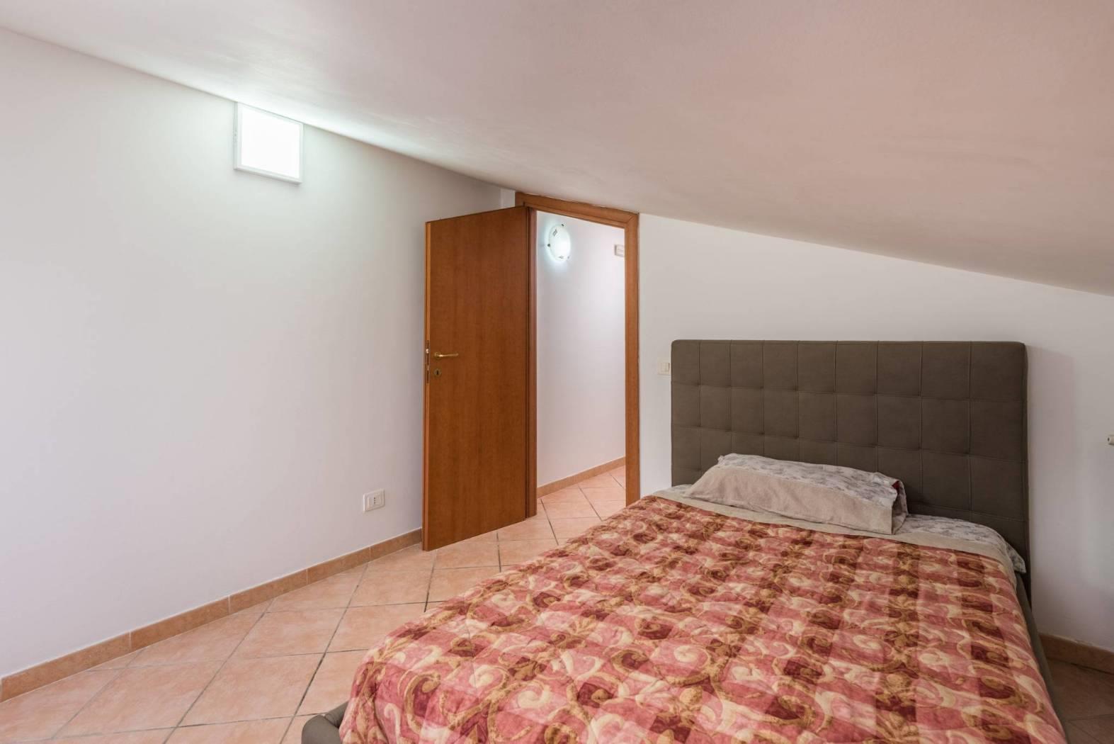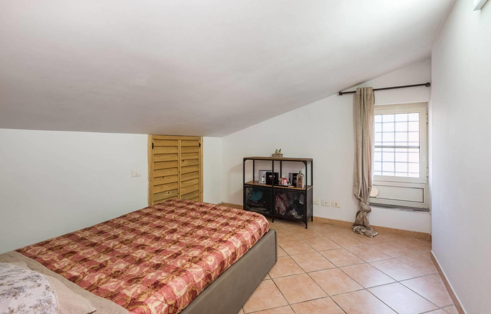 La zona notte del primo livello è composta da una confortevole camera da letto e da un bagno finestrato che completa il piano rendendolo pratico e funzionale.