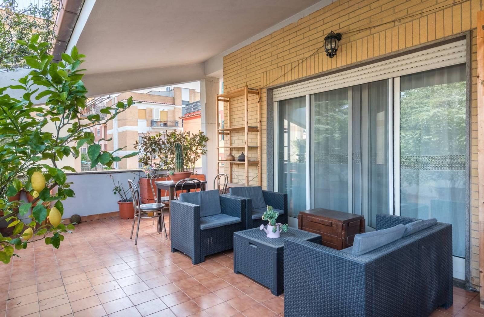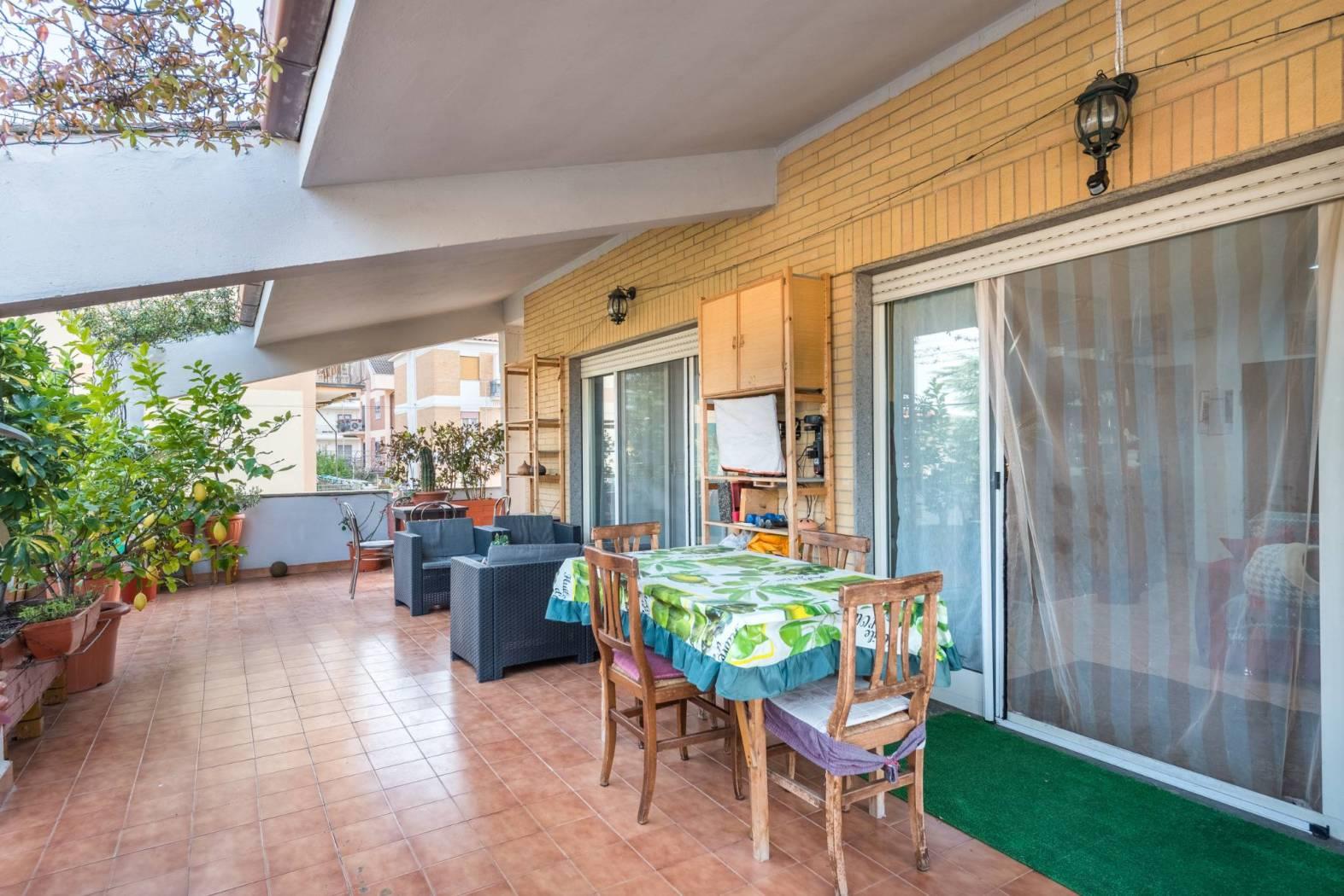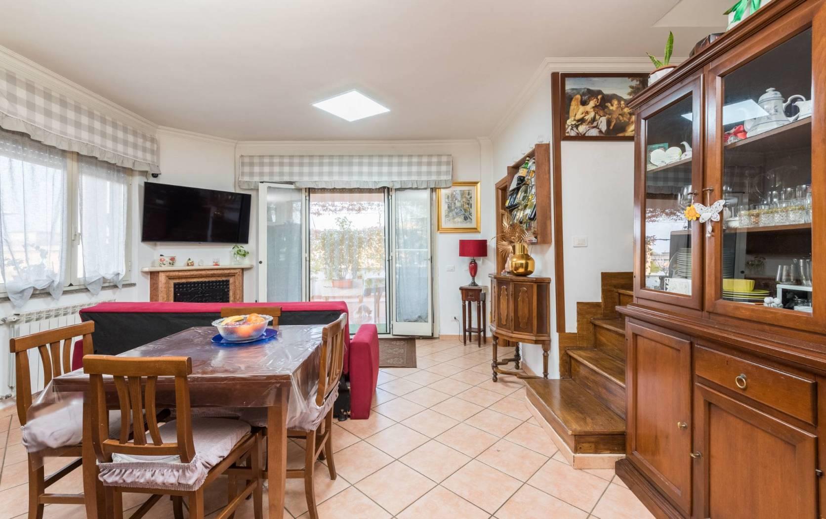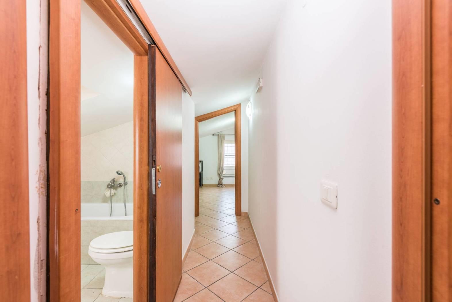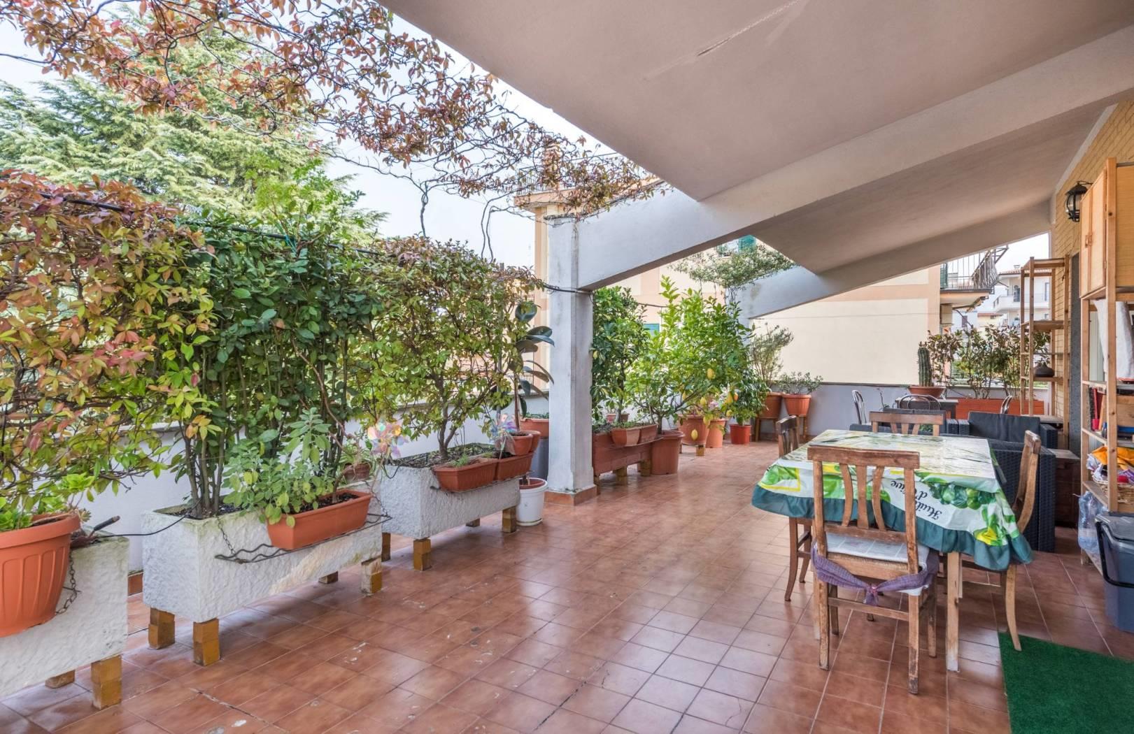 Dal soggiorno si accede allo splendido terrazzo perimetrale di circa 80 mq, una soluzione ideale per chi ama vivere gli spazi esterni e godersi momenti di relax all’aria aperta. Il barbecue in muratura vi permetterà di organizzare piacevoli pranzi in compagnia.