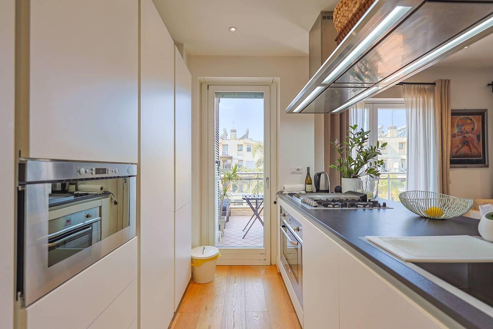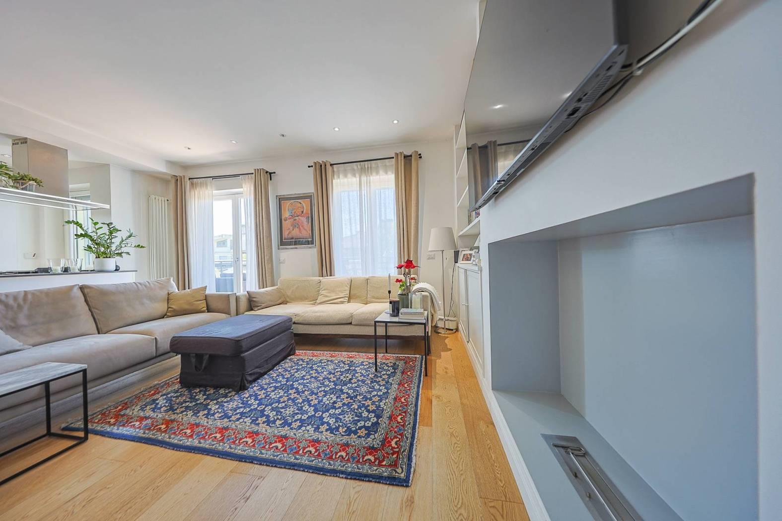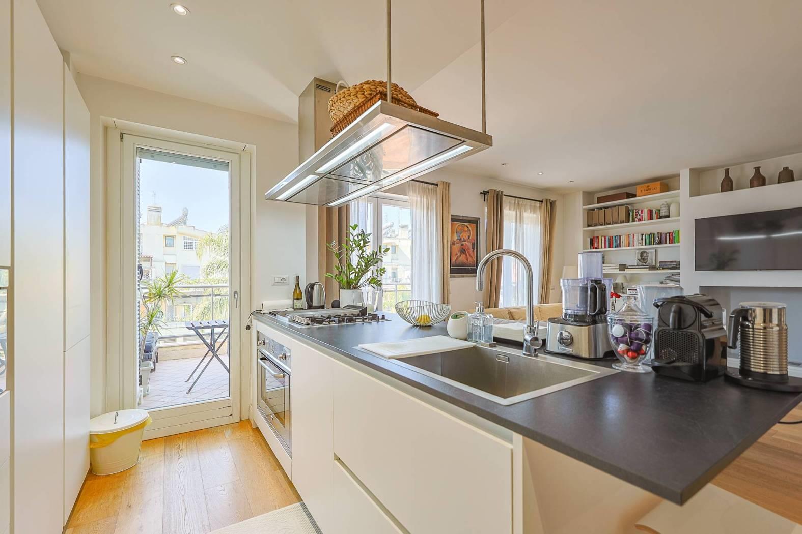 L'immobile si presenta completamente e finemente ristrutturato e con le seguenti caratteristiche di rilievo: porta blindata, pavimenti in parquet in rovere in tutti gli ambienti, infissi doppio vetro/Pvc effetto legno con serrande elettriche, cucina completa di elettrodomestici di classe energetica A compresa lavastoviglie, bagno con doccia con piatto a terra, camera matrimoniale con ampia cabina armadio, caldaia a gas autonoma, pannello solare autonomo, condizionatori in tutti gli ambienti, videocitofono, predisposizione impianto d'allarme, terrazzo completo di tende da sole. Gli impianti con certificazioni risalenti a 10 anni fa, riscaldamento autonomo ,le spese condominiali sono di circa Euro 80,00 mensili.
