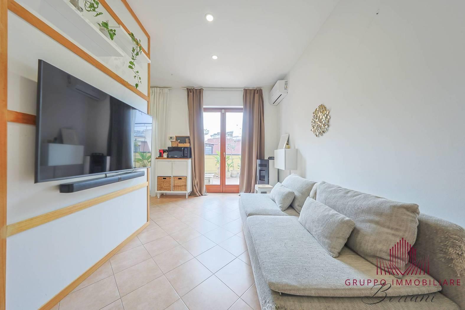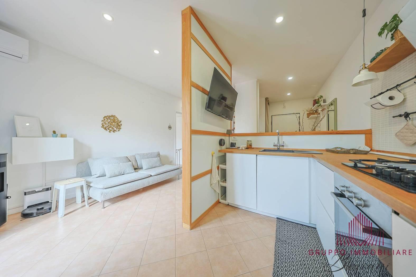 L'immobile si presenta in buono stato conservativo e con le seguenti caratteristiche di rilievo: porta blindata, pavimenti in gres porcellanato in tutti gli ambienti, infissi doppio vetro/legno, cucina con cappa di design completa di elettrodomestici compresa lavastoviglie, bagno con doccia con piatto a terra, camera matrimoniale con ampia cabina armadio, caldaia a gas autonoma, pannello solare autonomo, condizionatori in tutti gli ambienti, videocitofono, predisposizione impianto d'allarme, riscaldamento autonomo le spese condominiali sono di circa Euro 120,00 mensili.