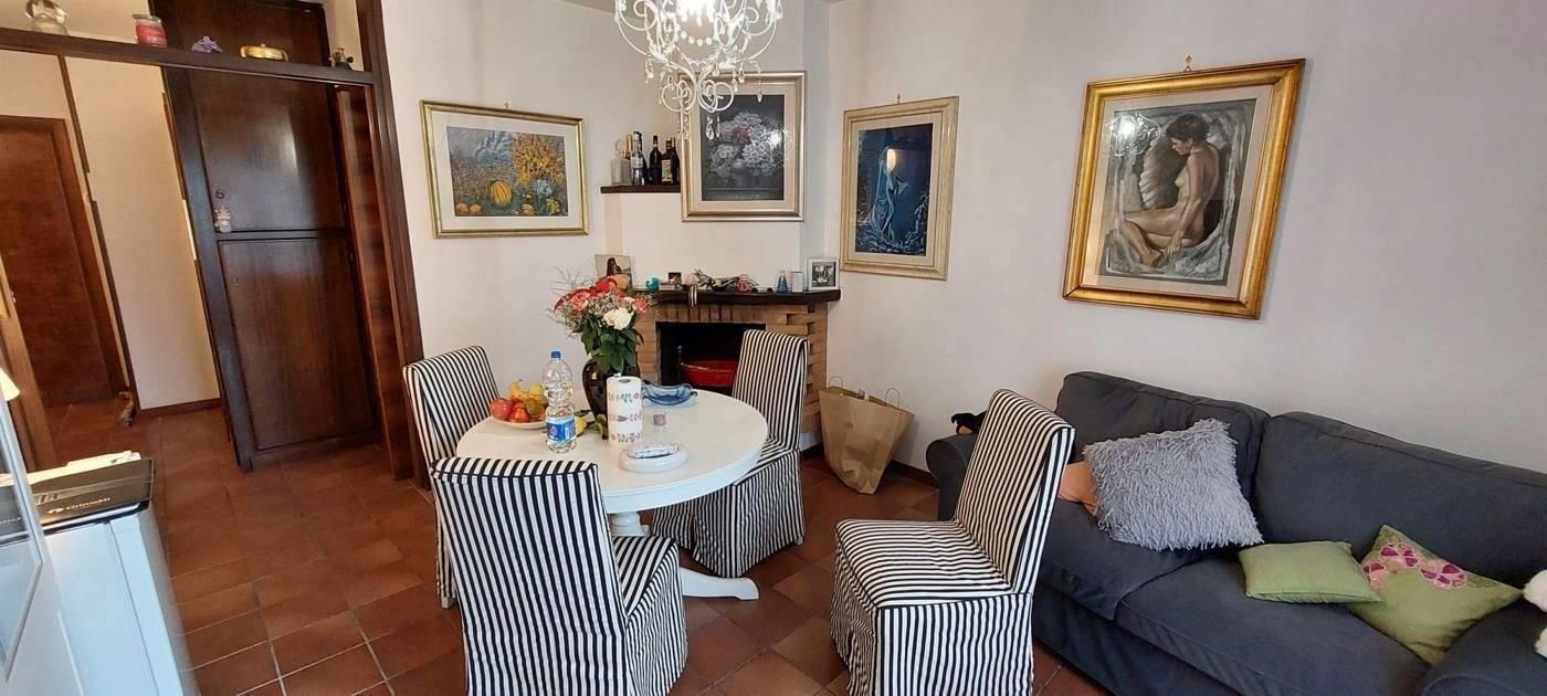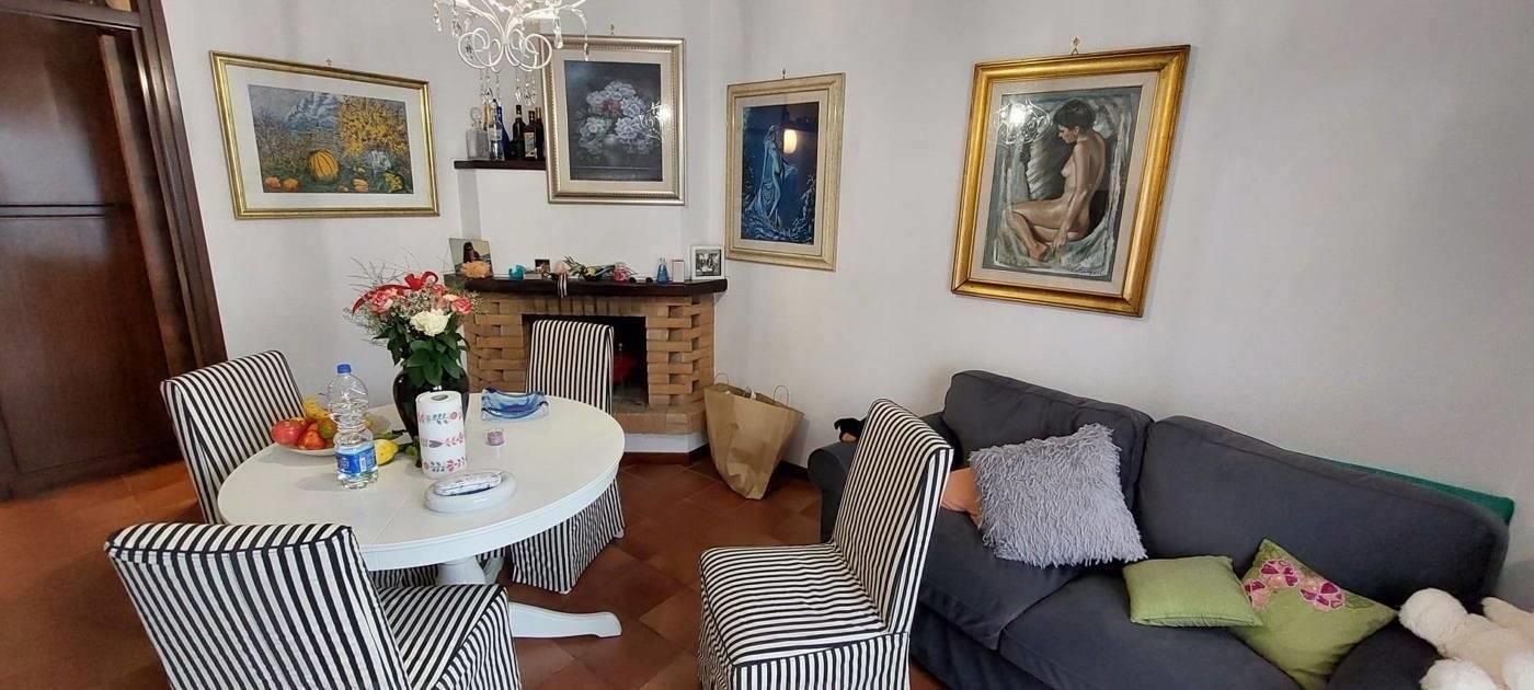 In the quaint and charming historic village of Nemi, directly on Piazza Roma, with all services and shops nearby, and accessed from a shared outdoor courtyard, we offer a charming apartment with a private entrance on the mezzanine floor. The apartment comprises an entrance hall, kitchenette, hallway, living room with fireplace and a first-floor view of the square, double bedroom, and bathroom. The property also includes a convenient 10 sq m cellar in the basement. The apartment is in good overall condition, while the bathroom was completely renovated in October 2024. It features double-glazed wooden windows, a security door, independent natural gas heating, and hot/cold air conditioning in the bedroom. Paid parking is available with a subscription for residents in the square, or there are free parking spaces just before reaching the center. The village, through the belvedere, enjoys a breathtaking view of the lake, surrounded by the picturesque village, with its narrow streets, artisan and food and wine shops, cafes, trattorias, etc.
