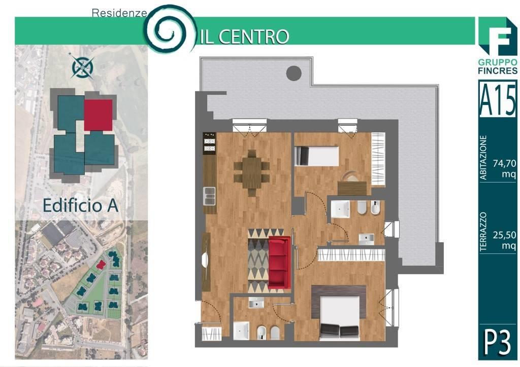 Tra le varie tipologie disponibili, al piano terzo proponiamo appartamento composto da salone con angolo cottura, 2 camere da letto, doppi servizi. e un ampio terrazzo di circa 25 mq.