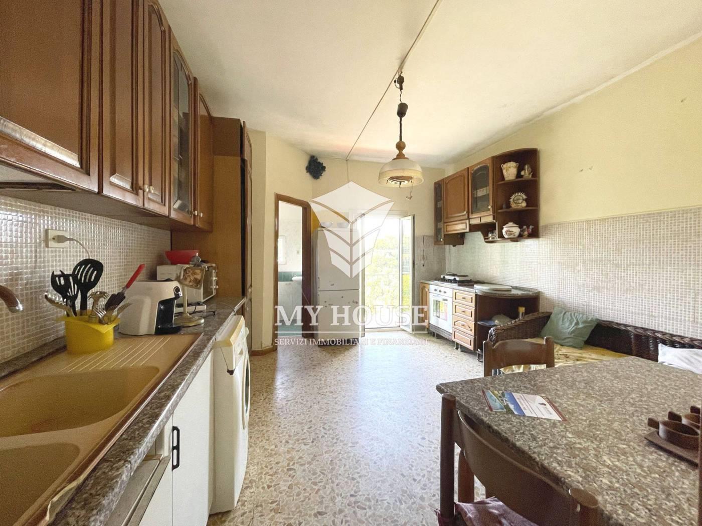proponiamo un appartamento trilocale di mq 80 c.a. posto al piano terra con ingresso indipendente. l’immobile si distingue per la sua pianta articolata con ambienti disposti su piu’ livelli, si presenta in buono stato, termoautonomo, abitabile da subito ma con ottime potenzialità di personalizzazione e valorizzazione tramite interventi di ristrutturazione. e’ internamente composto da un salotto di ingresso con accesso diretto agli altri ambienti principali, un’ampia cucina abitabile, dotata di balcone panoramico con splendida vista sul verde. un bagno finestrato con doccia. dal salotto si accede ad un’ampia camera da letto al piano rialzato e ad una cantina sottostante di circa 25 mq, sfruttabile in fase di ristrutturazione per creare una seconda camera matrimoniale o uno spazio multiuso. annessa un ulteriore cantina al civico precedente di mq 15.