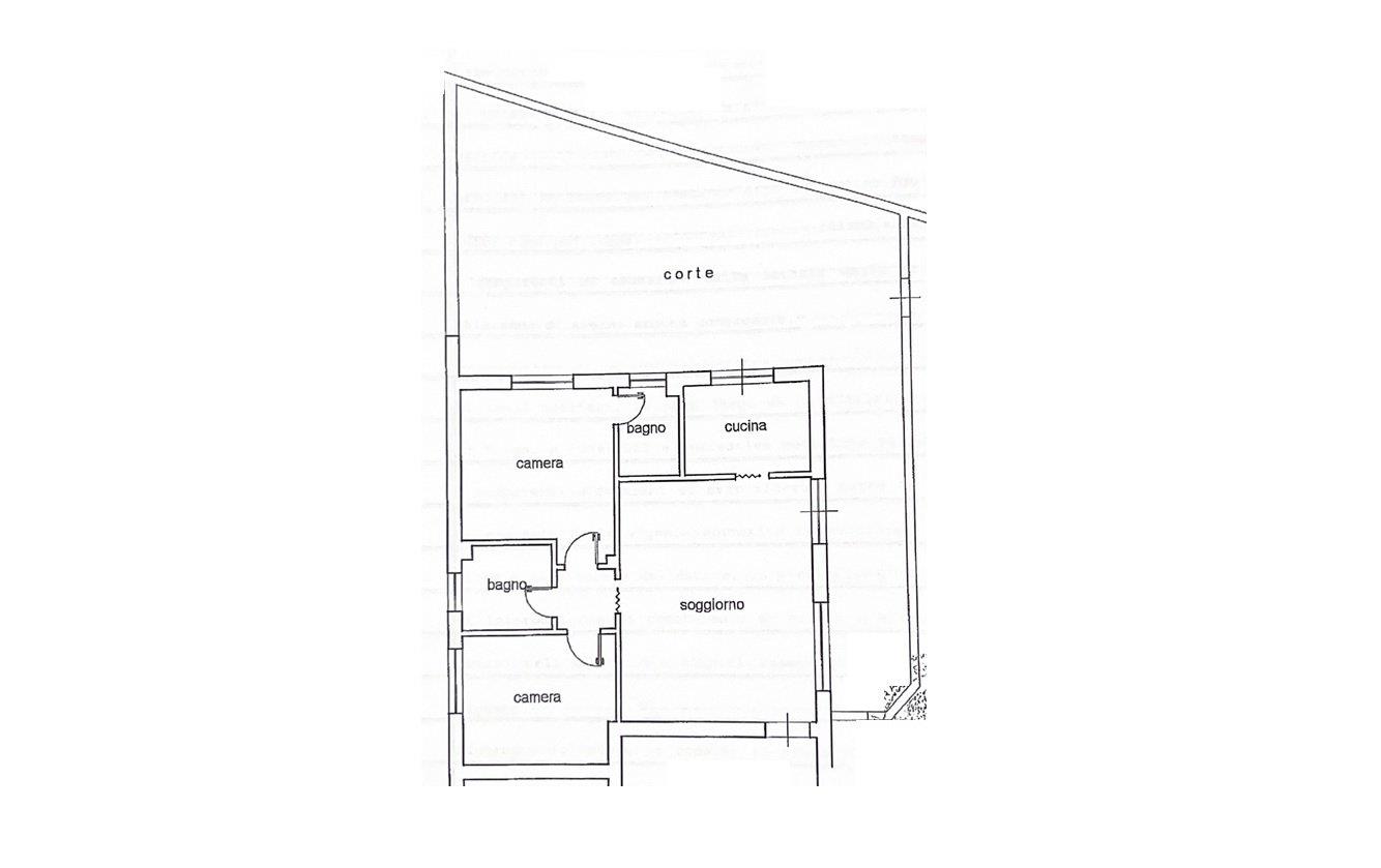 L'immobile, sito al piano terra, è composto da un ampio soggiorno luminoso e una cucina semi-abitabile funzionale, un disimpegno dal quale si accede a due camere da letto matrimoniali e due bagni, di cui uno in camera.