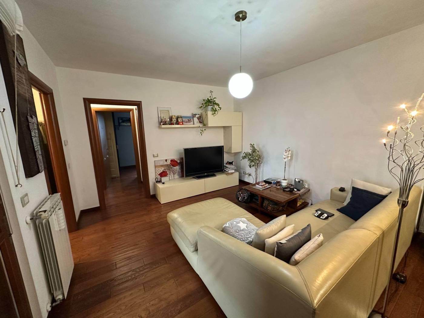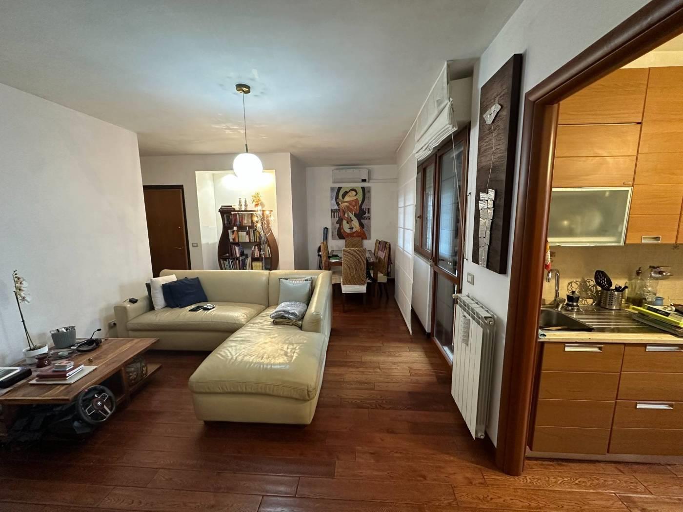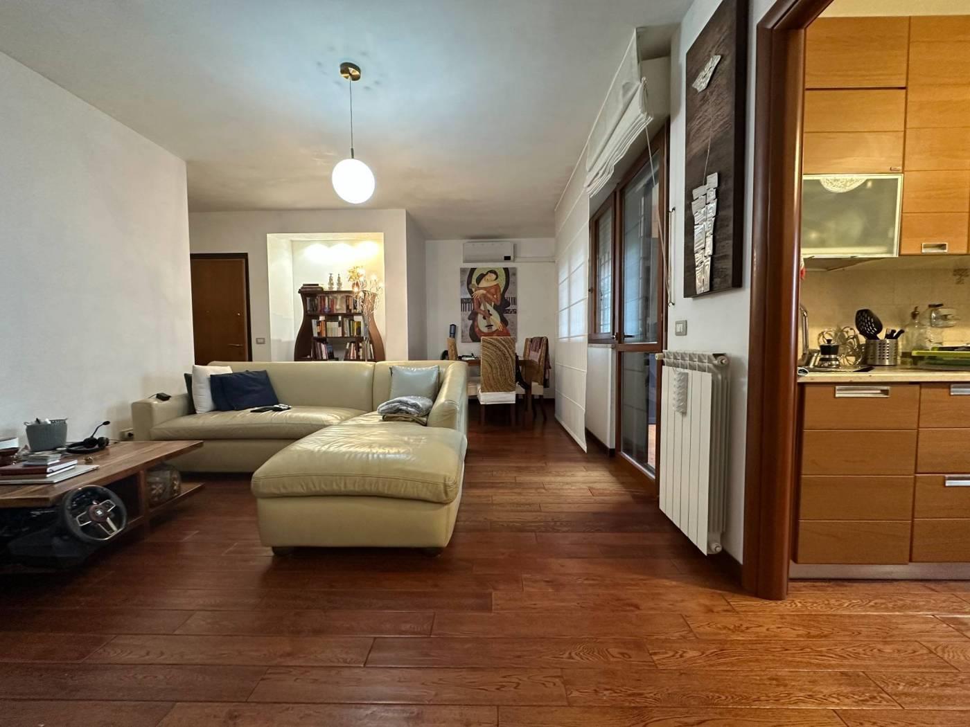 L'immobile è internamente così diviso: soggiorno, cucina, 2 camere, 2 bagni, completano la proprietà un ampio terrazzo, 2 posti auto e una cantina.