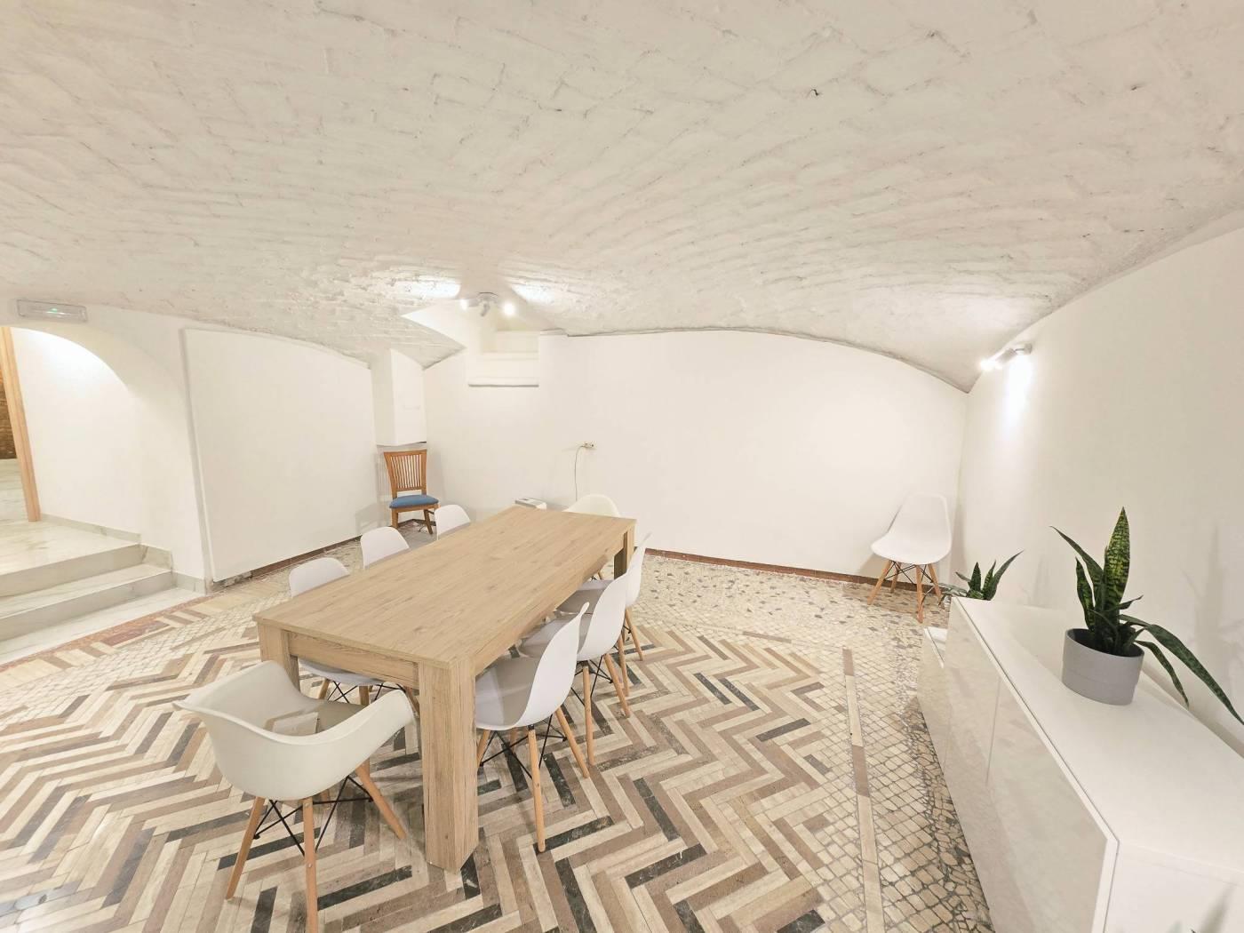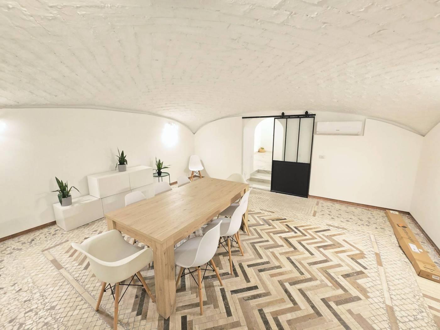• Ampio living con zona TV e sala da pranzo con soffitto a botte in mattoncini