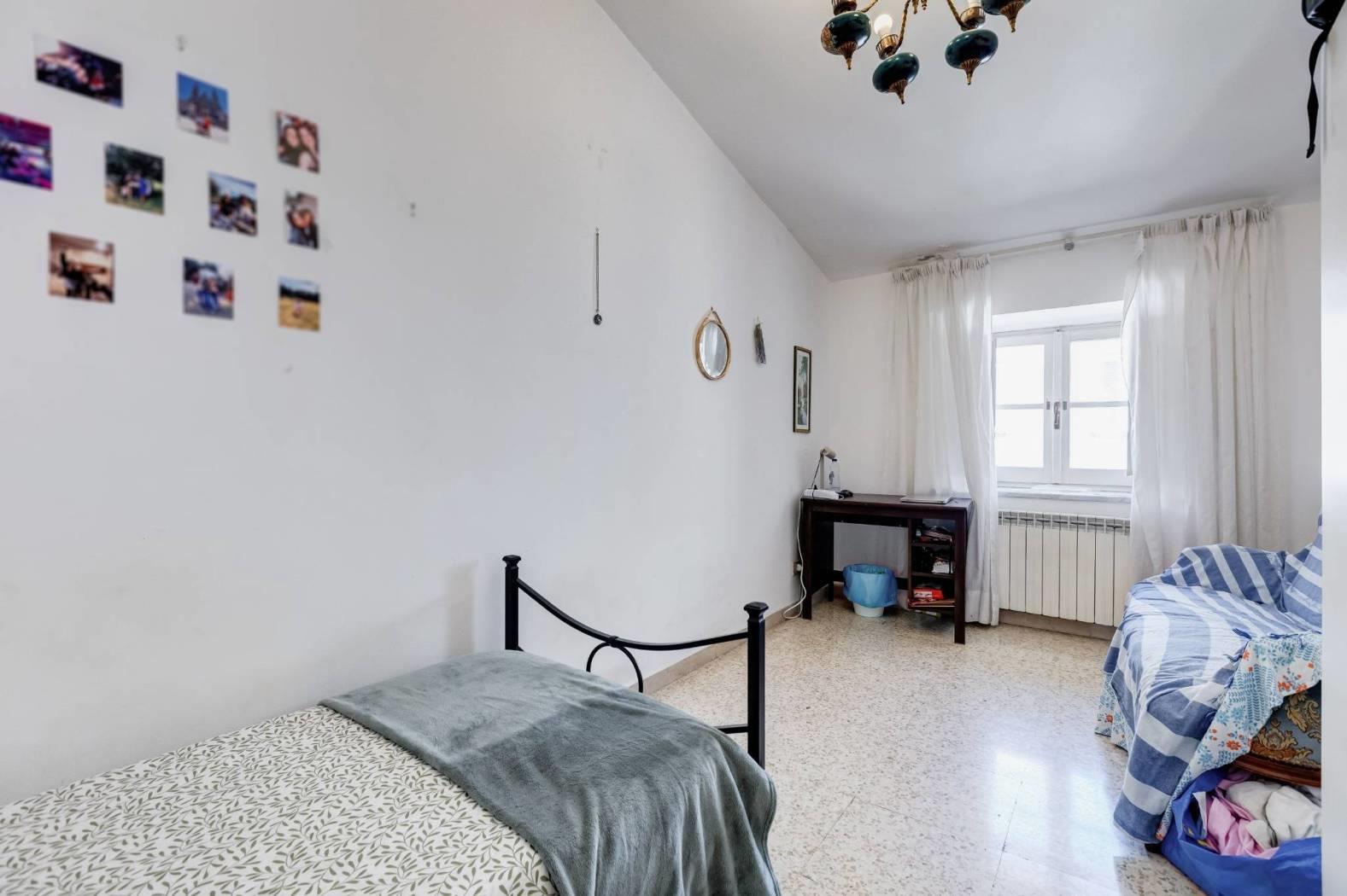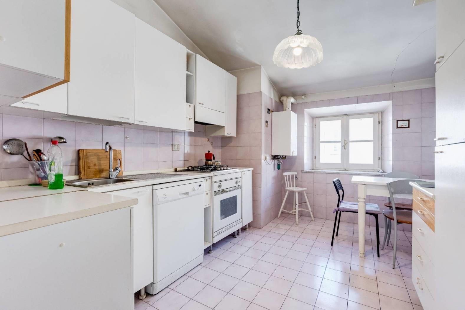 L'immobile, da rivedere internamente, è composto da due camere matrimoniali, una terza stanza di circa 12 mq, cucina abitabile, bagno finestrato e ripostiglio. La doppia esposizione - interna e su strada - assicura una buona luminosità e uno scorcio sul verde di Piazza Fanti.