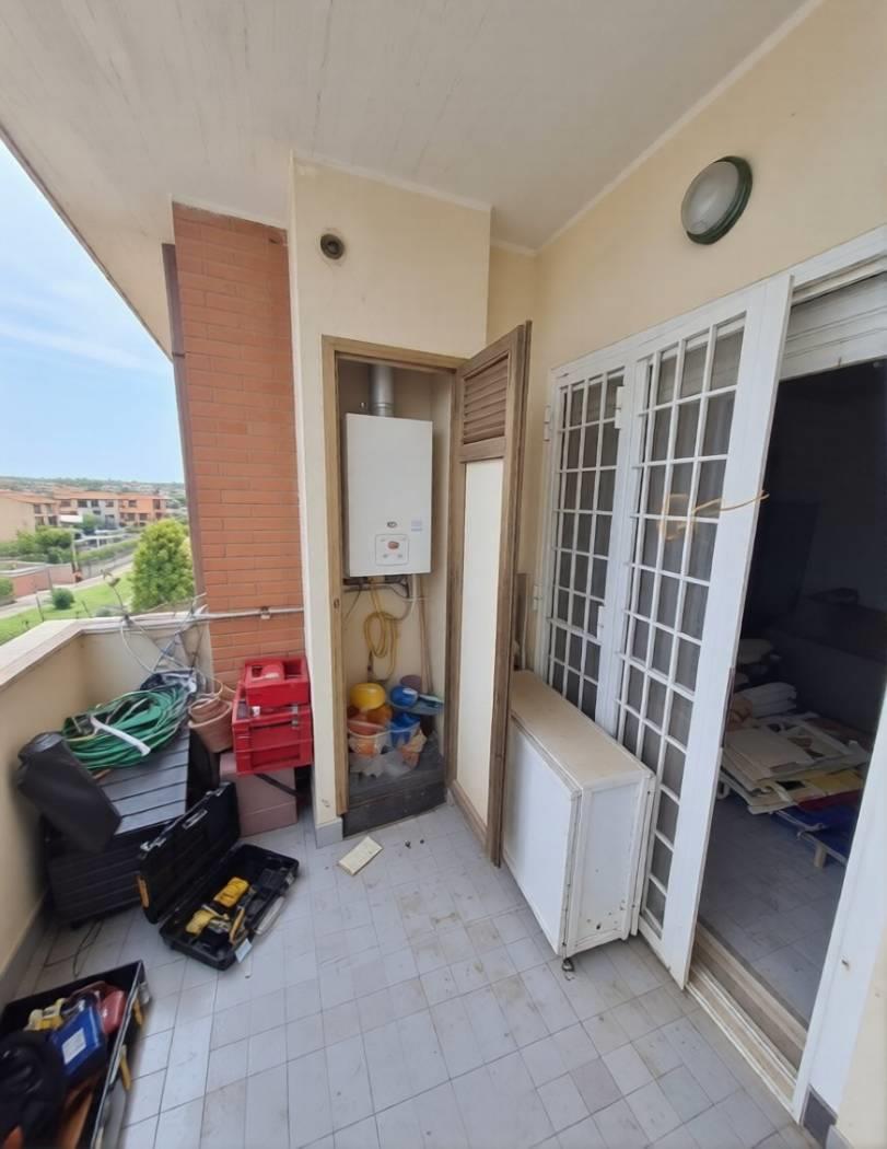 Marina di Ardea via Sicilia, 6. Appartamento al piano secondo composto da 4 vani catastali e due balconi. Esiste un parcheggio riservato avente superficie complessiva di 495 mq. E’ compreso il diritto al parcheggio di due autovetture insistente sull'area condominiale adibita a parcheggio, nonché l’uso, quale pertinenza, della porzione di lastrico solare.
