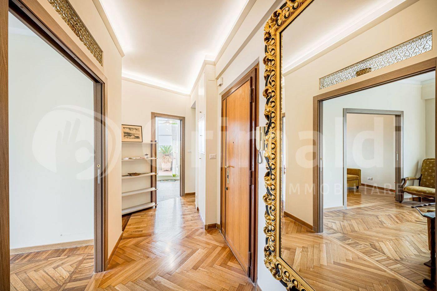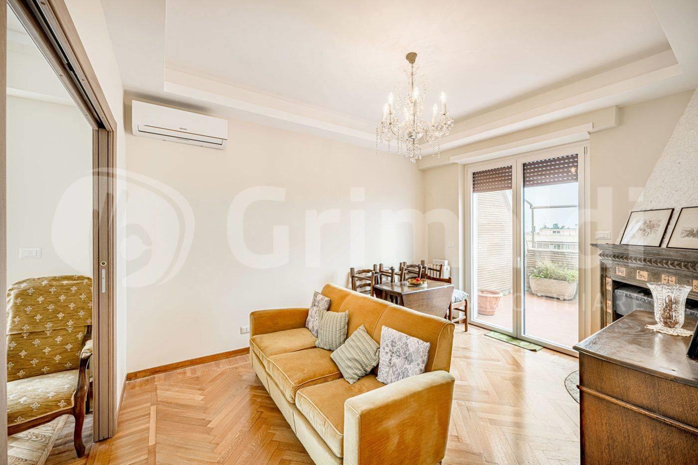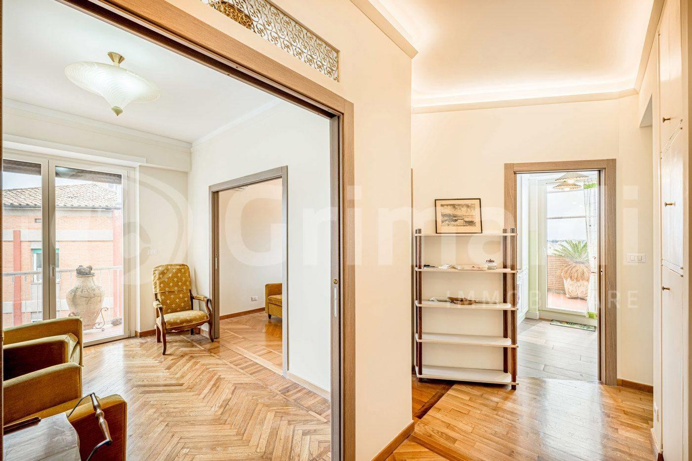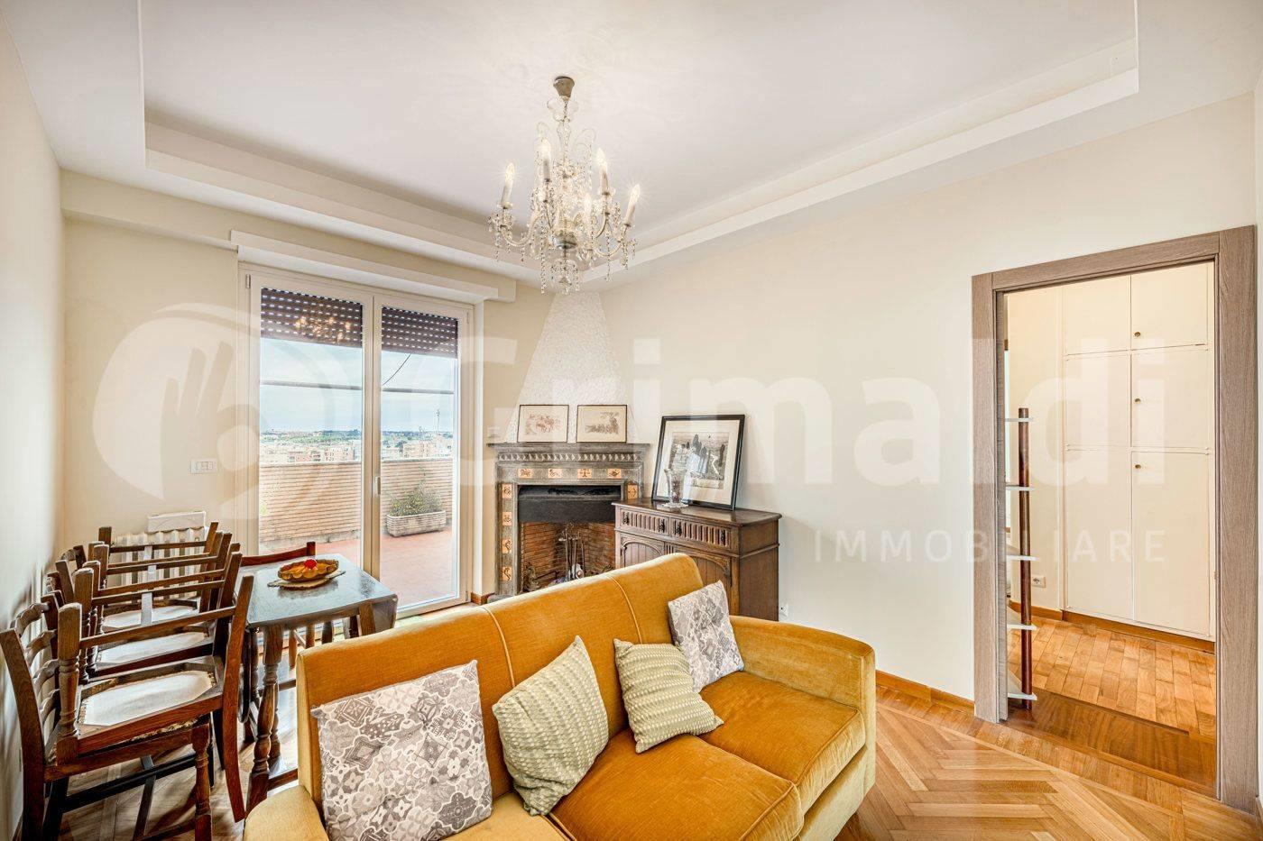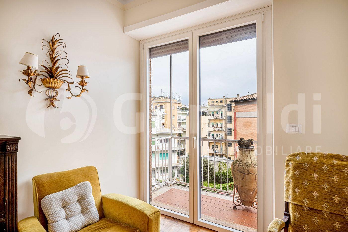 Al sesto piano di un signorile stabile situato in questa via riservata, l'agenzia immobiliare girmaldi roma prati ha il piacere di raccontarvi la vendita di un appartamento di 99 mq commerciali, i cui tratti distintivi sono l'estrema luminosità e la veduta. L'immobile gode di una doppia esposizione angolare aperta che, in sinergia con l'altezza del piano, garantisce un'eccellente irradiazione solare in tutti gli ambienti e un costante riscontro d'aria. La zona giorno è impreziosita da pertinenze esterne cioè un balcone e una terrazza abitabile di circa 20 mq. Quest'ultima, superando la linea dei tetti circostanti, offre un affaccio panoramico profondo e privo di ostacoli visivi sullo skyline della città.
