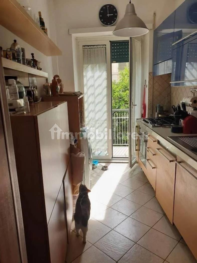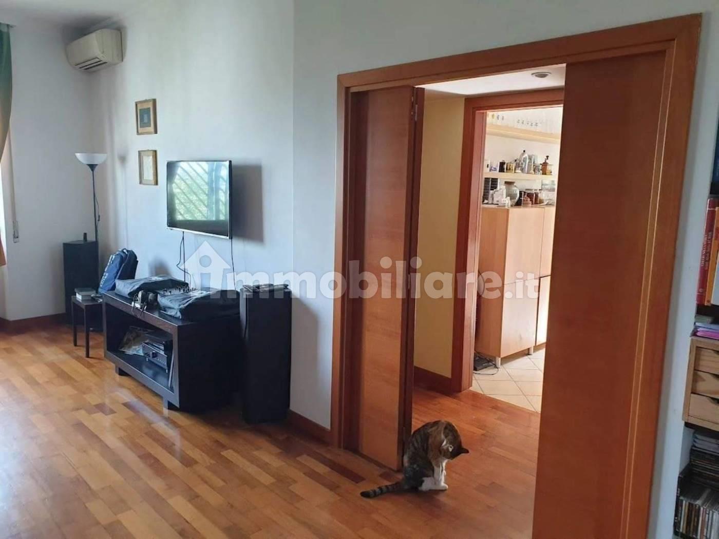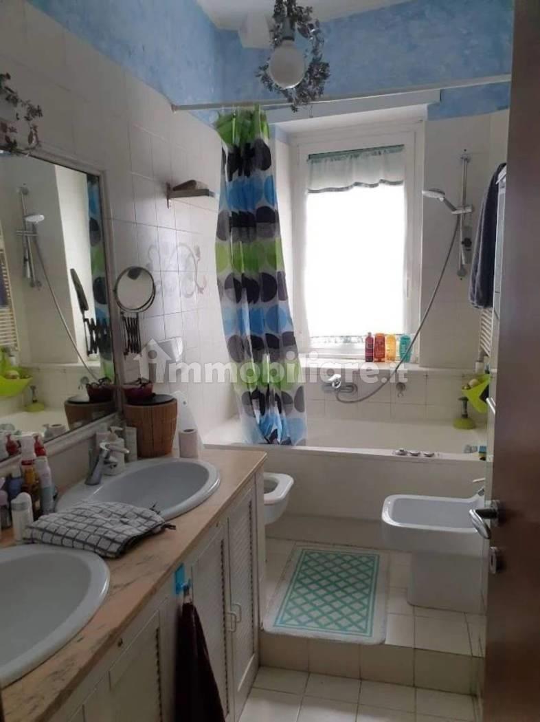 Caratteristiche e dotazioni Tutta l’unità immobiliare è pavimentata in parquet, ad eccezione dei vani bagno e cucina. Le pareti sono interamente intonacate e tinteggiate. Il bagno è finestrato e piastrellato, con vasca, bidet, w.c. e mobile con due lavabi. La cucina è pavimentata in monocottura e dotata di stigliature disposte lungo una parete. Il riscaldamento è autonomo e la caldaia a gas si trova nel balcone esterno alla cucina.