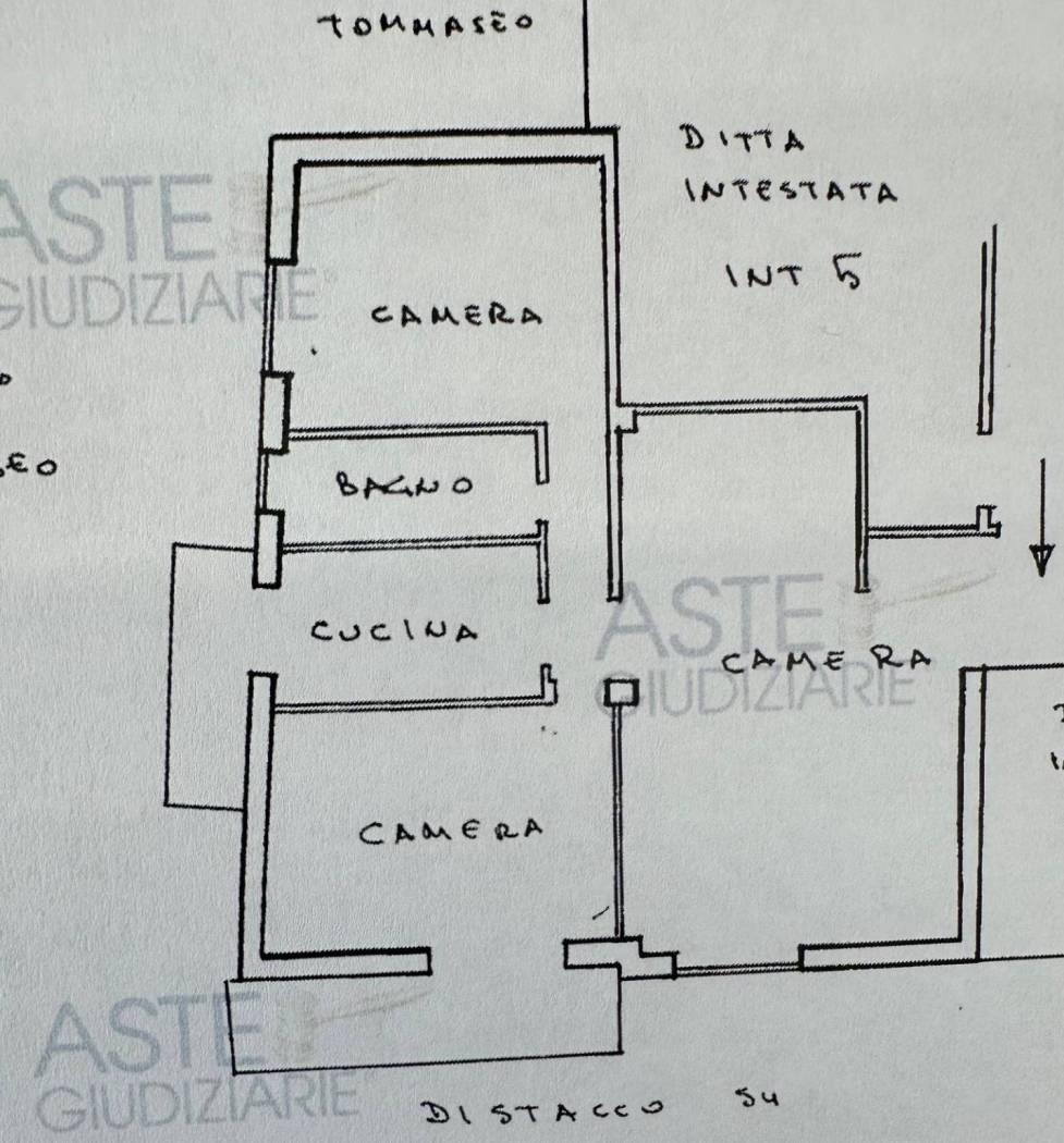 Superficie e distribuzione internaL'appartamento ha una superficie di 90 mq ed è composto da ingresso, soggiorno, corridoio, due camere da letto, bagno e cucina. L'altezza interna è di 3 metri. L'immobile si trova al piano primo. Lo stato di conservazione è discreto.