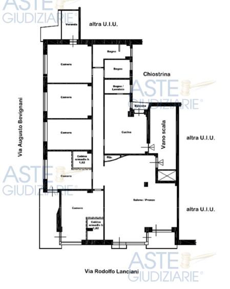 Rivolta Immobiliare propone in asta appartamento al piano 2, dotato di doppio ingresso e composto da ampio salone, 5 camere da letto, 2 bagni, cucina, locale servizio (attualmente adibito a bagno/lavatoio), ripostiglio, per complessivi mq 251, due balconi di cui uno in parte verandato, cantina pertinenziale. E' necessario presentare scia in sanatoria per regolarizzare difformità.