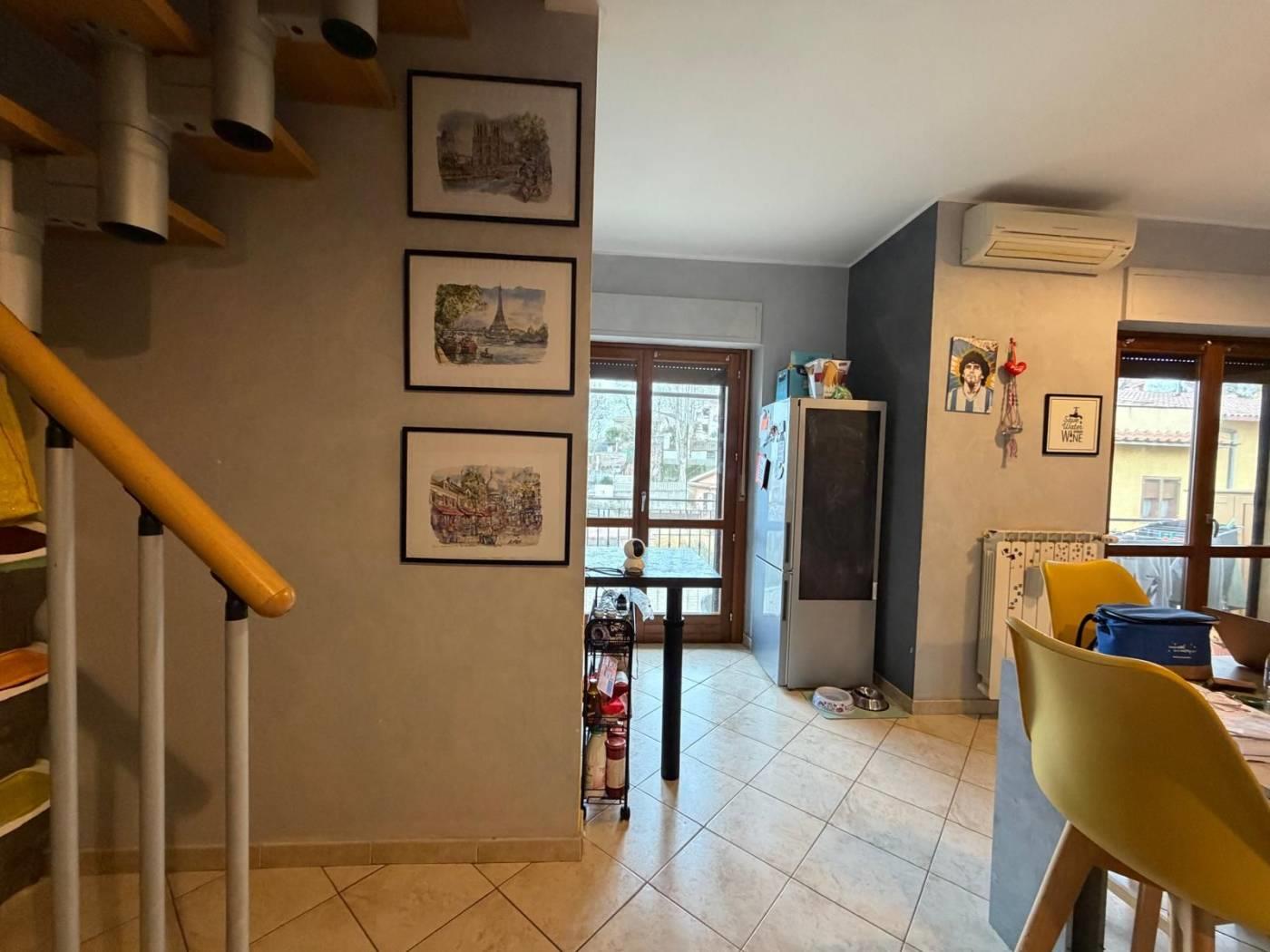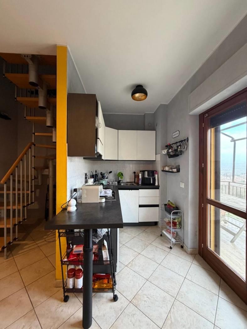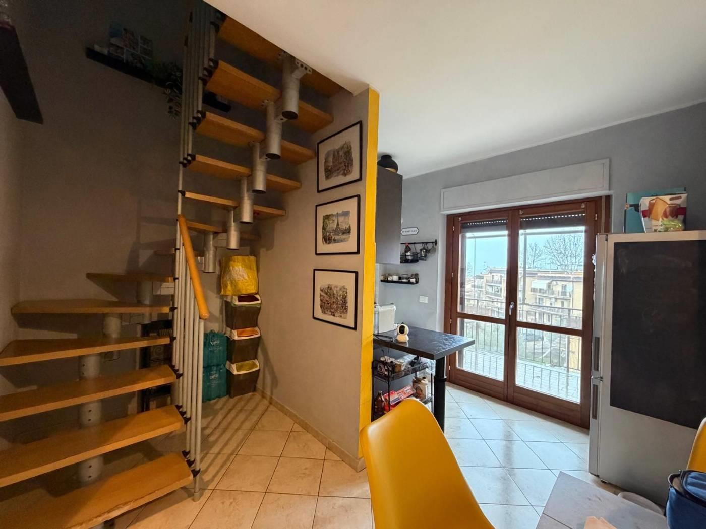 Monterotondo San Luigi, a 800 mt dal centro del paese e a 3 Km dalla metropolitana di superfici di Monterotondo, disponiamo di un appartamento al piano ATTICO, disposto su due livelli e ben rifinito. Per come sono distribuiti gli spazi, l'immobile offre diverse possibilità nel ridisegnare gli spazi interni. Entrando, al primo livello, troviamo il soggiorno con angolo cucina (l'angolo cucina è talmente ampio e disponendo di una finestra propria offre la possibilità di creare una cucina separata dal salone), ampio bagno con doccia (rimodulando il bagno si può creare uno studio o creare un salone più ampio) e due terrazzi con vista panoramica. Al secondo livello, unito da una scala in legno, troviamo una camera con bagno grande con vasca e due terrazzi, uno dei quali si può adibire a cabina armadio. Tende da sole e il box auto. La casa si trova a pochi metri dalla fermata della navetta che porta direttamente alla stazione ferroviaria di Monterotondo Scalo. Adatta anche USO INVESTIMENTO.